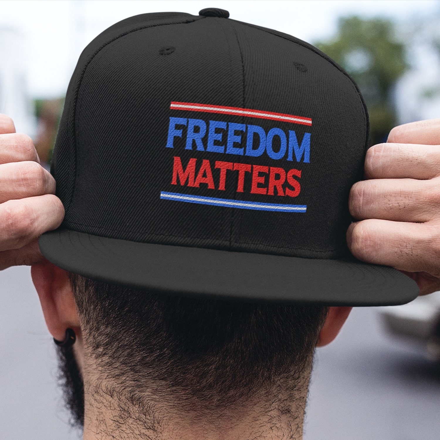 Let’s Shop Freedom Matters Twill Cap – High-Profile Snapback Hat – Trucker Hat!