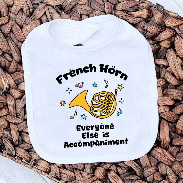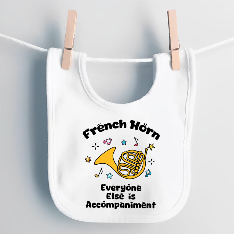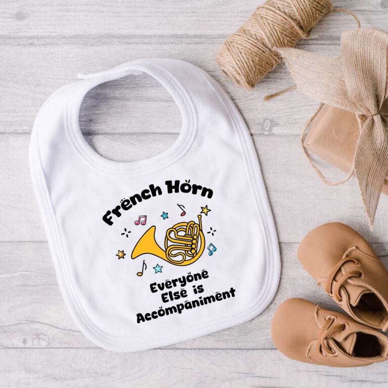 Let’s Shop French Horn Everyone Else Is Accompaniment Baby Bib – Funny Baby Bib for Infant & Toddler!