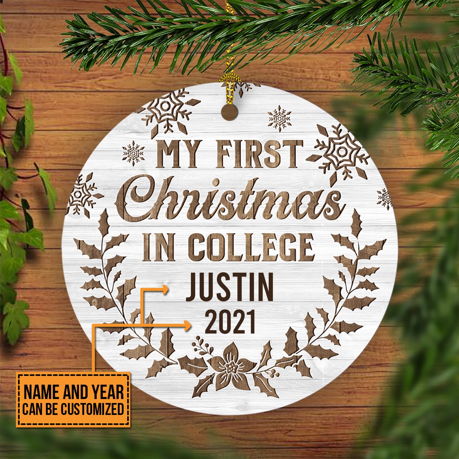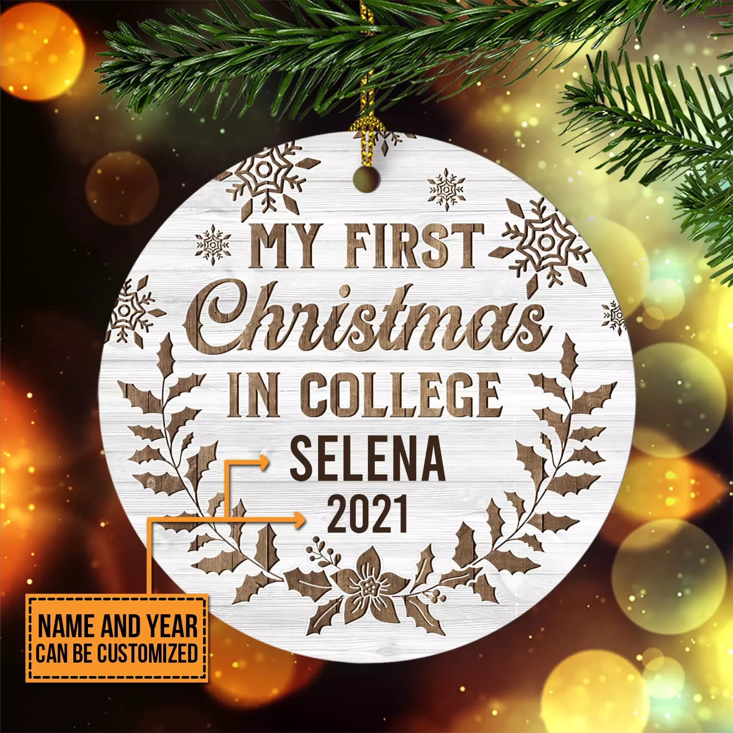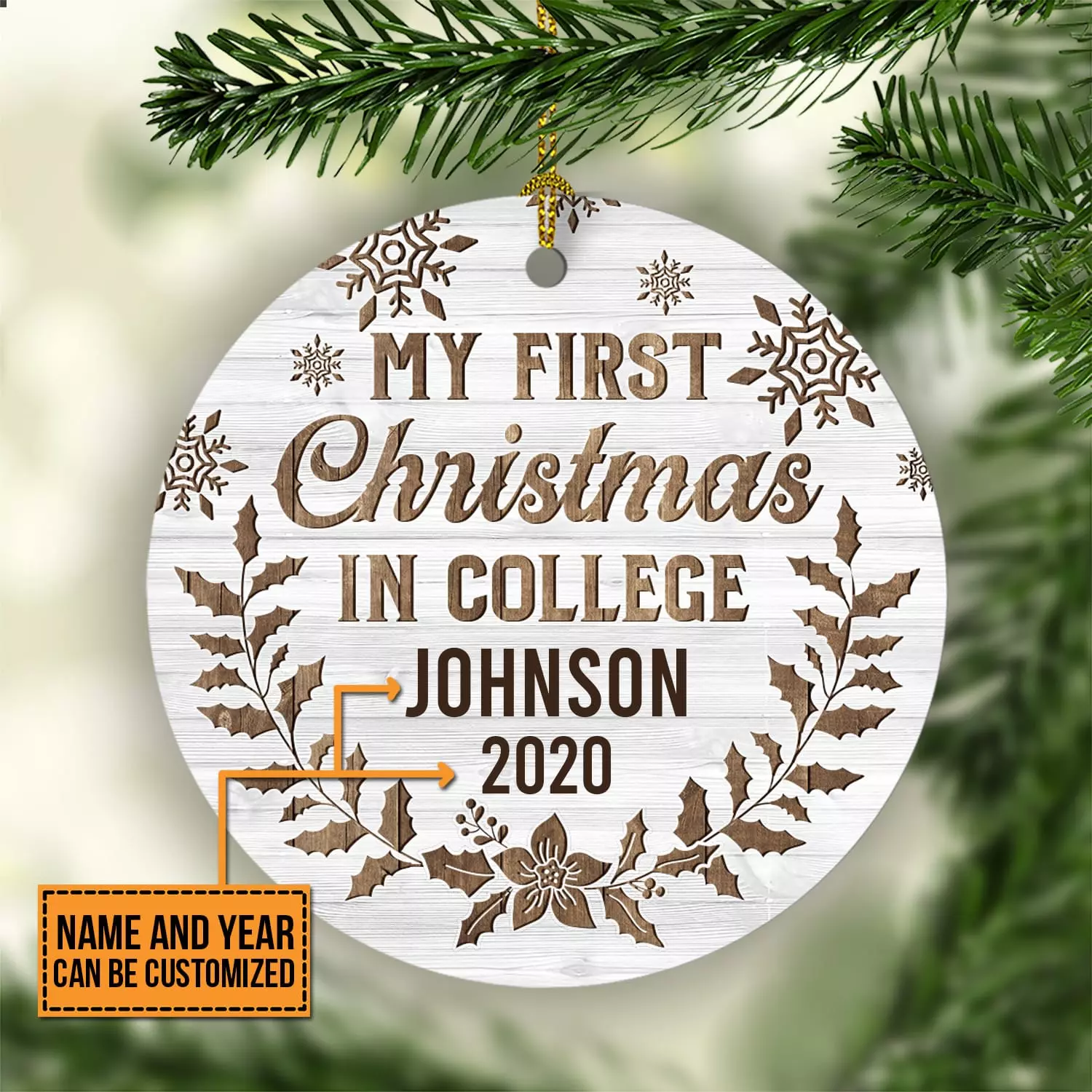 Let’s Shop Personalized Name and Date First Christmas in College Decorative Christmas Ornament Keepsake – Flat Circle Ornament!