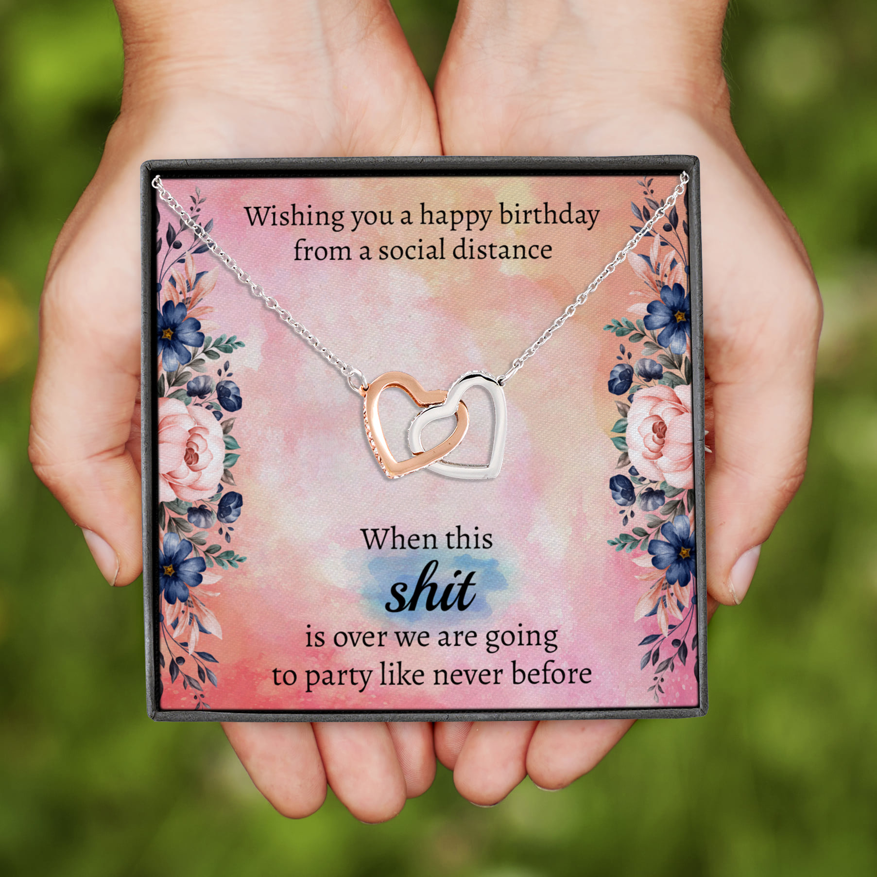 Let’s Shop Wishing You Happy Birthday From A Social Distanced Interlocking Hearts Pendant Necklace!