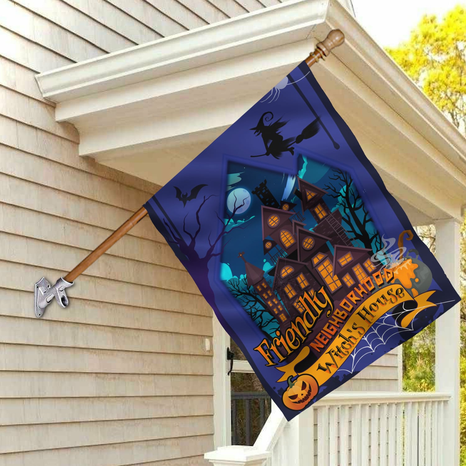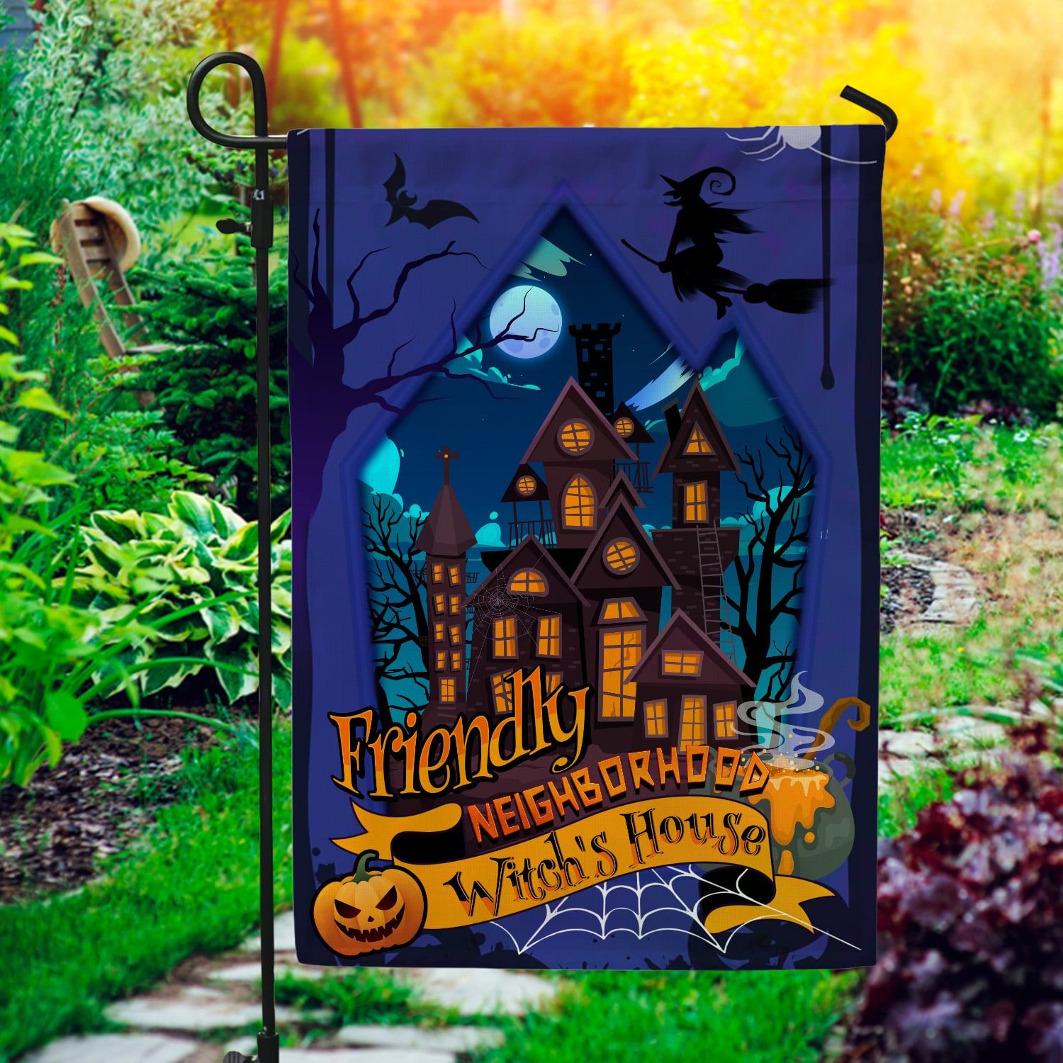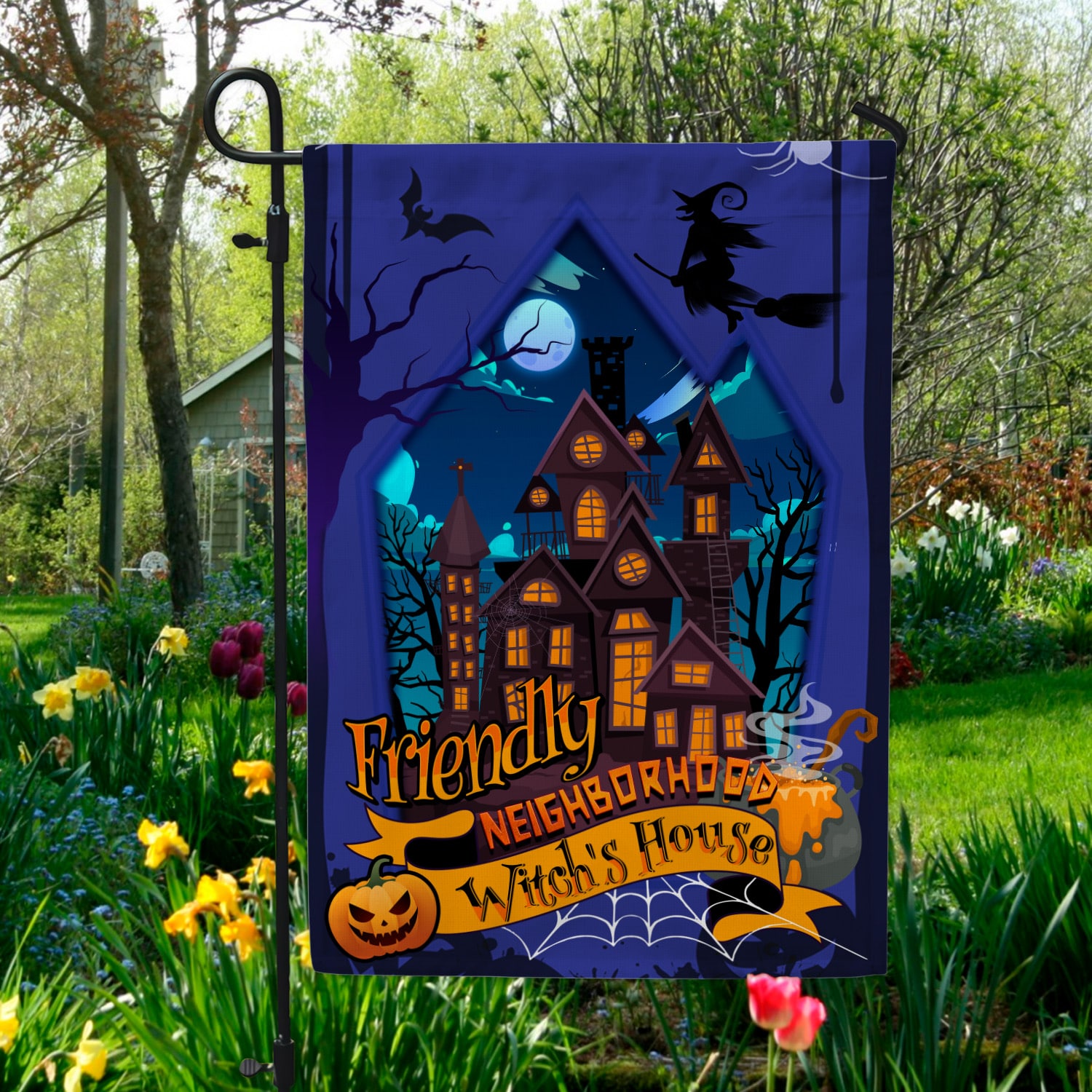 Let’s Shop Friendly Neighborhood Witch’s House Happy Halloween Garden Flag – House Flag – Wall Flag!