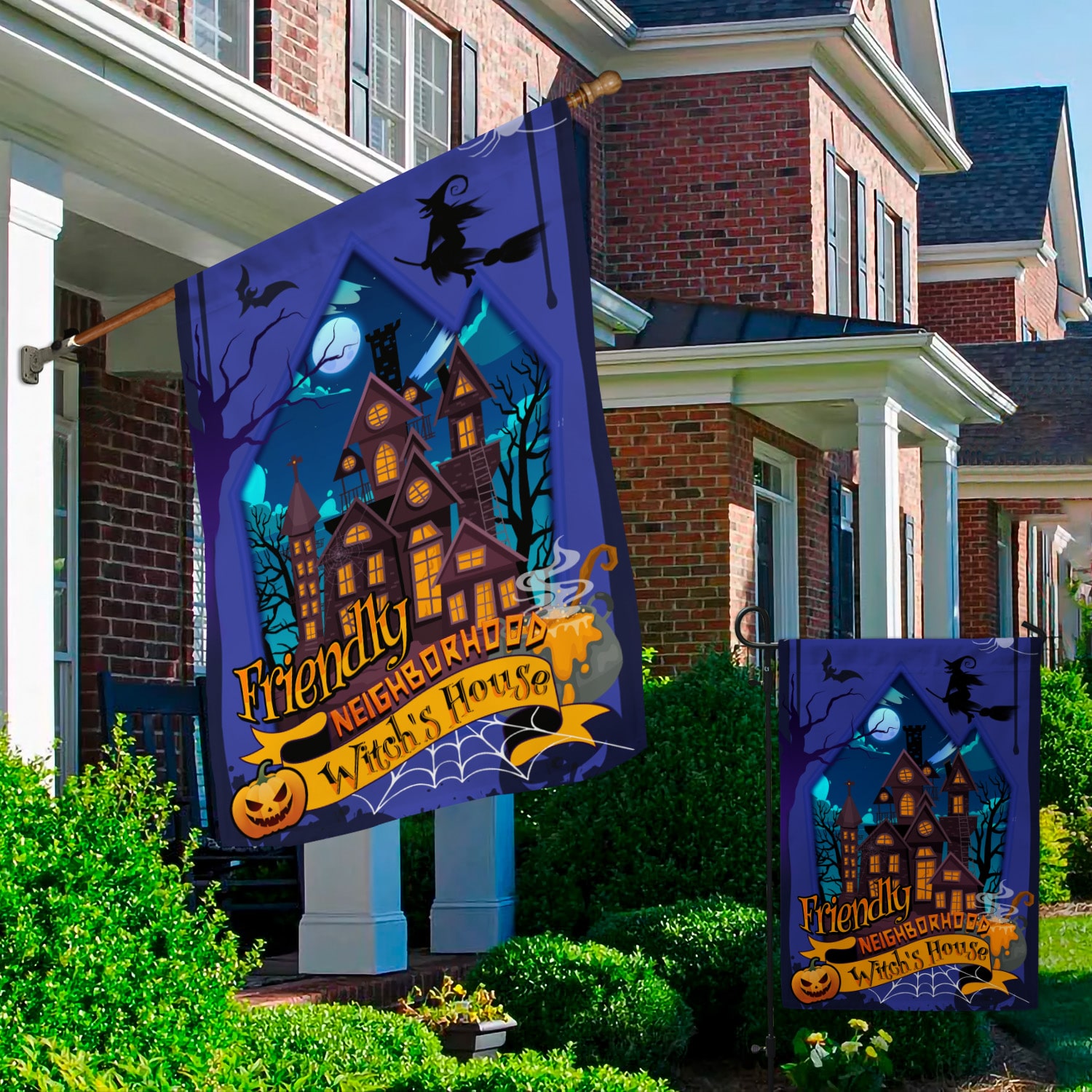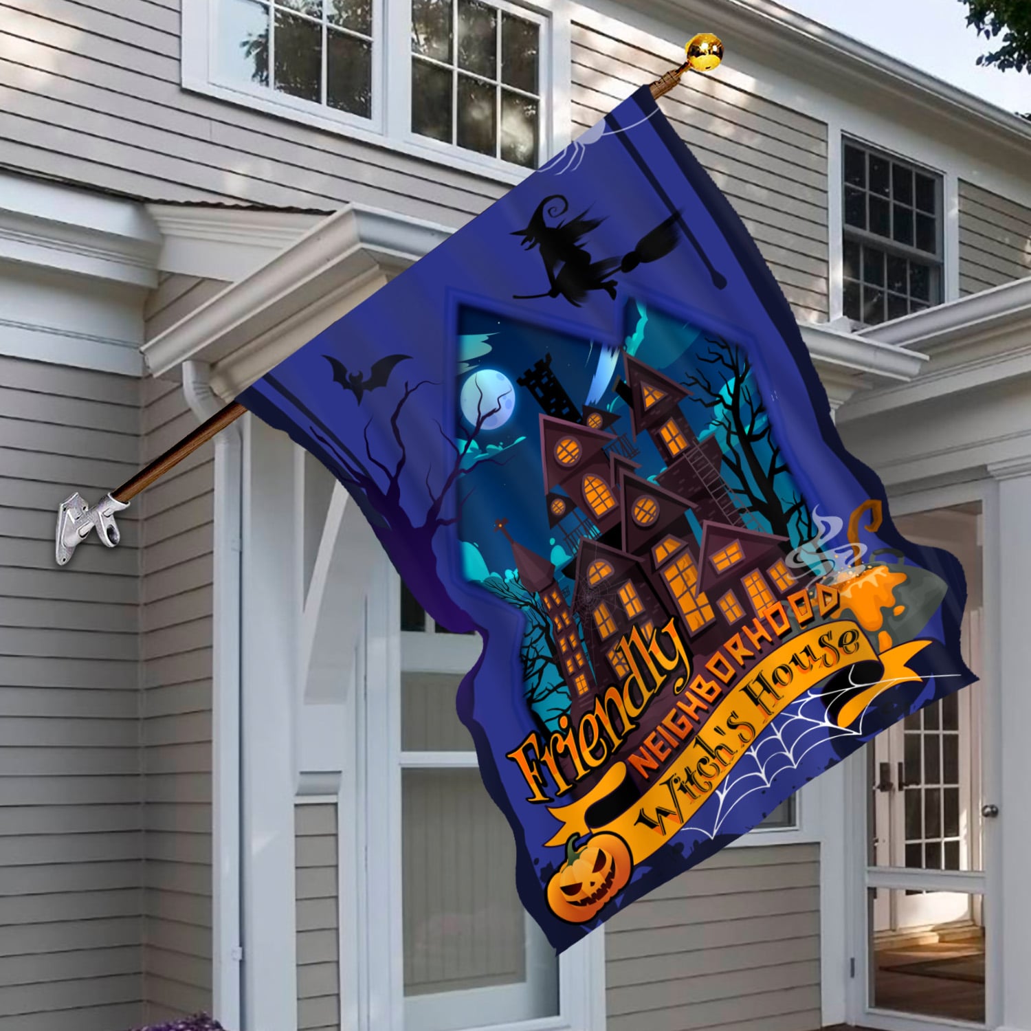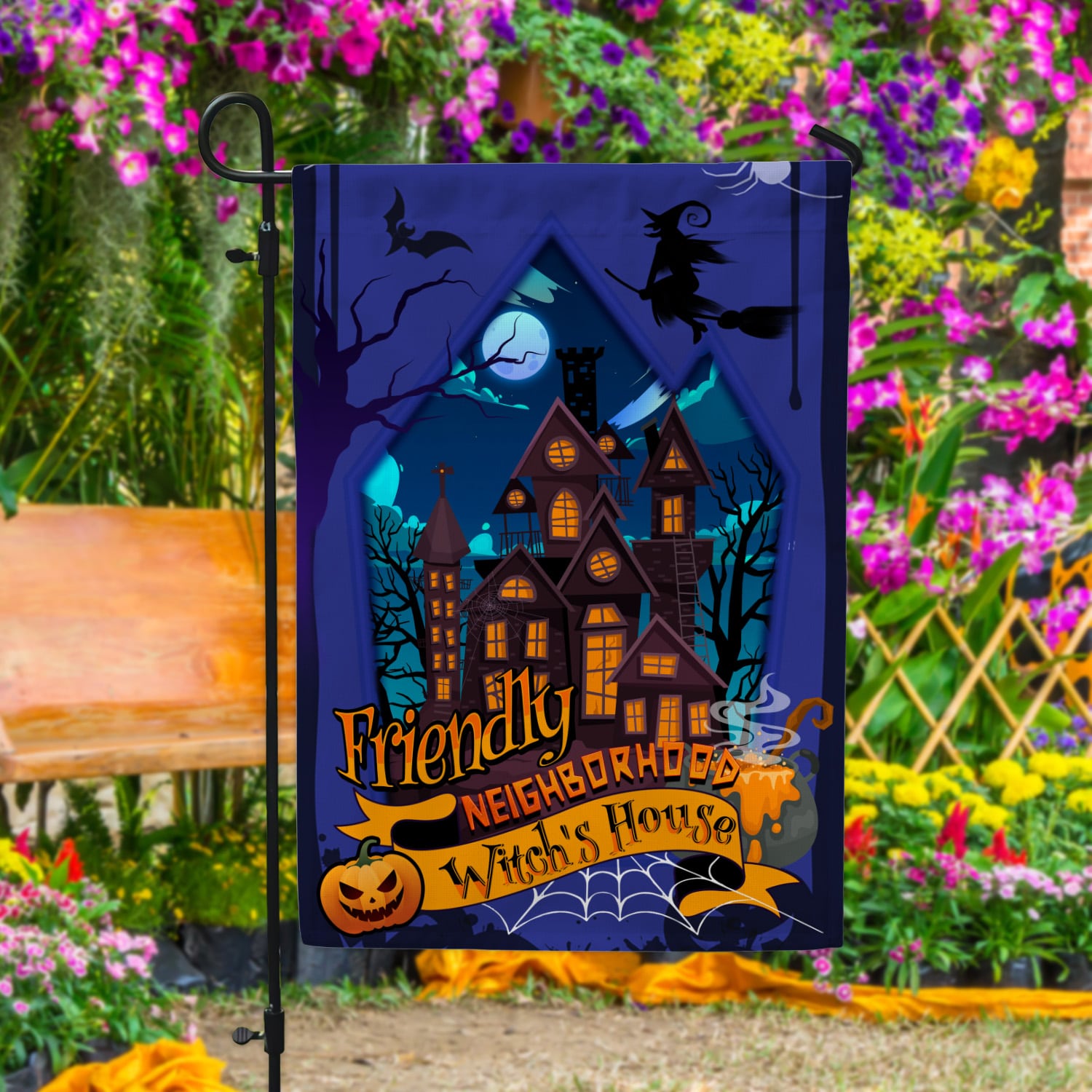 Let’s Shop Friendly Neighborhood Witch’s House Happy Halloween Garden Flag – House Flag – Wall Flag!