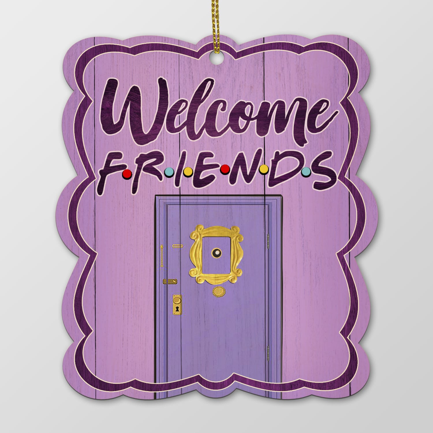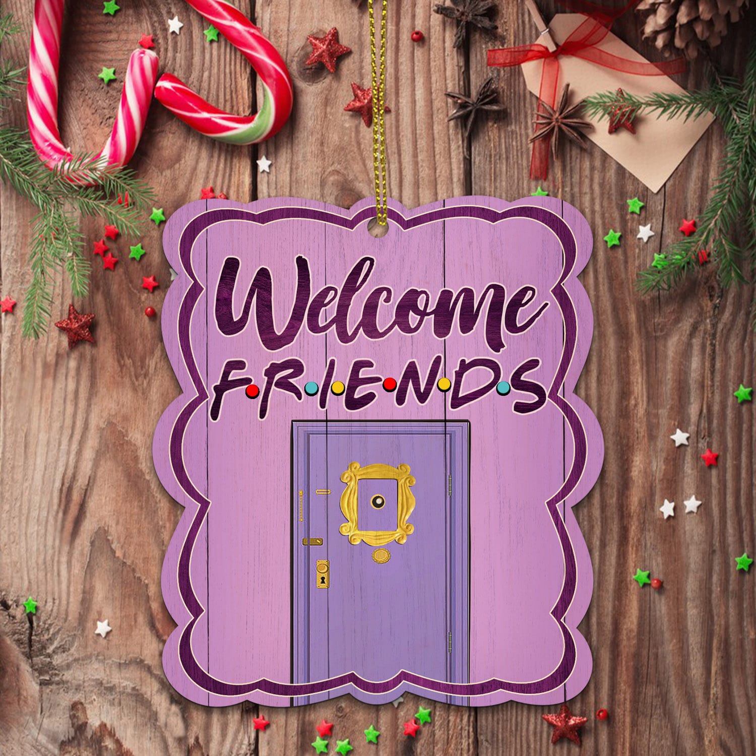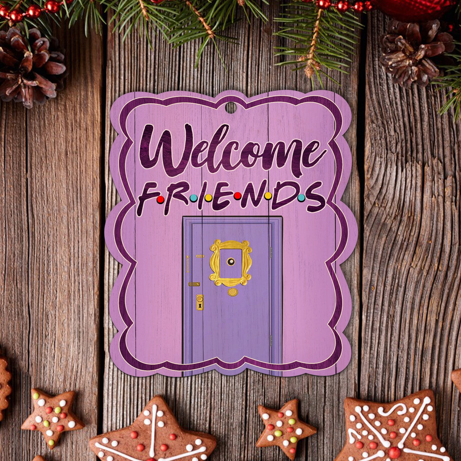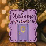 Let’s Shop Welcome Friends Purple Peephole Frame Decorative Custom Shaped Wooden Christmas Ornament Keepsake!