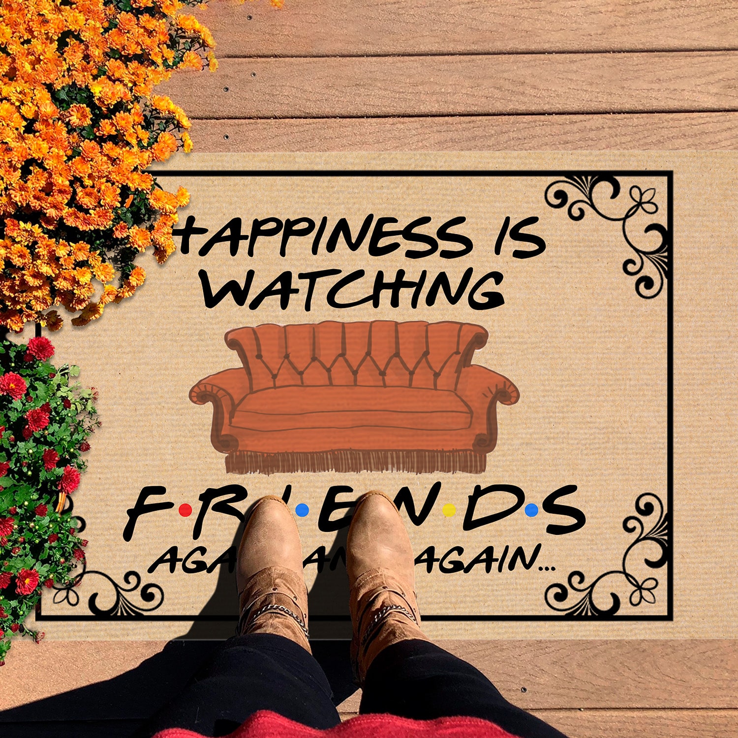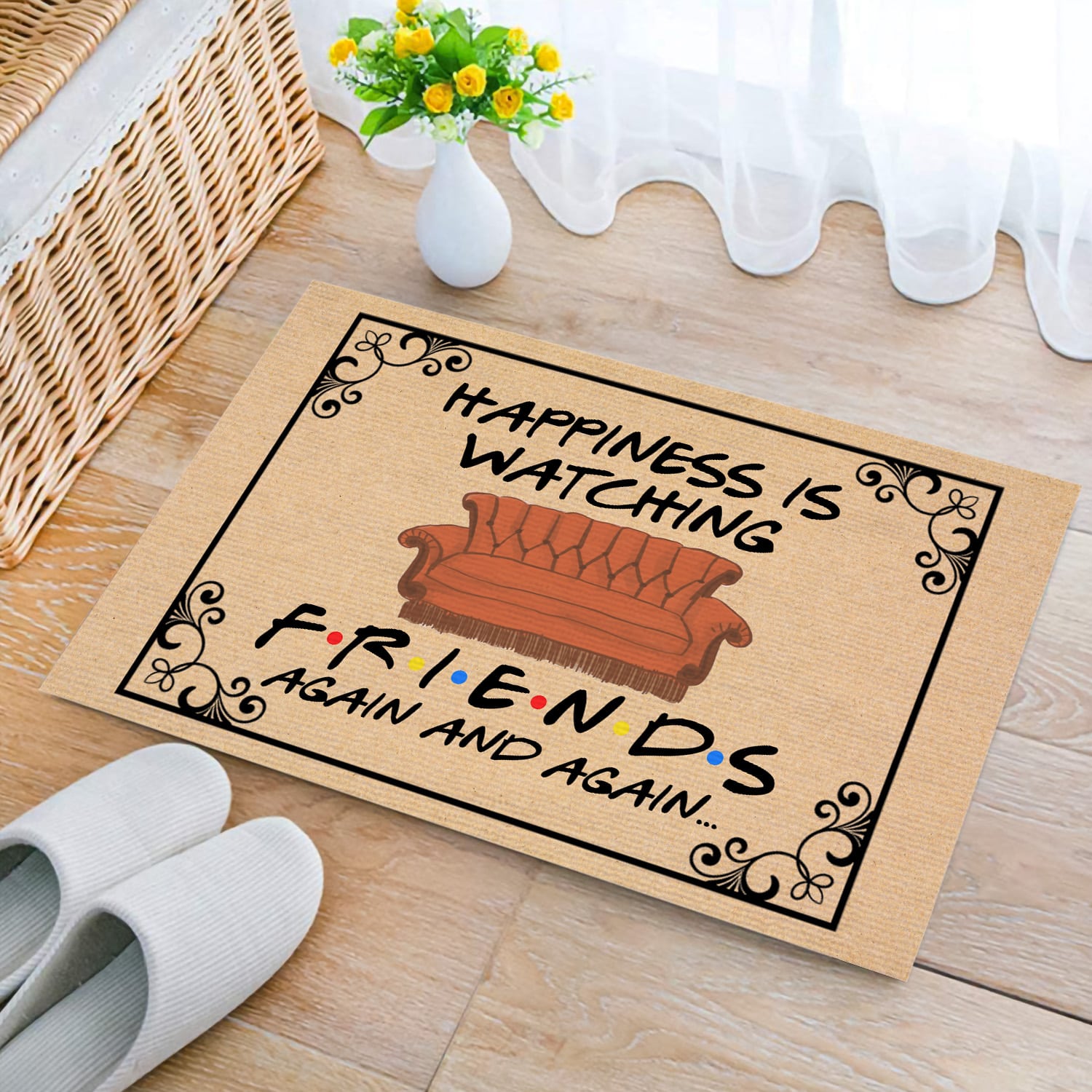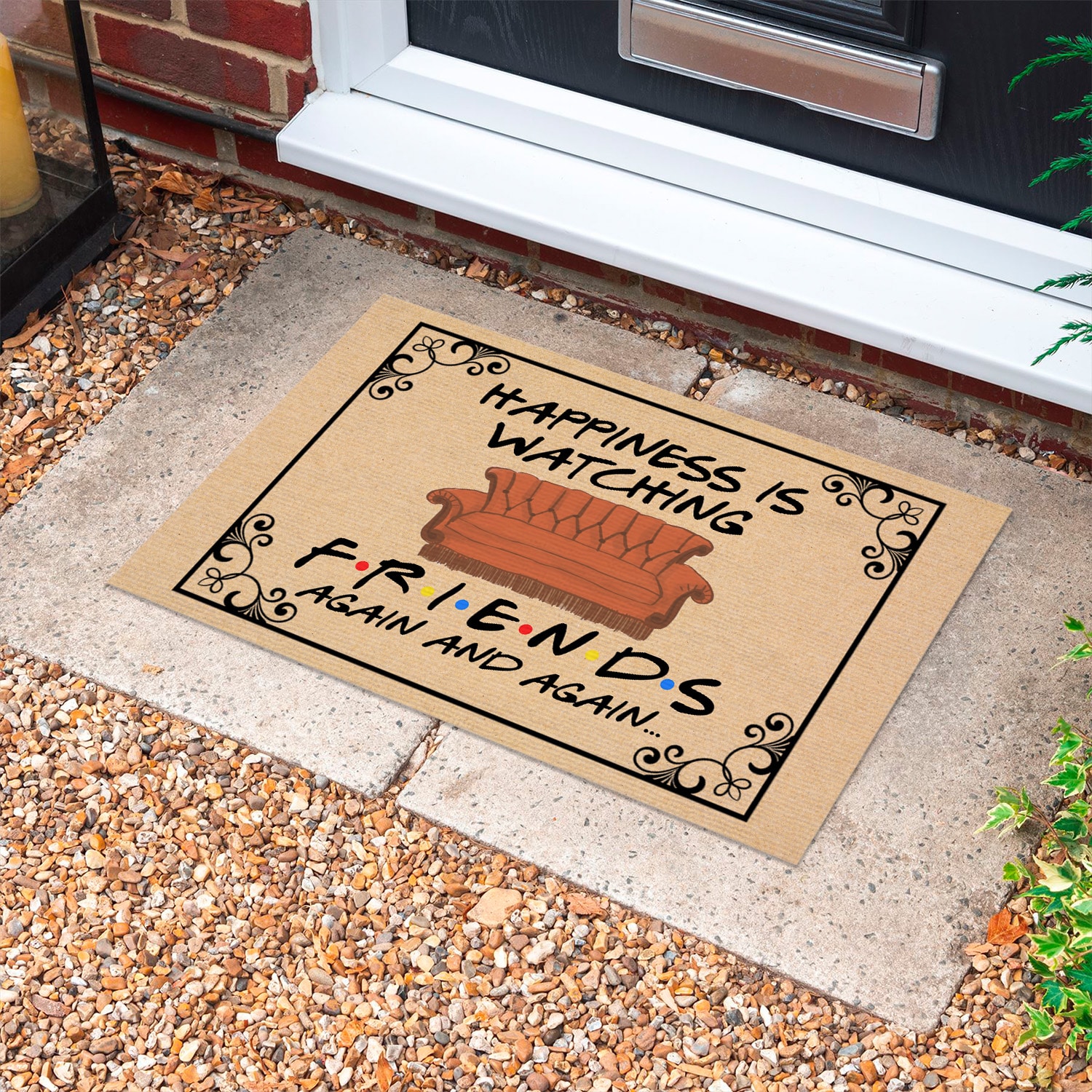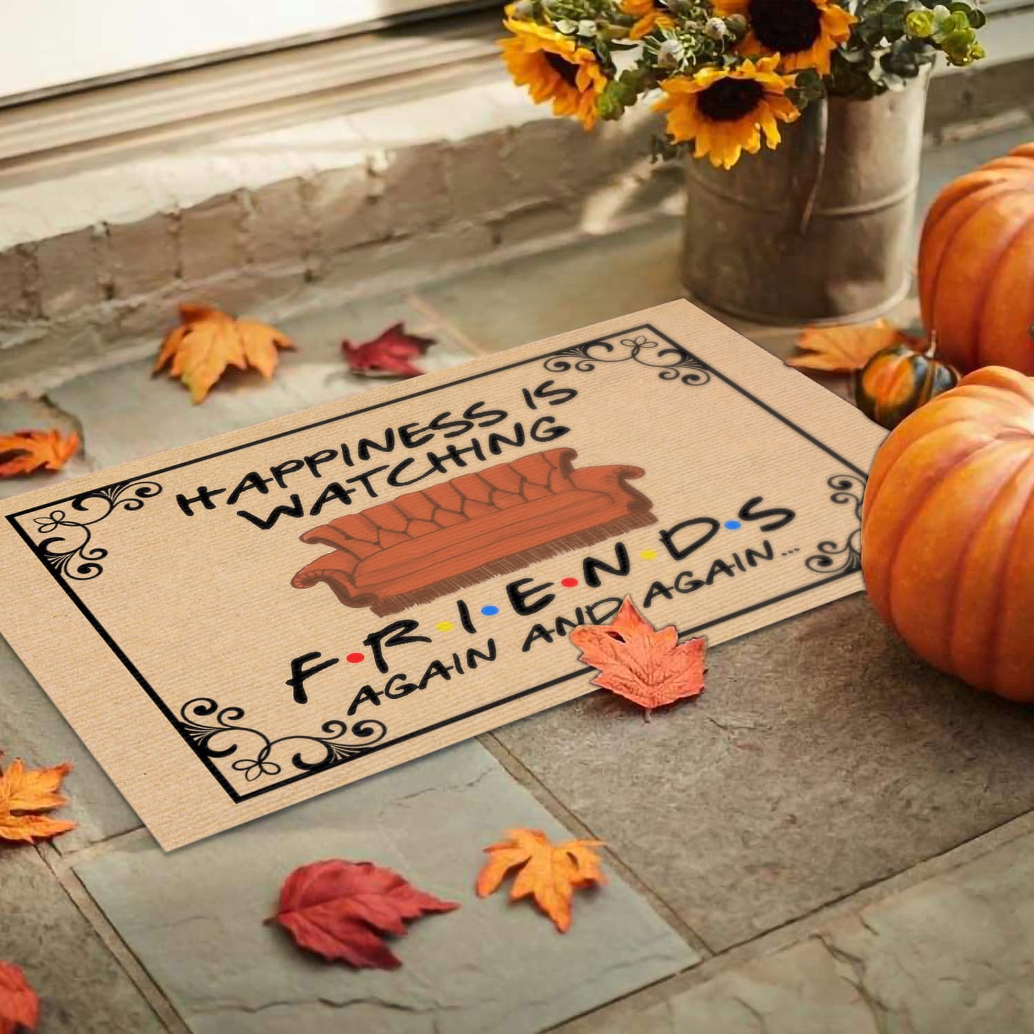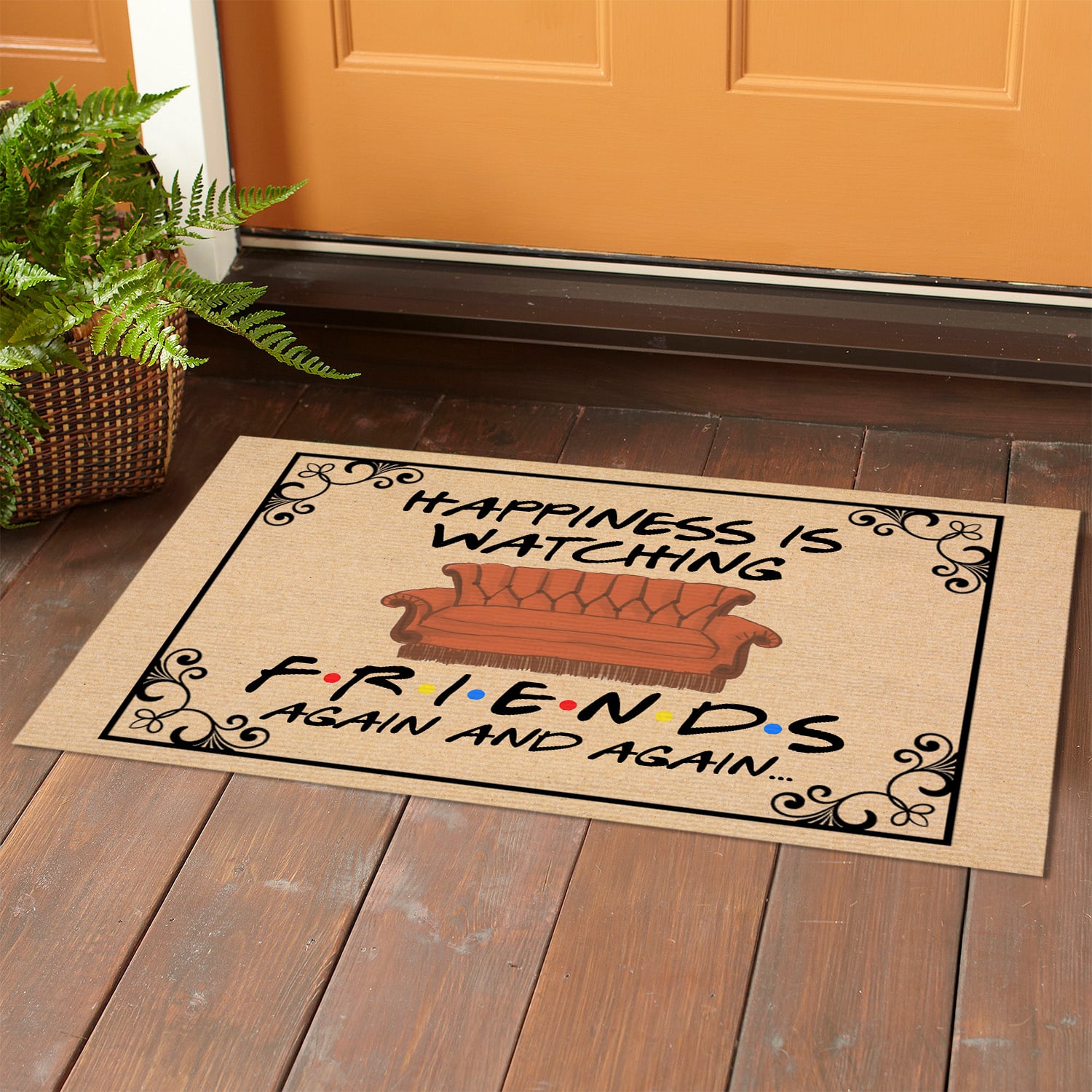 Let’s Shop Friends Fan Gift Happiness Is Watching Friends Again and Again Indoor Outdoor Doormat!