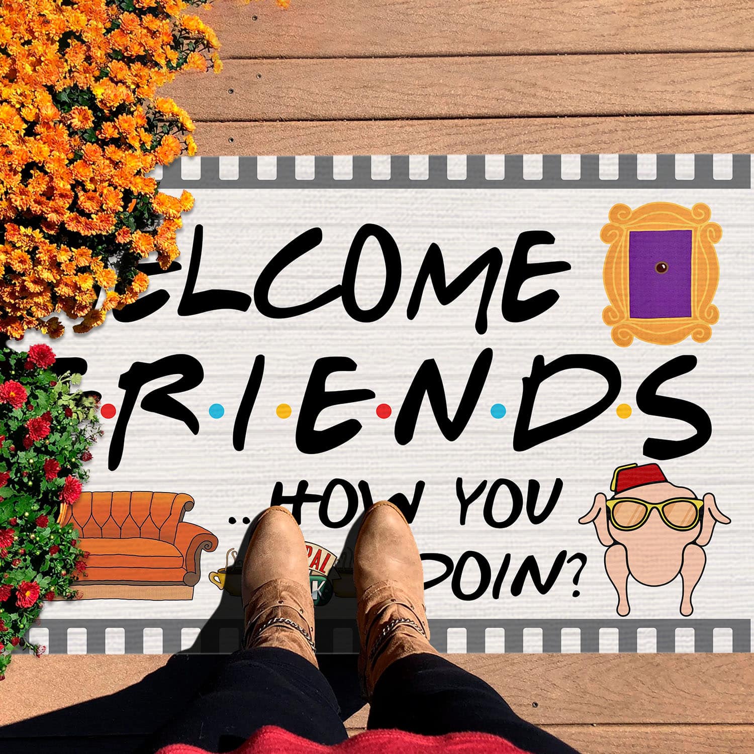 Are you spending too much time to find creative merchandise for you or suitable & special gifts for your mommy, your daddy, your son, your daughter, your children, your friends or someone you love? The struggle is over because we have various Welcome Friends How You Doin Outdoor Indoor Doormat, Funny Housewarming Gift Door Mat Home Decor Entry Rug, Welcome Friends Door Mat which will make perfect presents for your beloveds. In order to make your present stand out, we have created lots of unique and awesome customized photo gifts & personalized designs.