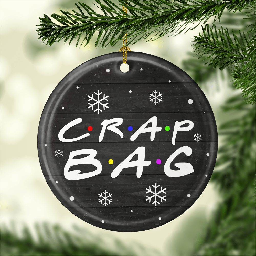 Crap Bag Christmas Ornament Keepsake – Circle Porcelain Ceramic Ornament