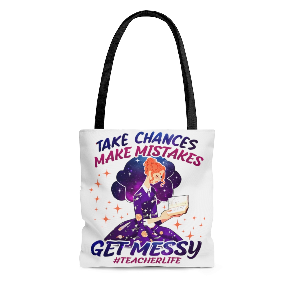 Let’s Shop Take Chances Make Mistakes Get Messy Teacher Life All Over Print Tote Bag – Reusable Grocery Shopping Bag!