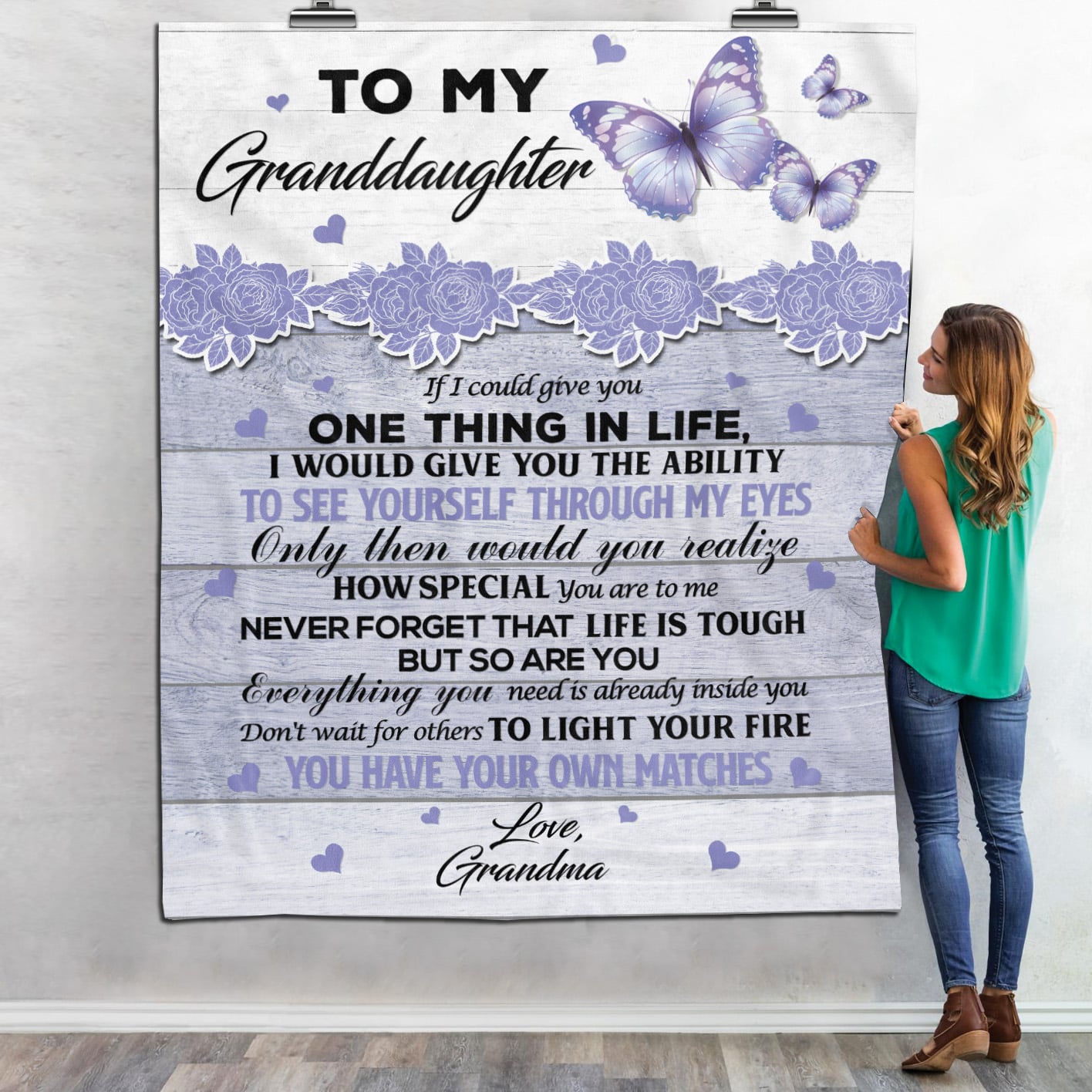 Are you spending too much time to find creative merchandise for you or suitable & special gifts for your mommy, your daddy, your son, your daughter, your children, your friends or someone you love? The struggle is over because we have various Granddaughter Butterfly Blanket, to My Granddaughter Blanket, Granddaughter Blanket from Grandma, to My Granddaughter If I Could Give You One Thing in Life Blanket, If I Could Give You the Ability to See Yourself Through My Eyes Blanket, Never Forget Life Is Tough but So Are You Blanket, Granddaughter Blankets from Nana, from Grandma to My Grandaughter Blanket, Granddaughter Butterfly Blanket from Grandma which will make perfect presents for your beloveds. In order to make your present stand out, we have created lots of unique and awesome customized photo gifts & personalized designs.