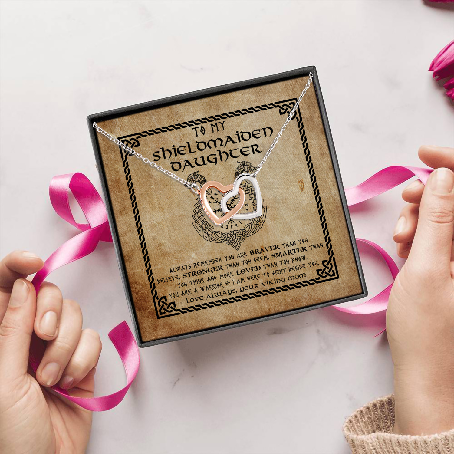 Let’s Shop From Mom To My Shieldmaiden Daughter Always Remember You Are Braver Than You Believe Interlocking Hearts Pendant Necklace!