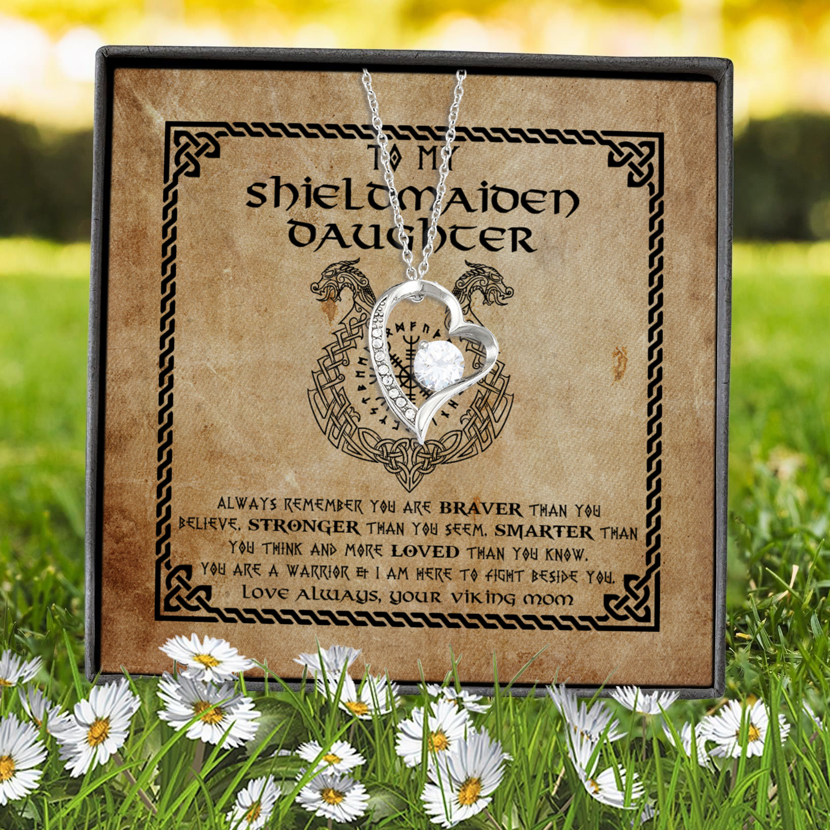Let’s Shop From Mom To My Shieldmaiden Daughter Always Remember You Are Braver Than You Believe Forever Love Heart Pendant Necklace!