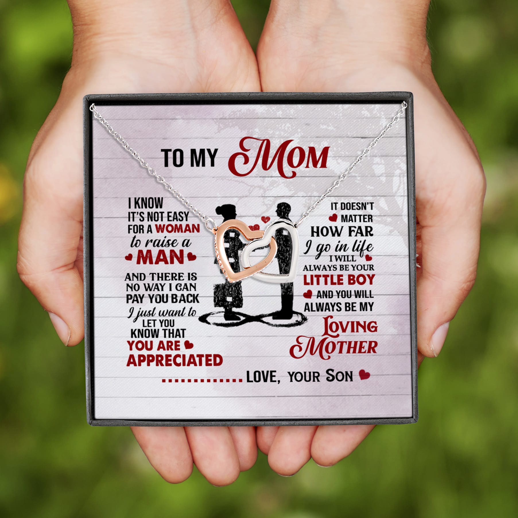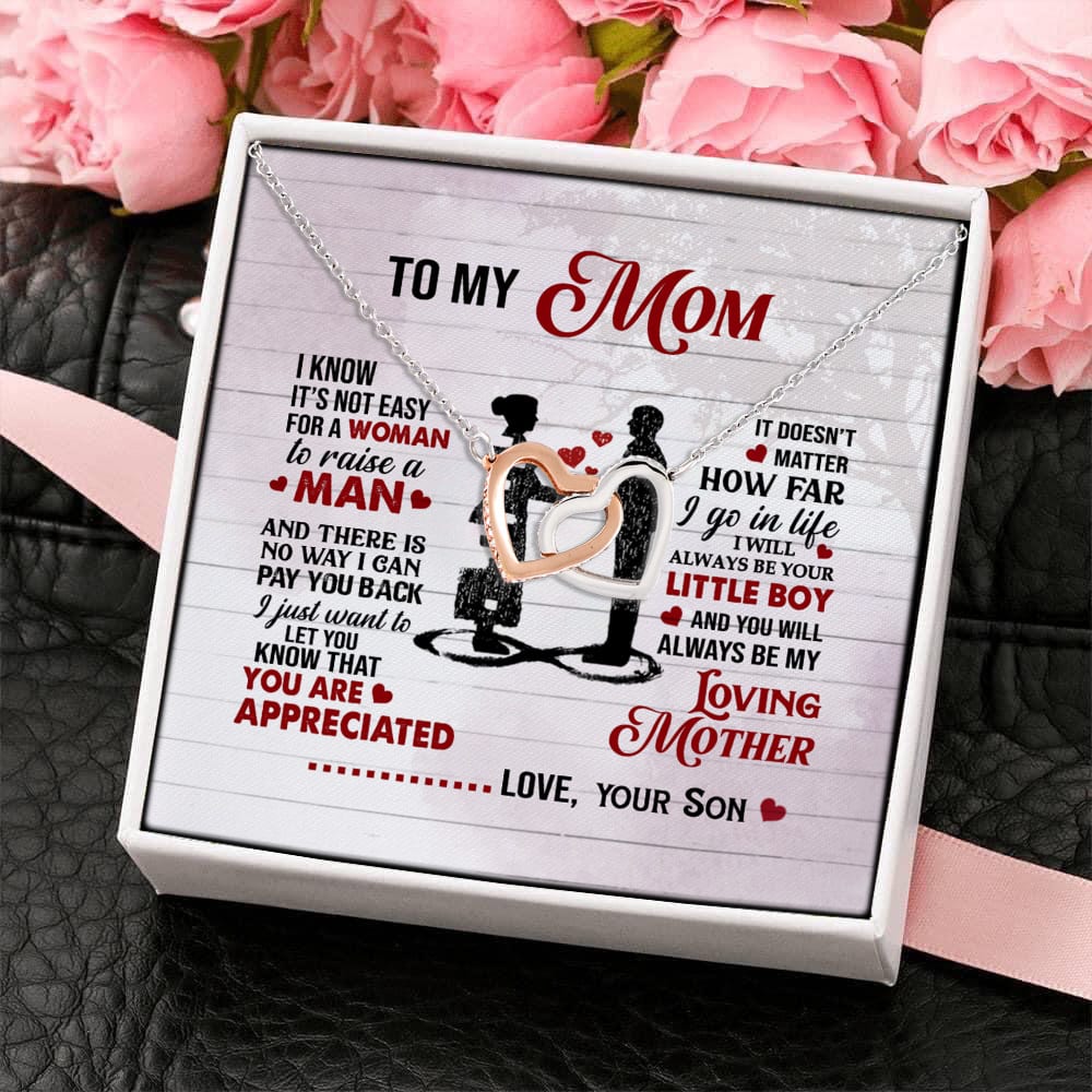 Let’s Shop From Son To My Mom I Know It’s Not Easy For A Woman To Raise A Man Interlocking Hearts Pendant Necklace!