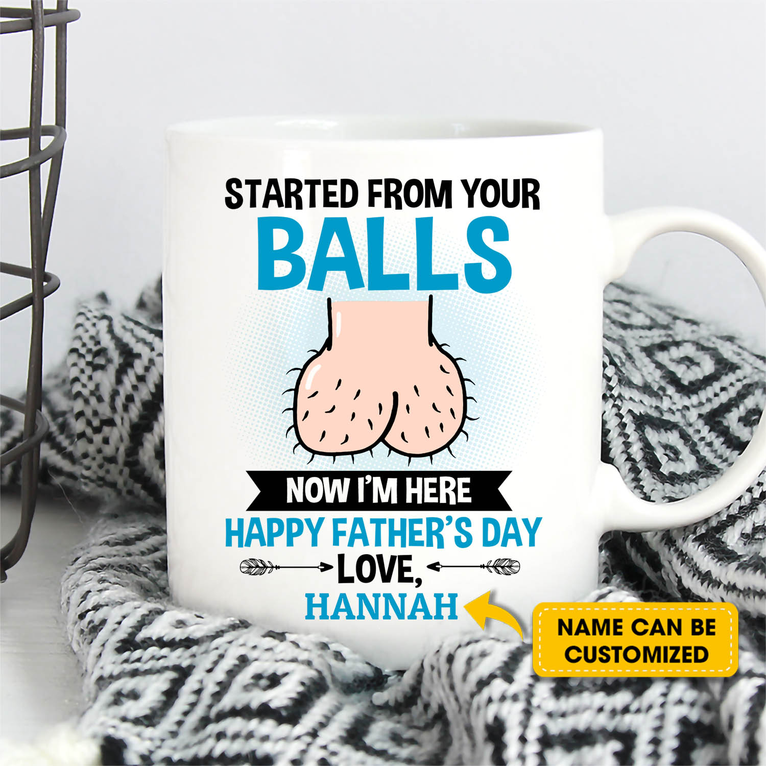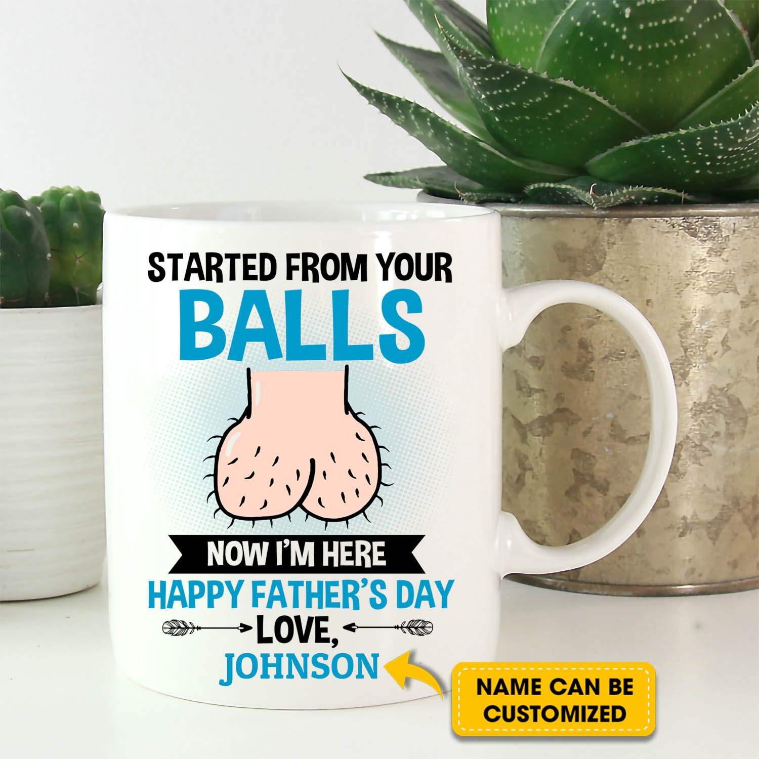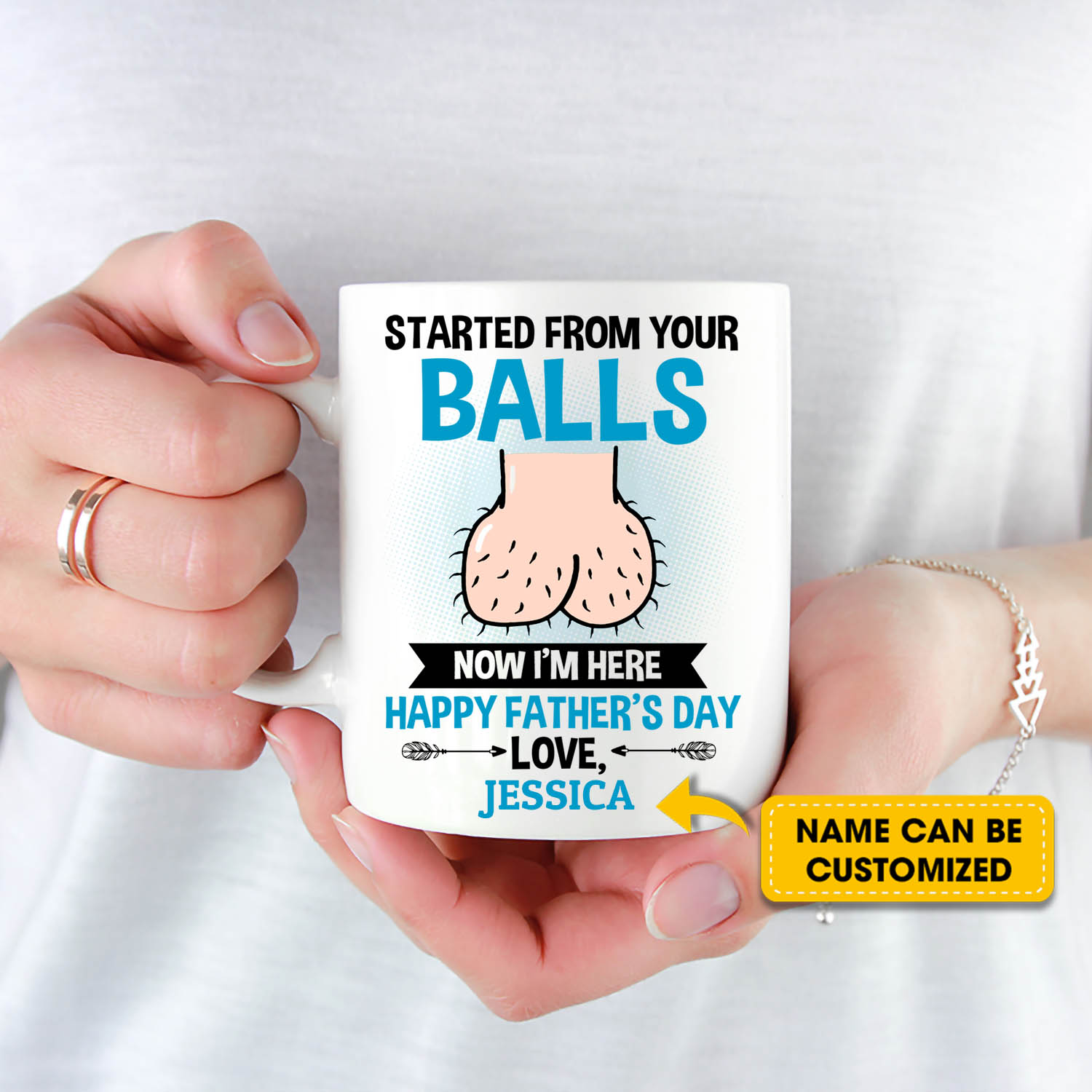 Let’s Shop Personalized Started From Your Balls Now I’m Here Happy Father’s Day Ceramic Coffee Mug-Funny Dads Balls Mug!
