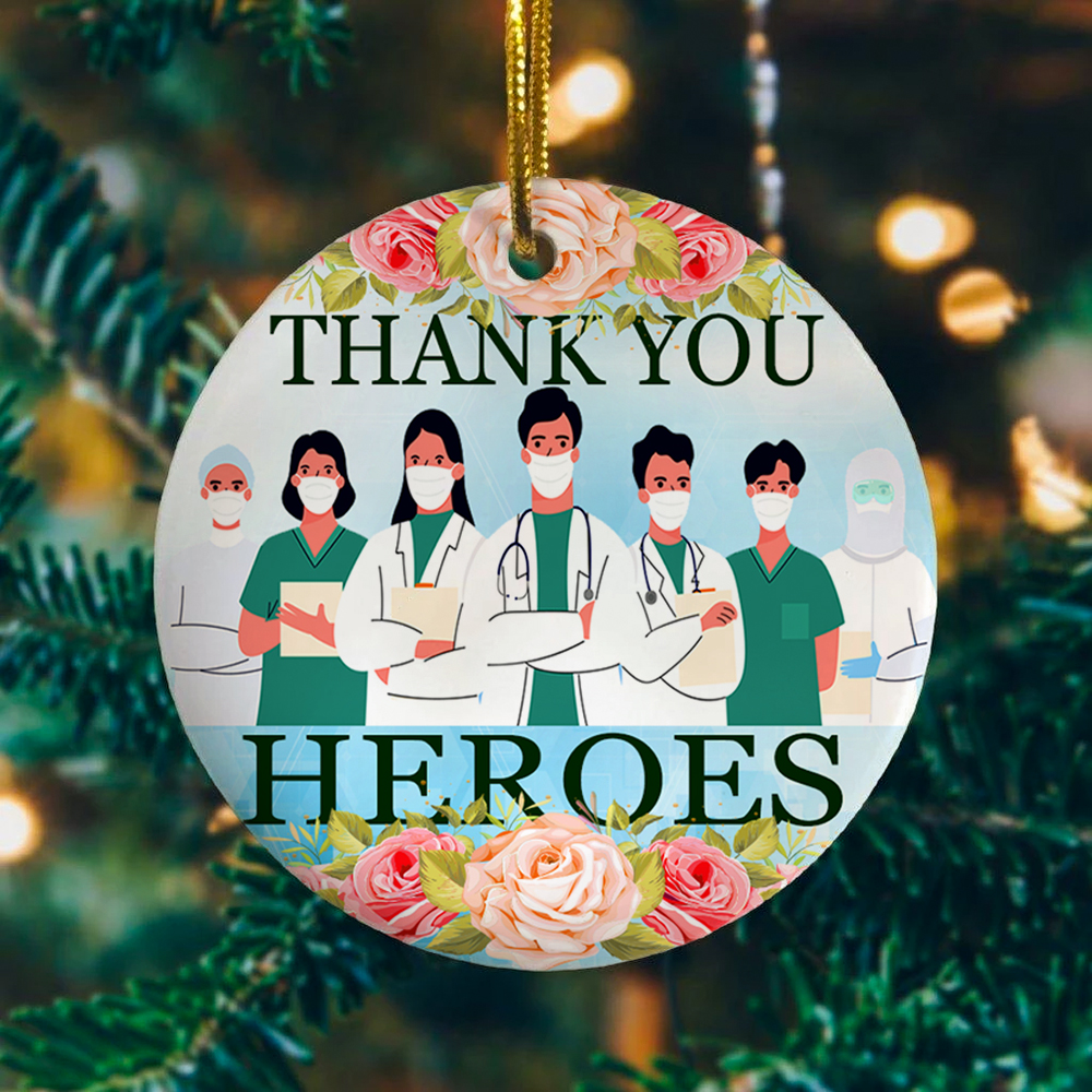 Let’s Shop Thank You Heroes Wearing Mask Quarantined Decorative Christmas Ornament – Holiday Flat Circle Ornament!