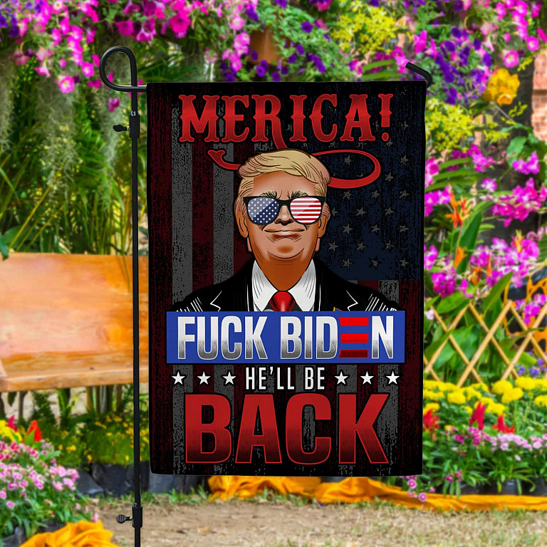 Let’s Shop Fuck Biden Trump Merica He’ll Be Back Garden Flag – Anti Joe Biden House Flag – Biden Not My President Flag!