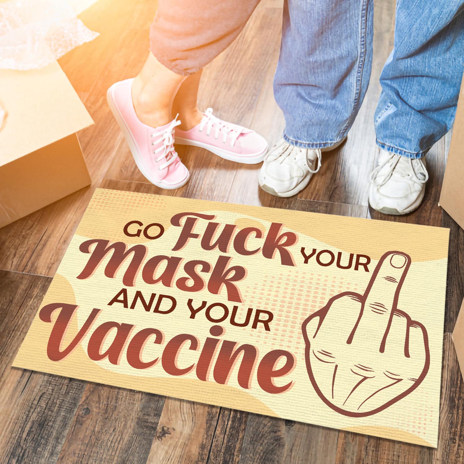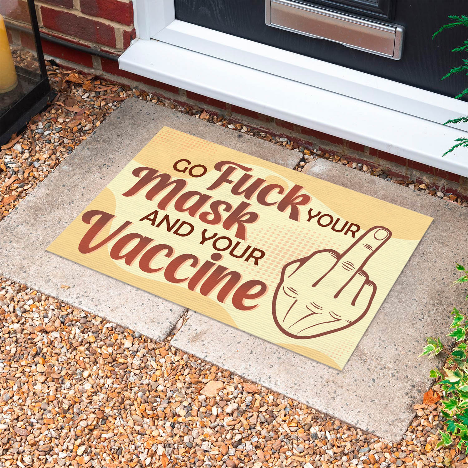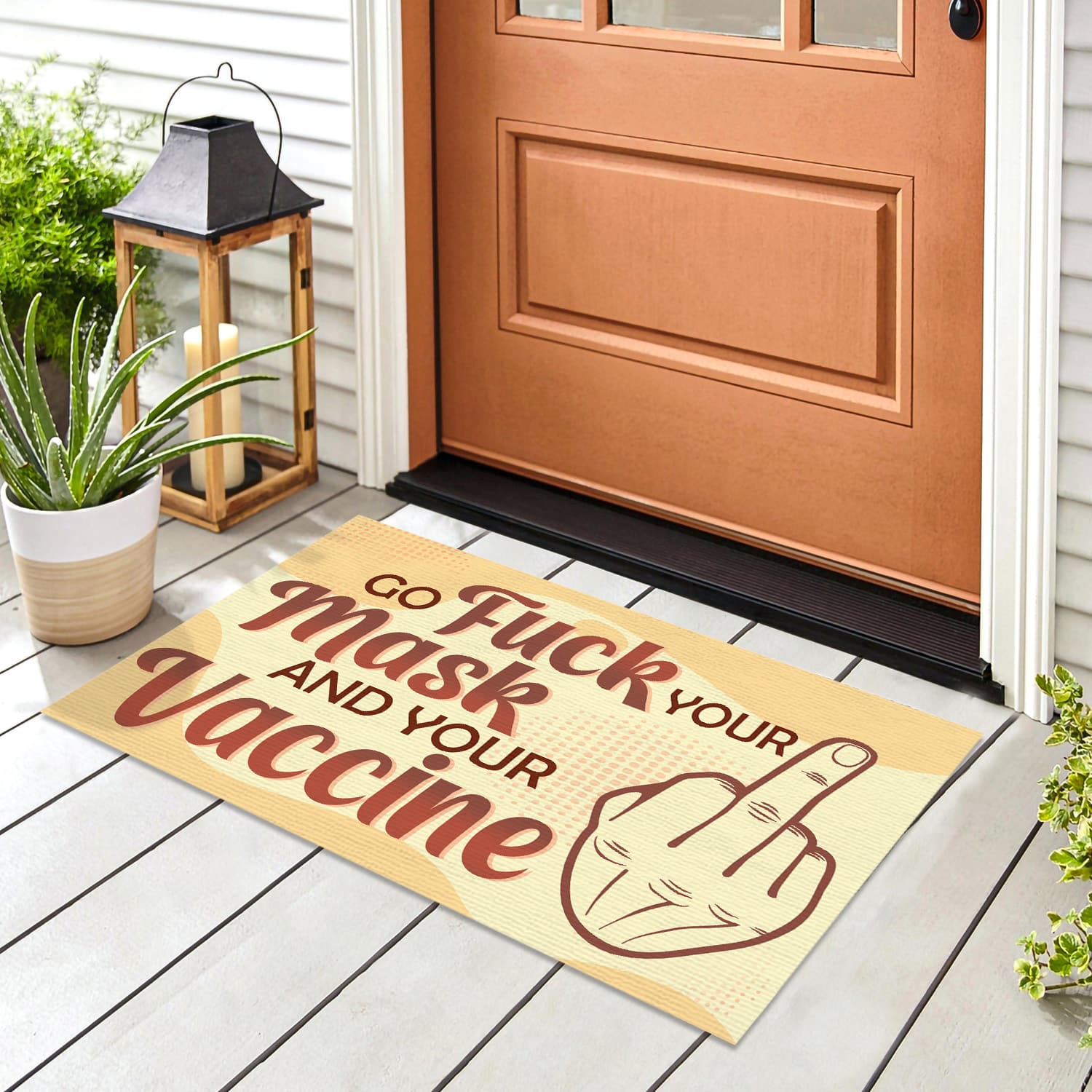 Let’s Shop Middle Finger Go Fuck Your Mask and Your Vaccine Decorative Doormat – Anti Mask Anti Vaccine Welcome Mat!
