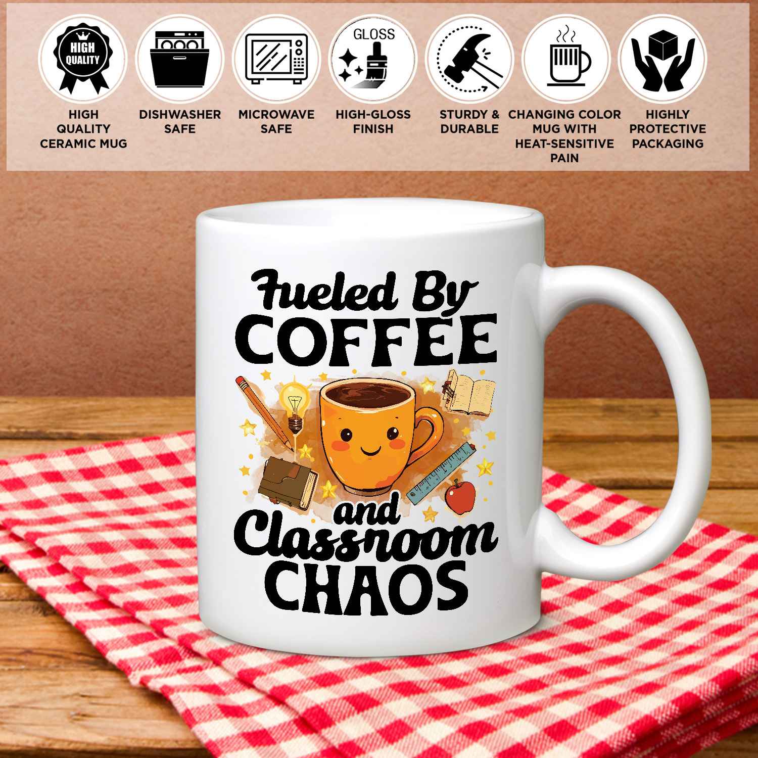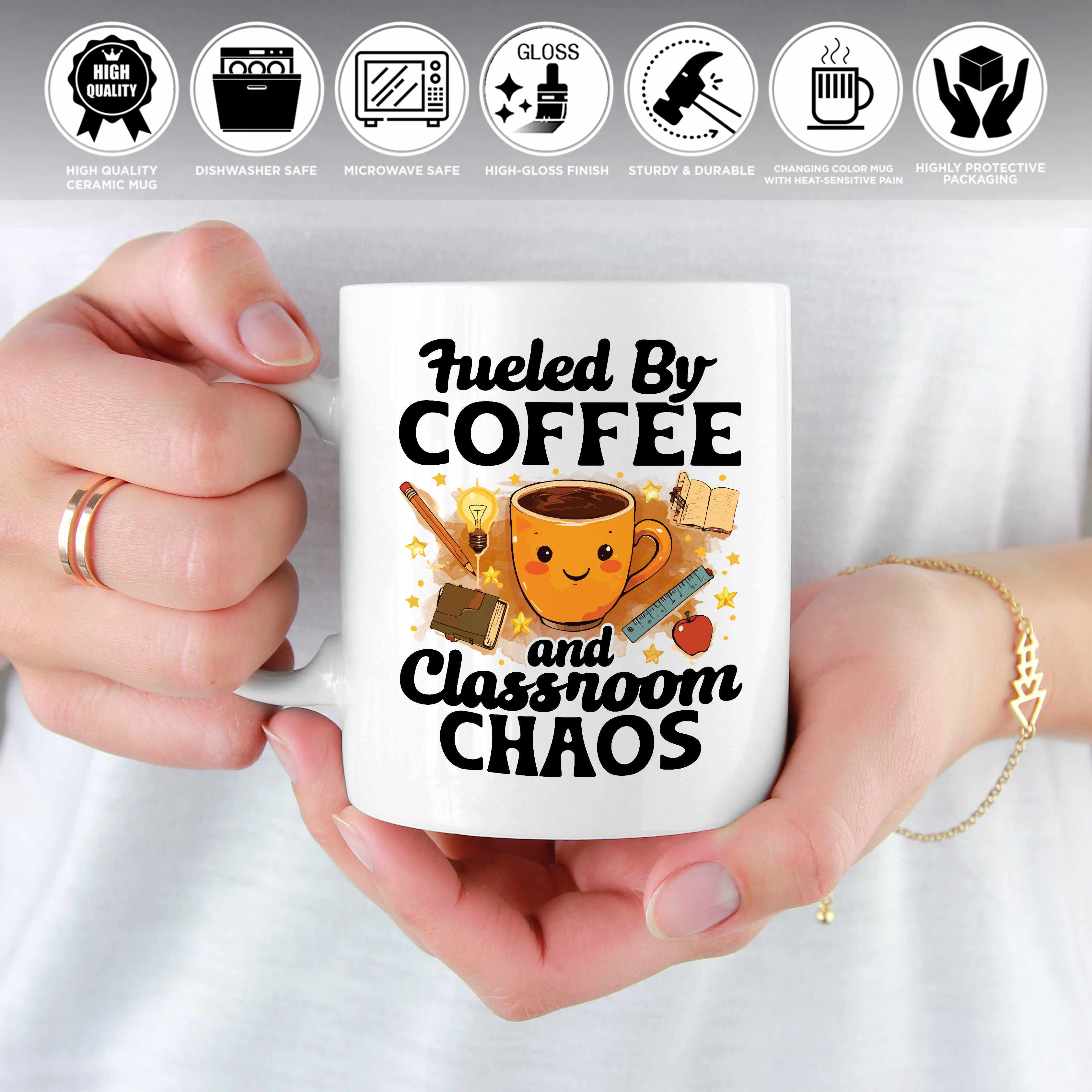 Let’s Shop Fueled By Coffee And Classroom Chaos Funny Teacher Ceramic Coffee Mug – Teacher Back To School Gifts!