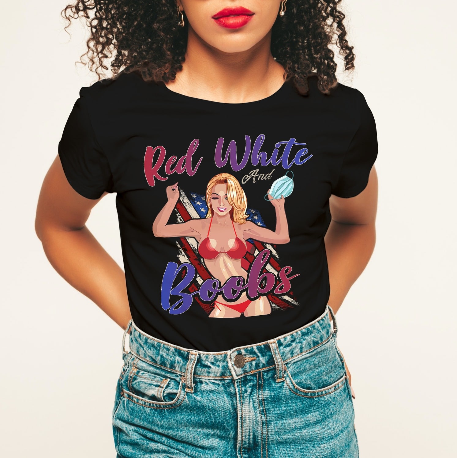 Red White And Boobs T-Shirt, Black, Unisex T-Shirt