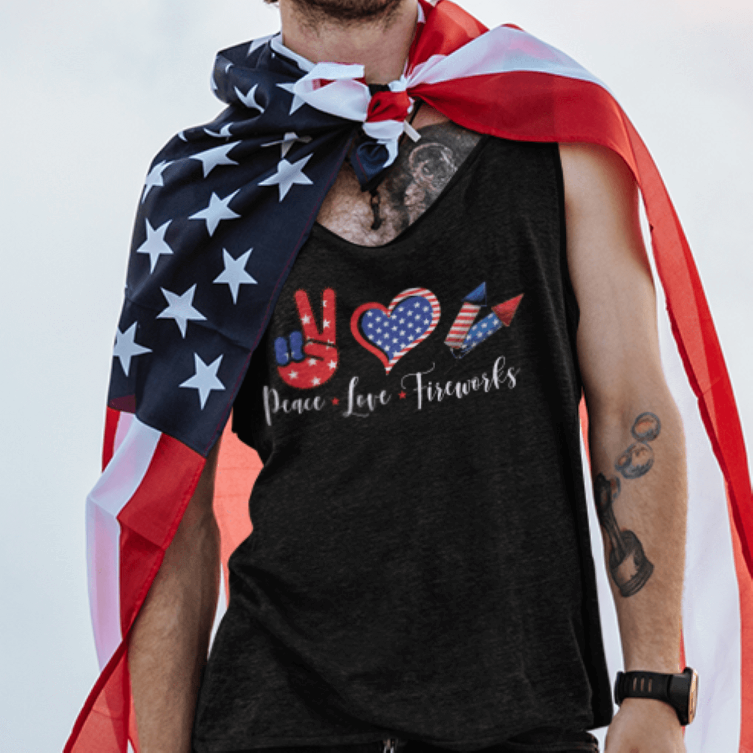 Peace Love Fireworks Funny 4th Of July Cotton Tank Top Tee - Fourth Of July Ladies Racerback Tank