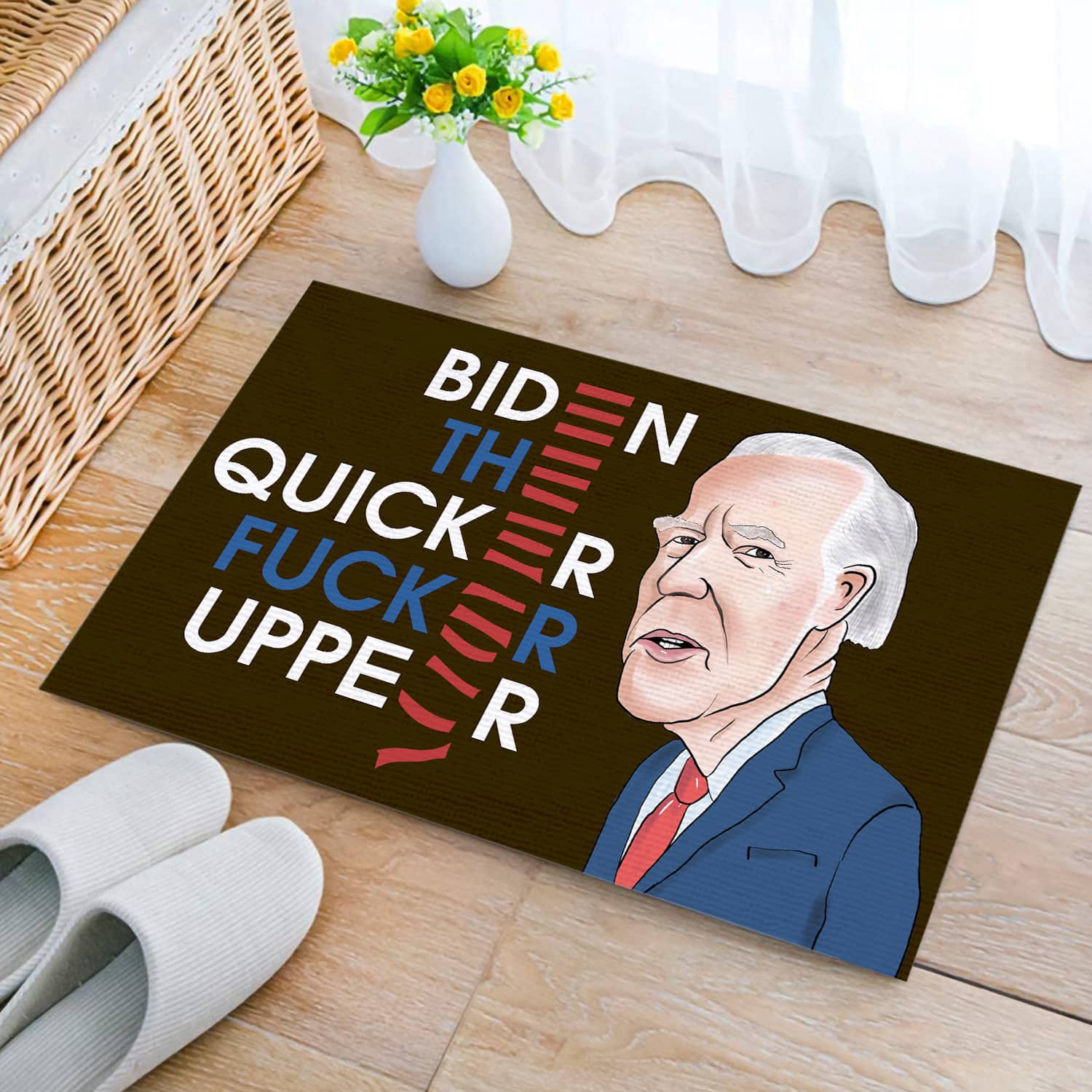 Let’s Shop Funny Anti Biden Entrance Indoor Outdoor Decorative Doormat – Biden The Quicker Fucker Upper Doormat!