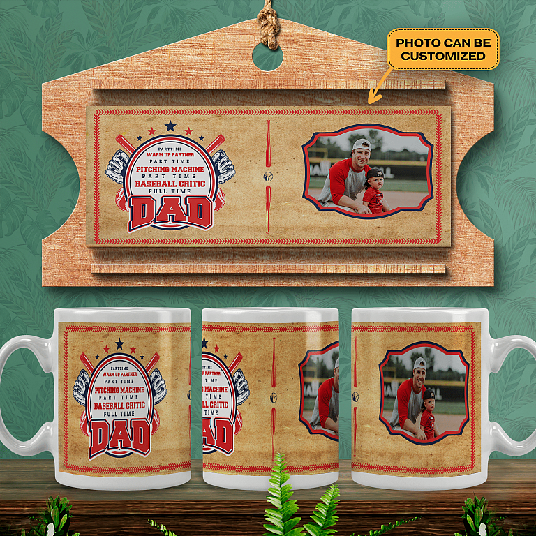 Let’s Shop Personalized Photo Father Son Daughter Baseball Partner Mug – Fun Part Time Pitching Machine Baseball Dad Mug!