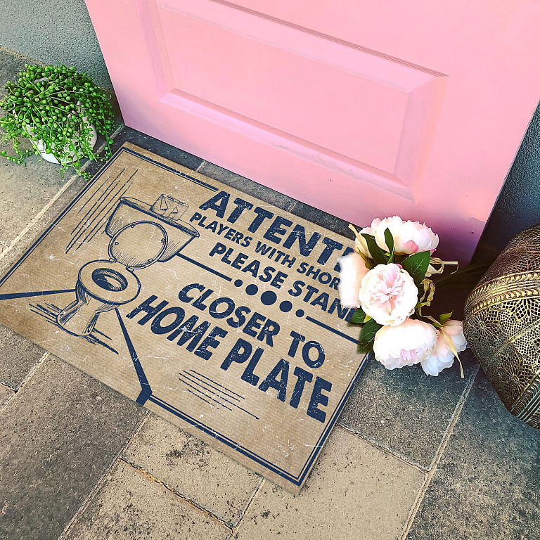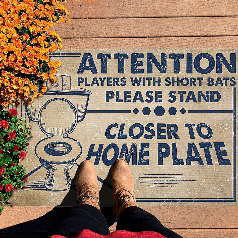 Let’s Shop Attention Players With Short Bats Please Stand Closer To Home Plate Funny Baseball Restroom Outdoor Indoor Toilet Doormat!