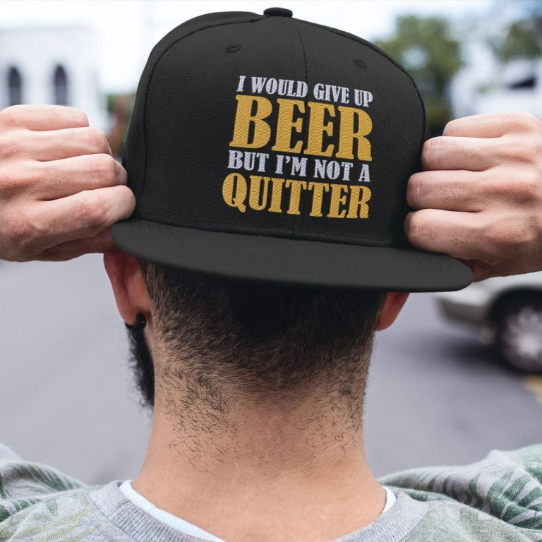 Let’s Shop I Would Give Up Beer But I’m Not A Quitter Funny Beer Twill Cap – High-Profile Snapback Hat – Beer Lover Hat!