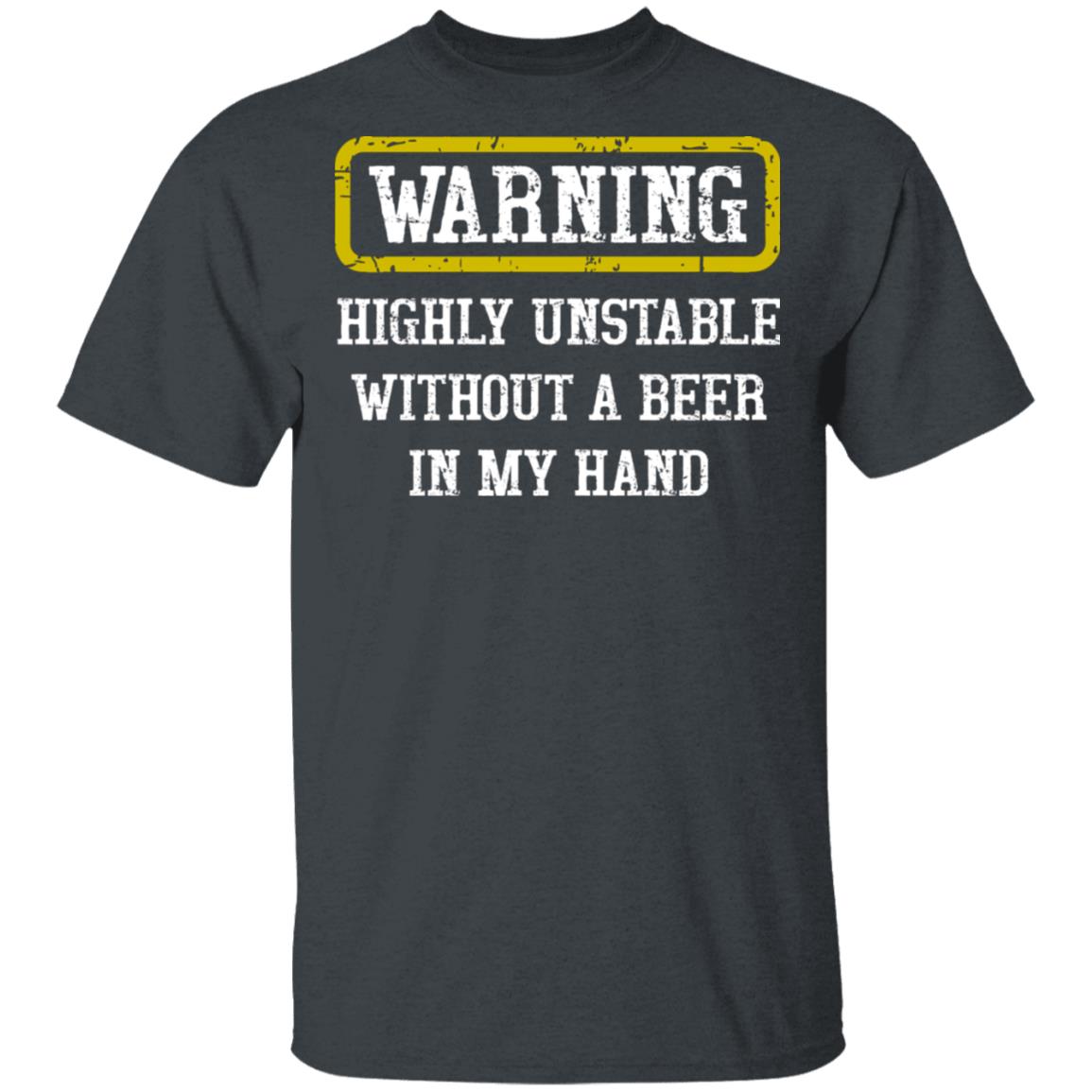 Warning Highly Unstable Without A Beer In My Hand T-Shirt – Beer Lover Shirt