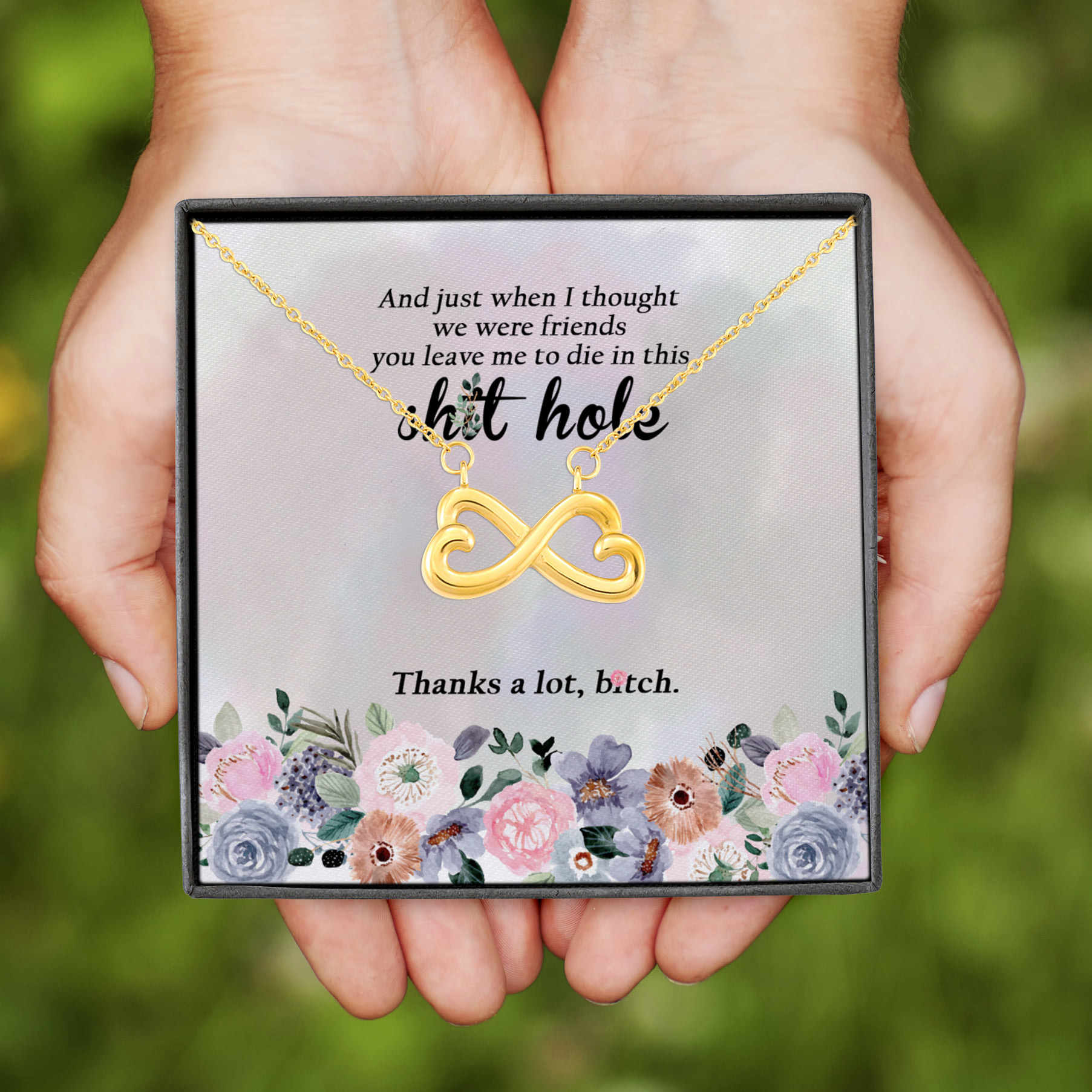 Let’s Shop And Just When I Thought We Were Friends You Leave Me To Die In This Shit Hole Infinity Heart Pendant Necklace!