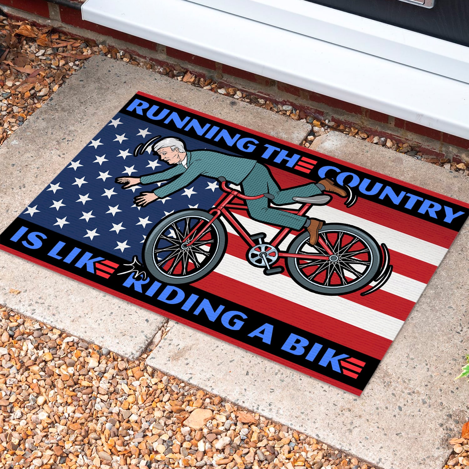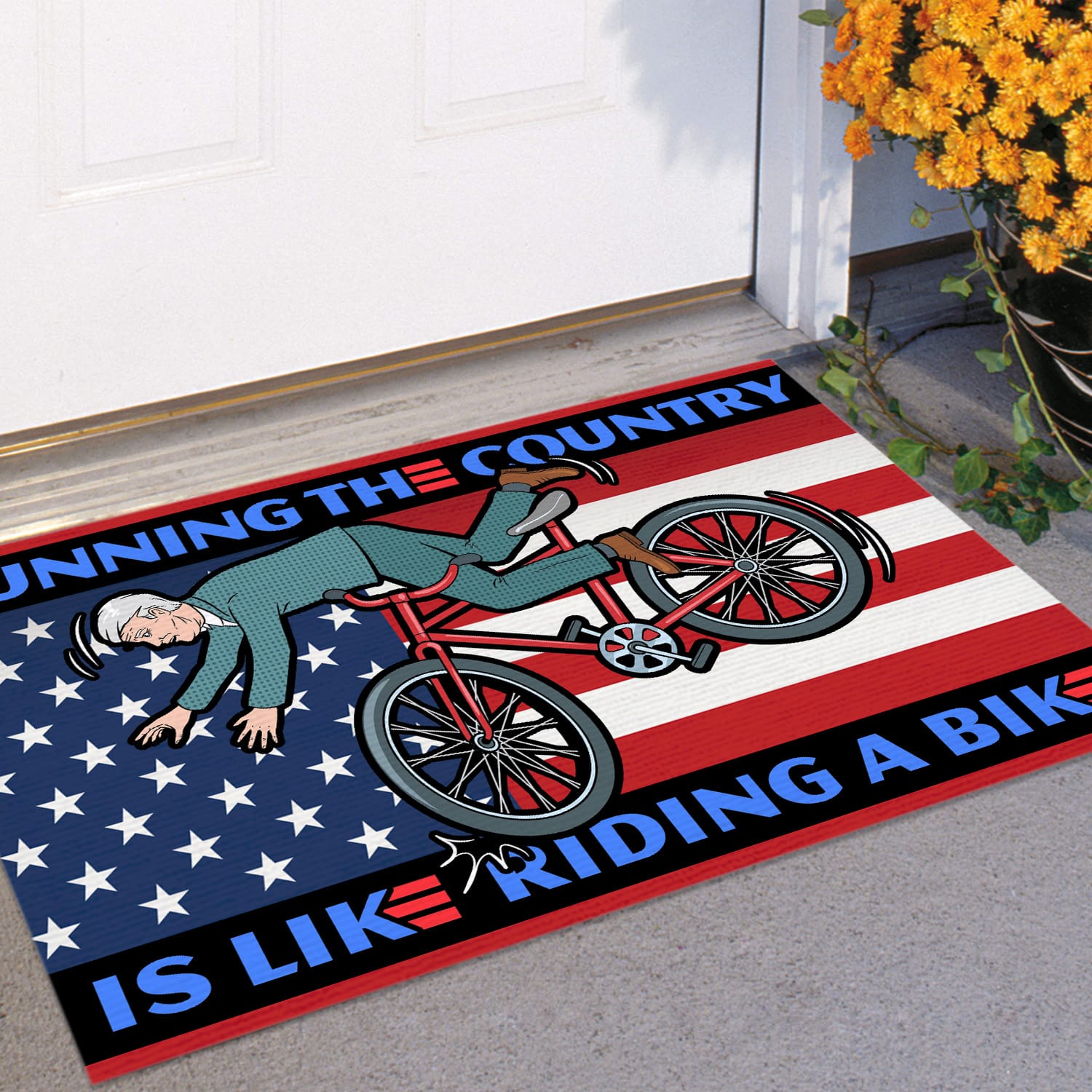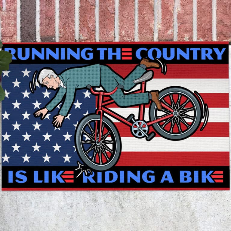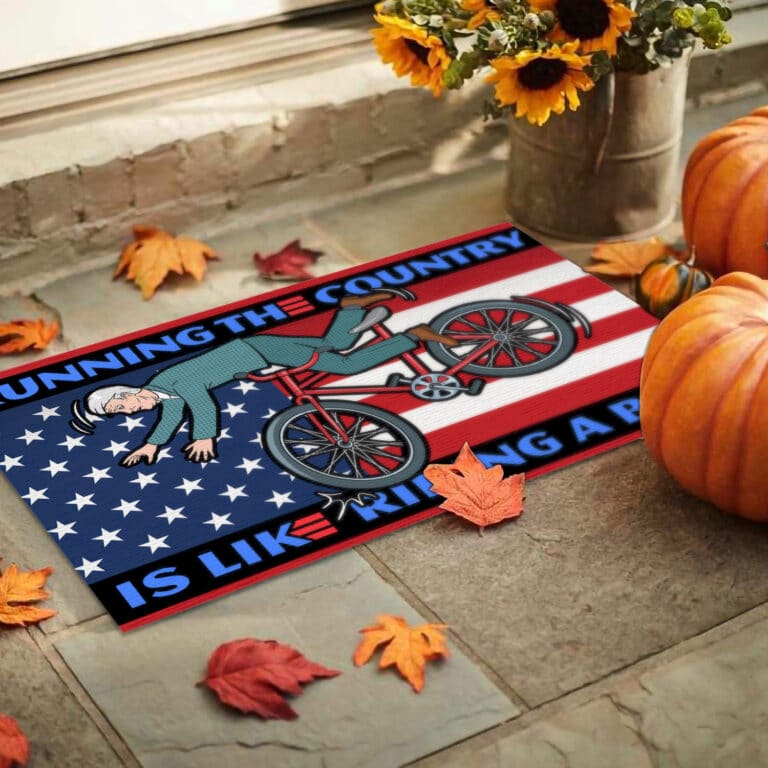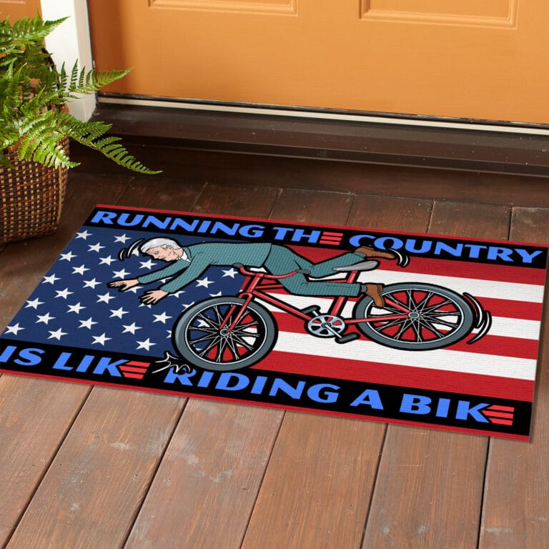 Let’s Shop Running the Country Is Like Riding A Bike Funny Biden Entrance Indoor Outdoor Decorative Doormat!