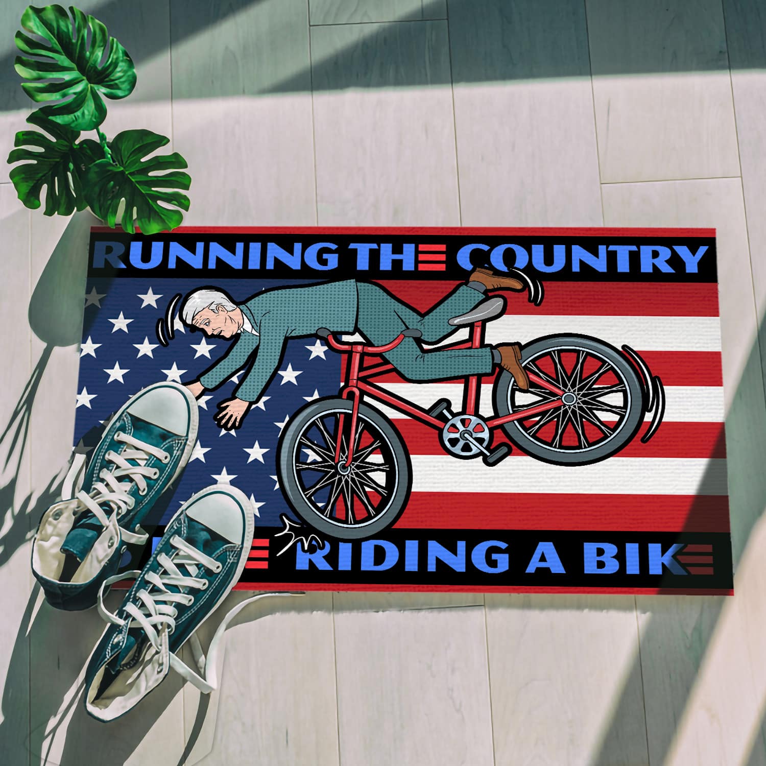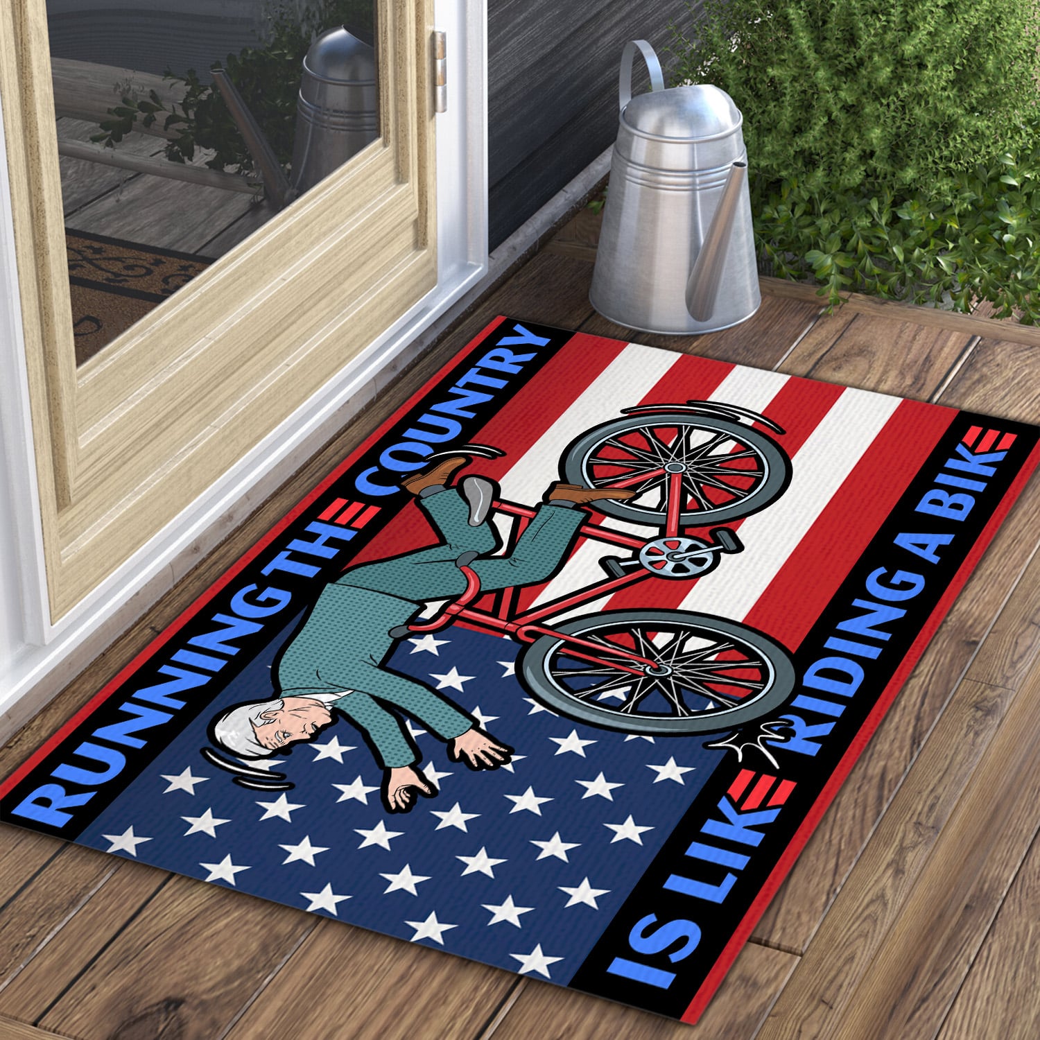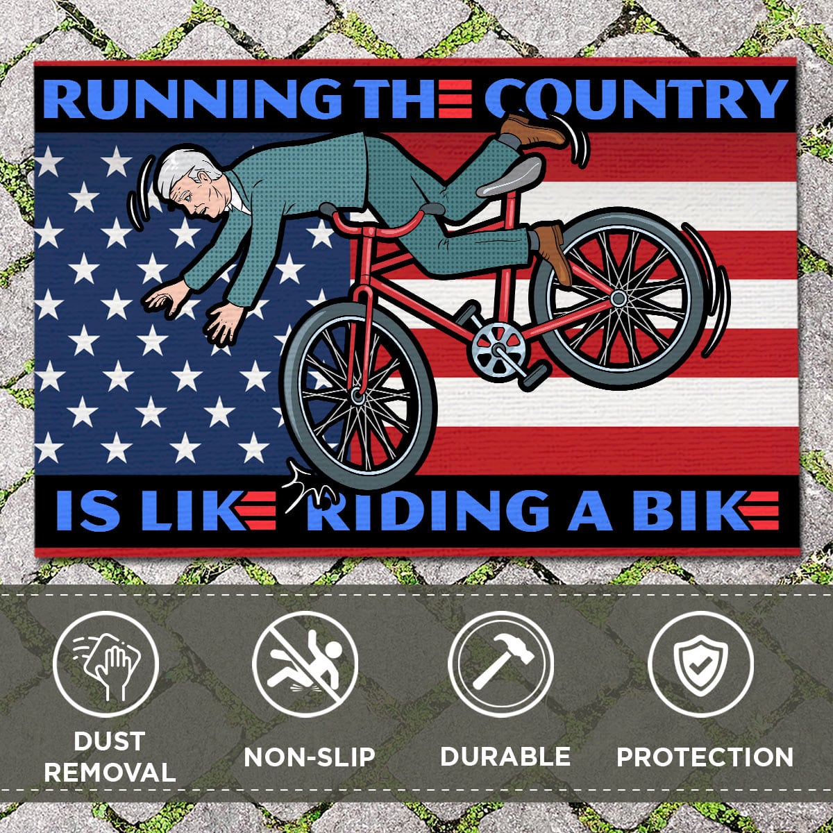 Let’s Shop Running the Country Is Like Riding A Bike Funny Biden Entrance Indoor Outdoor Decorative Doormat!