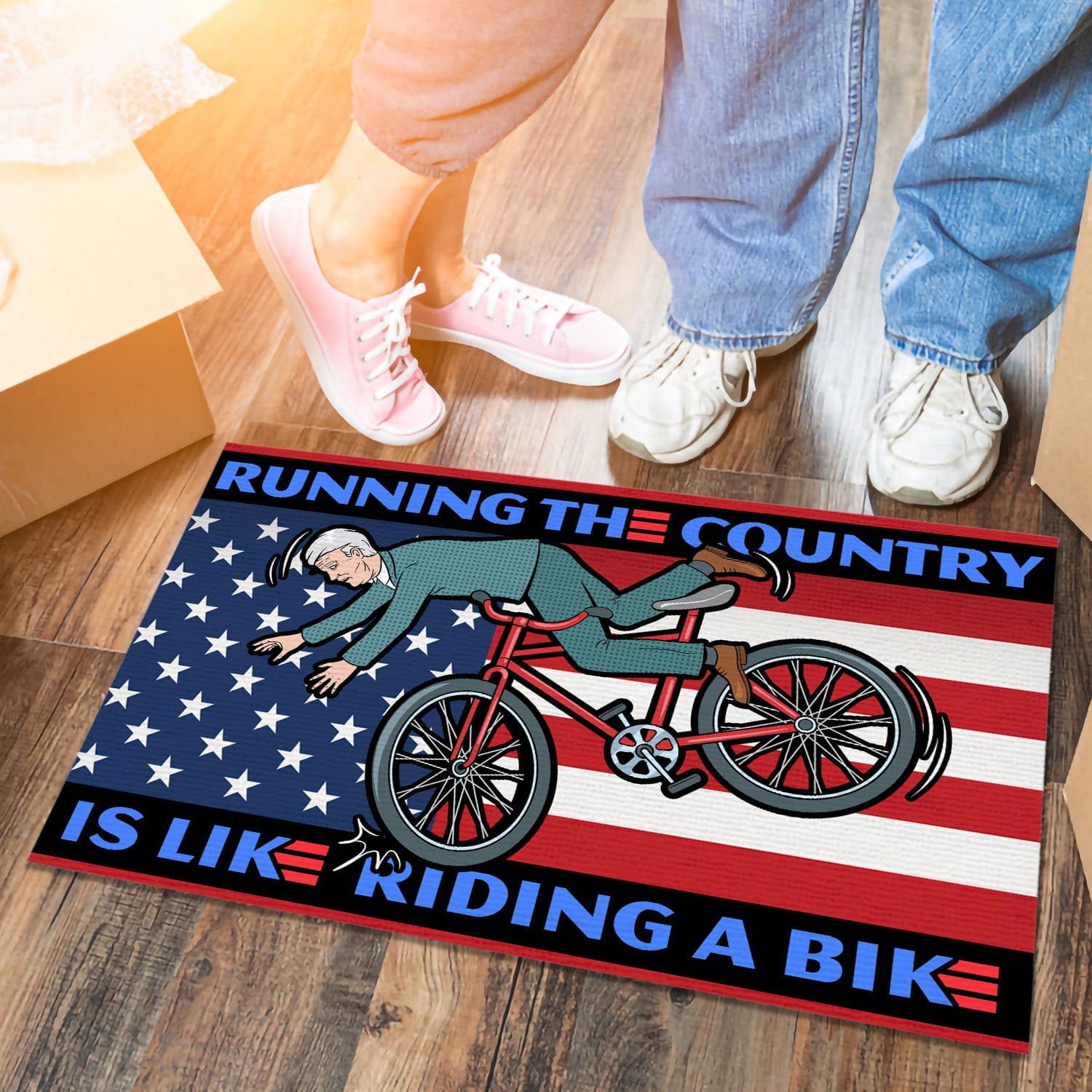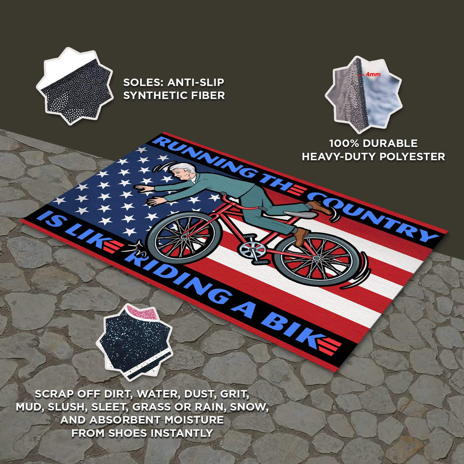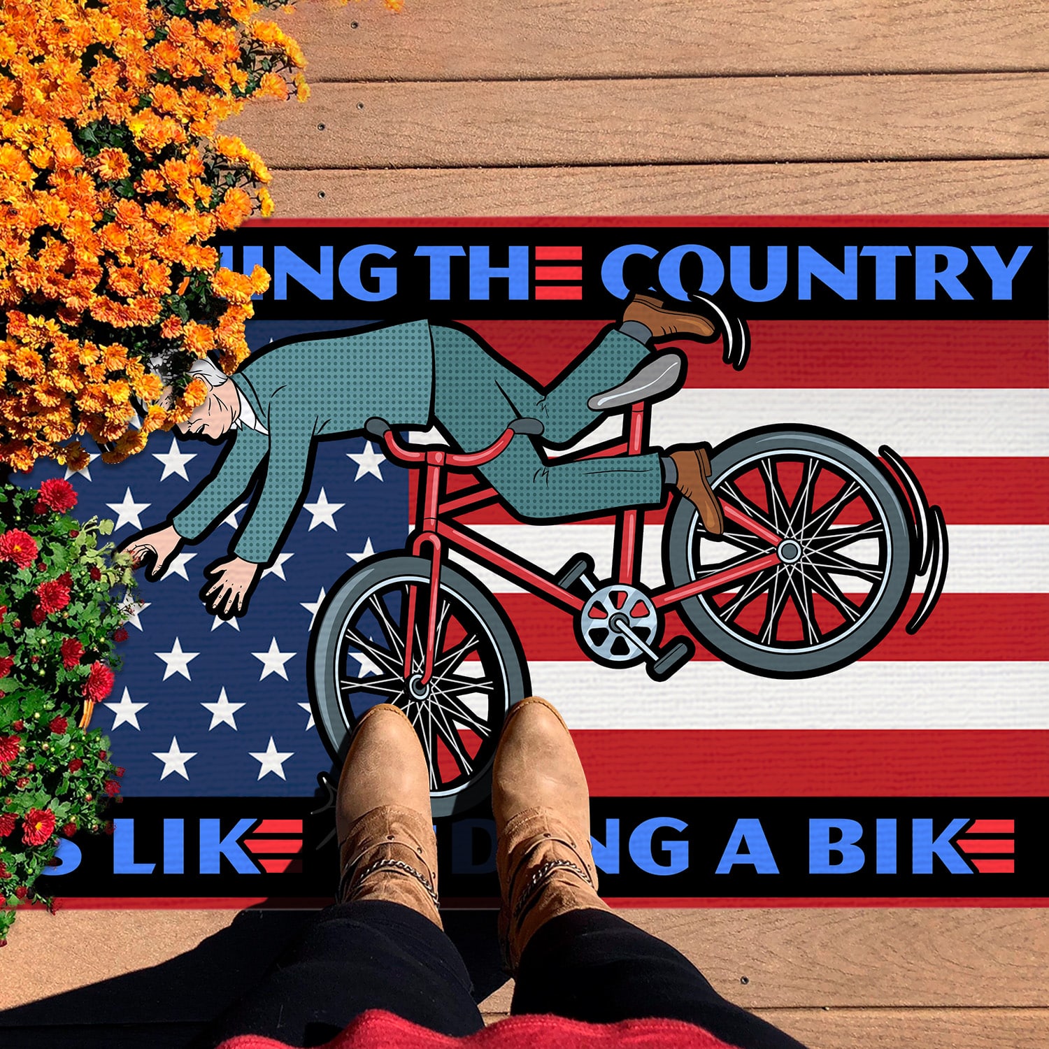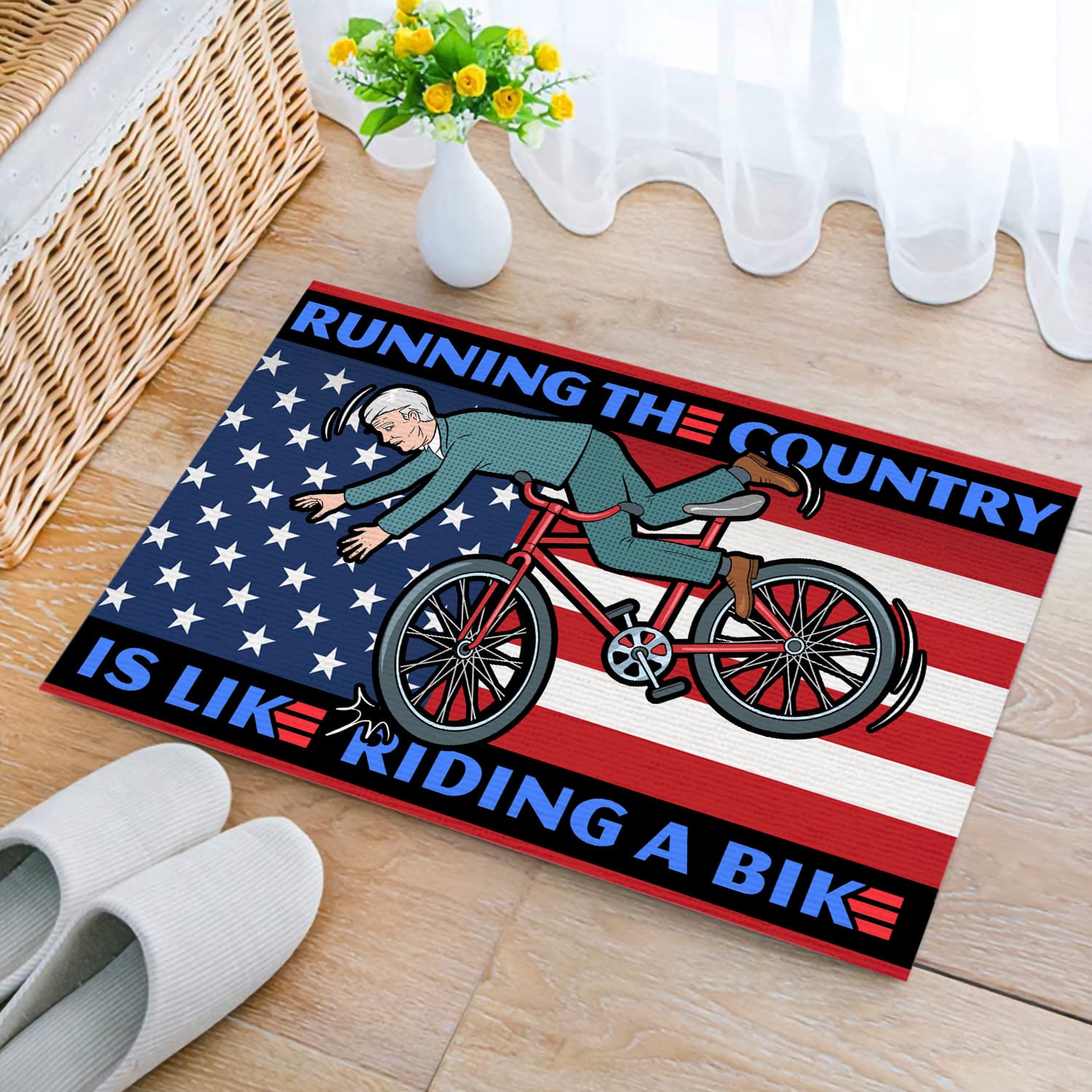 Let’s Shop Running the Country Is Like Riding A Bike Funny Biden Entrance Indoor Outdoor Decorative Doormat!