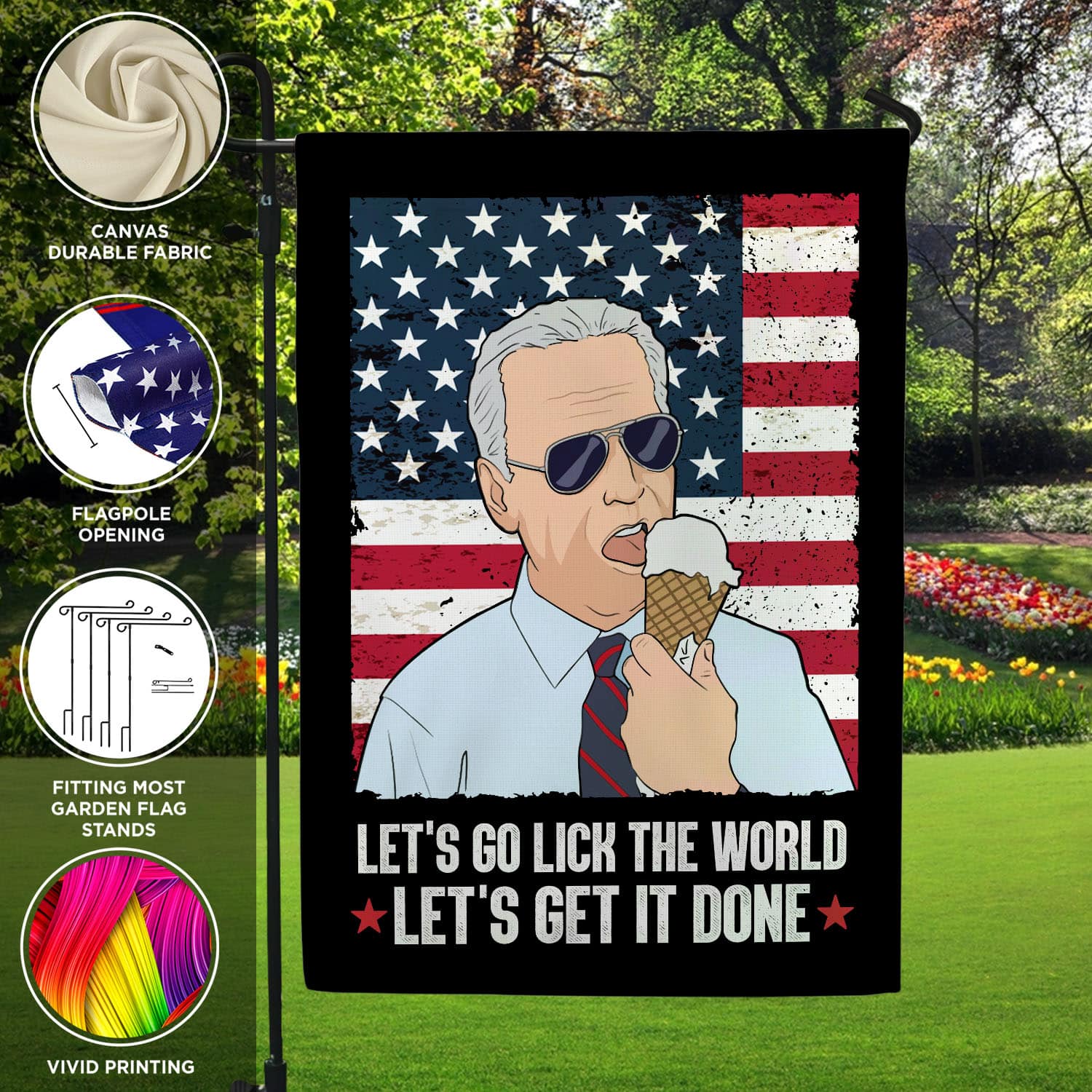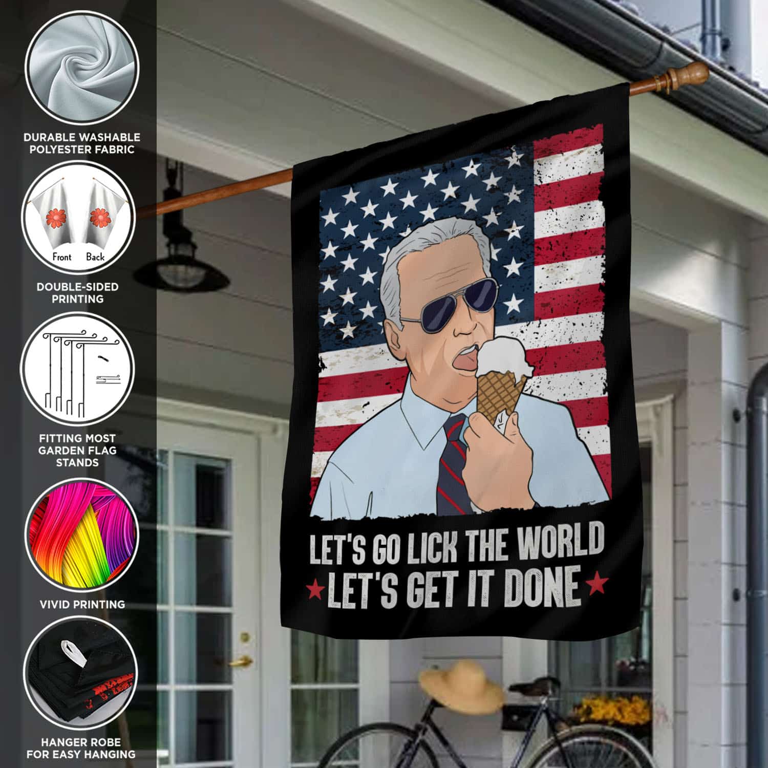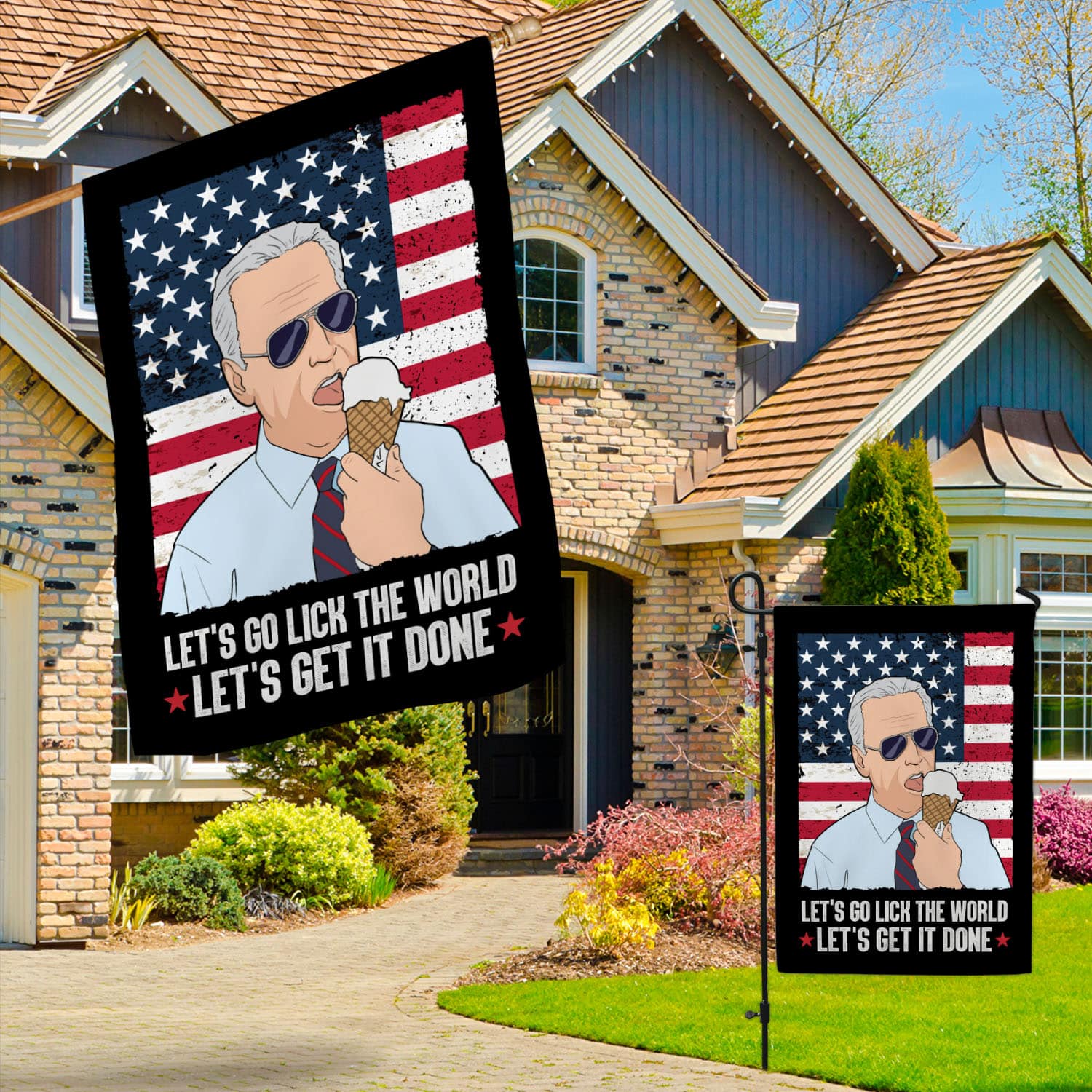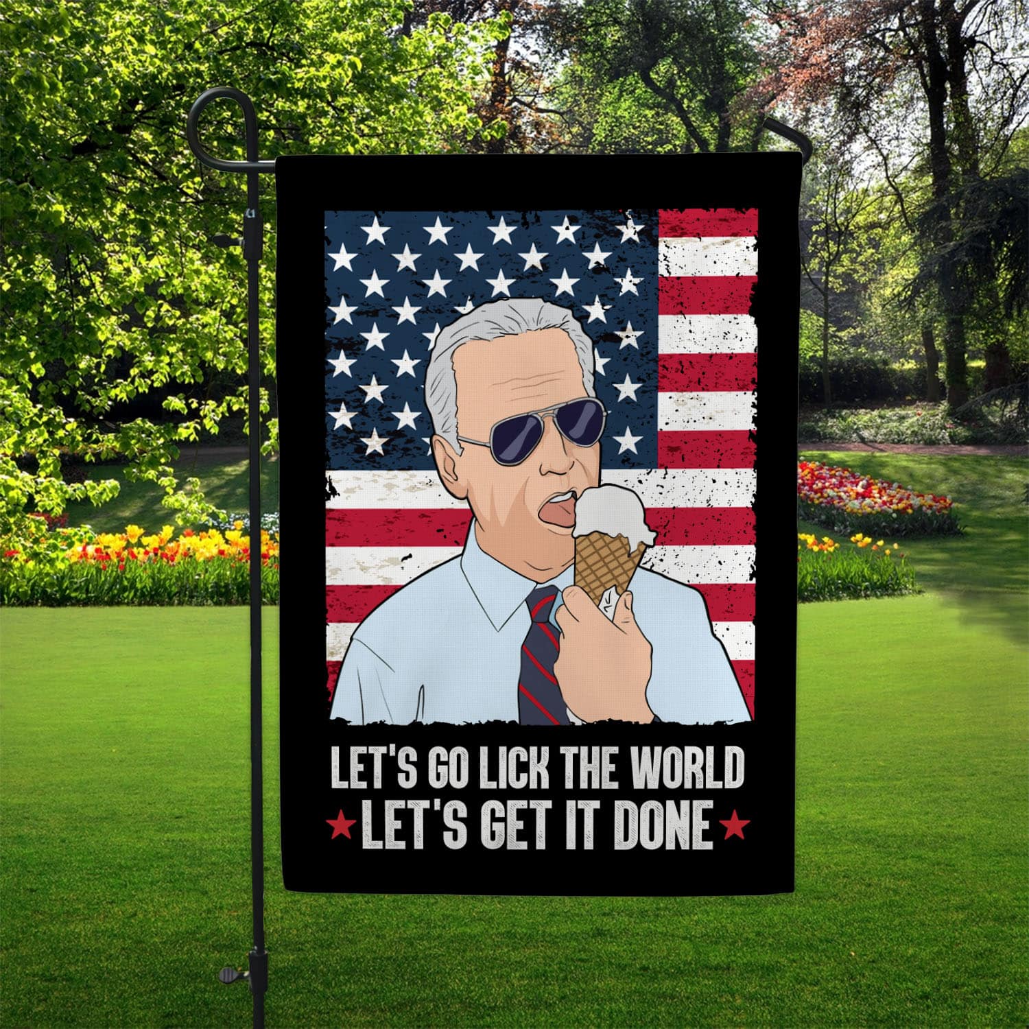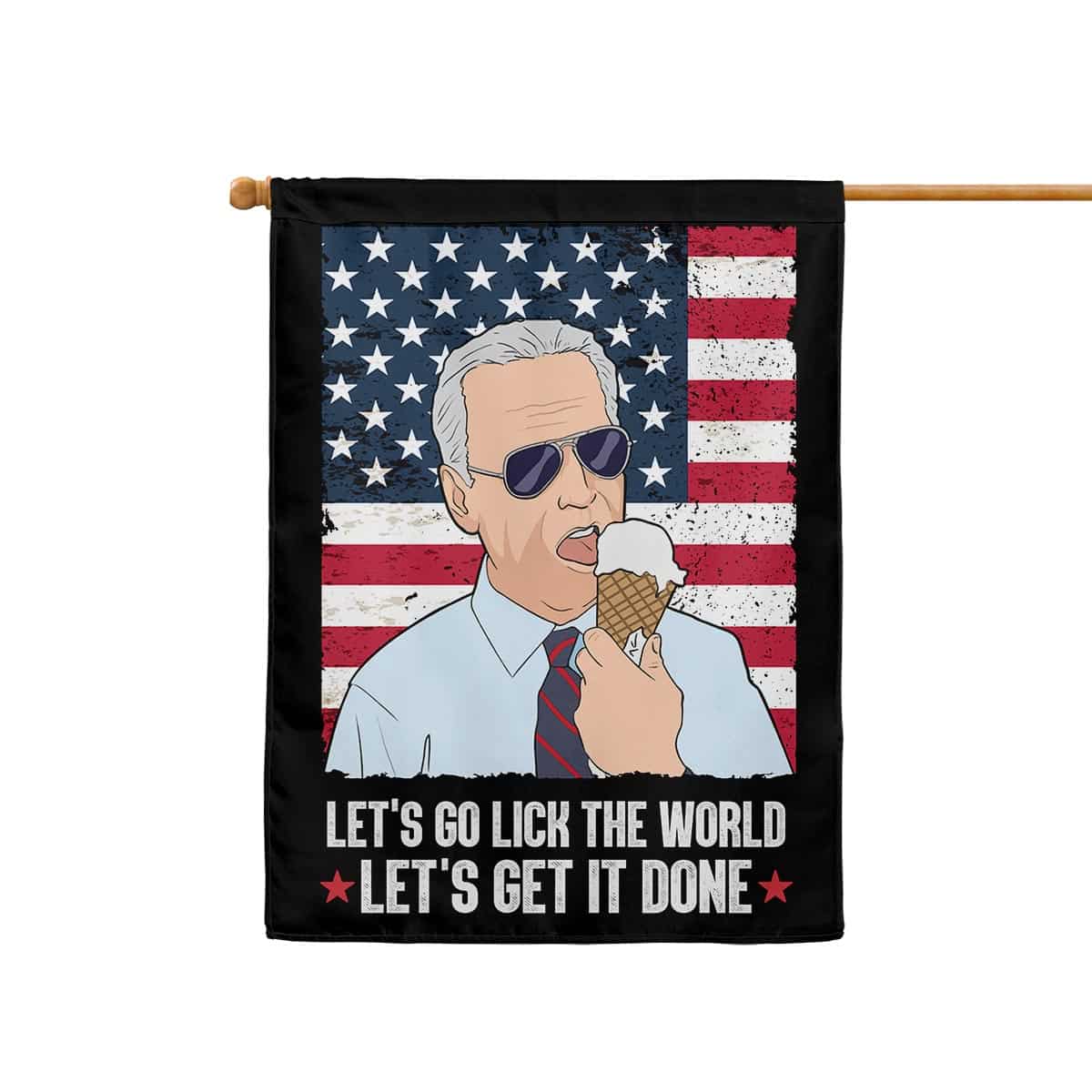 Let’s Shop Let’s Go Lick The World Let’s Get It Done Funny Biden Outdoor House Flag – Garden Flag!