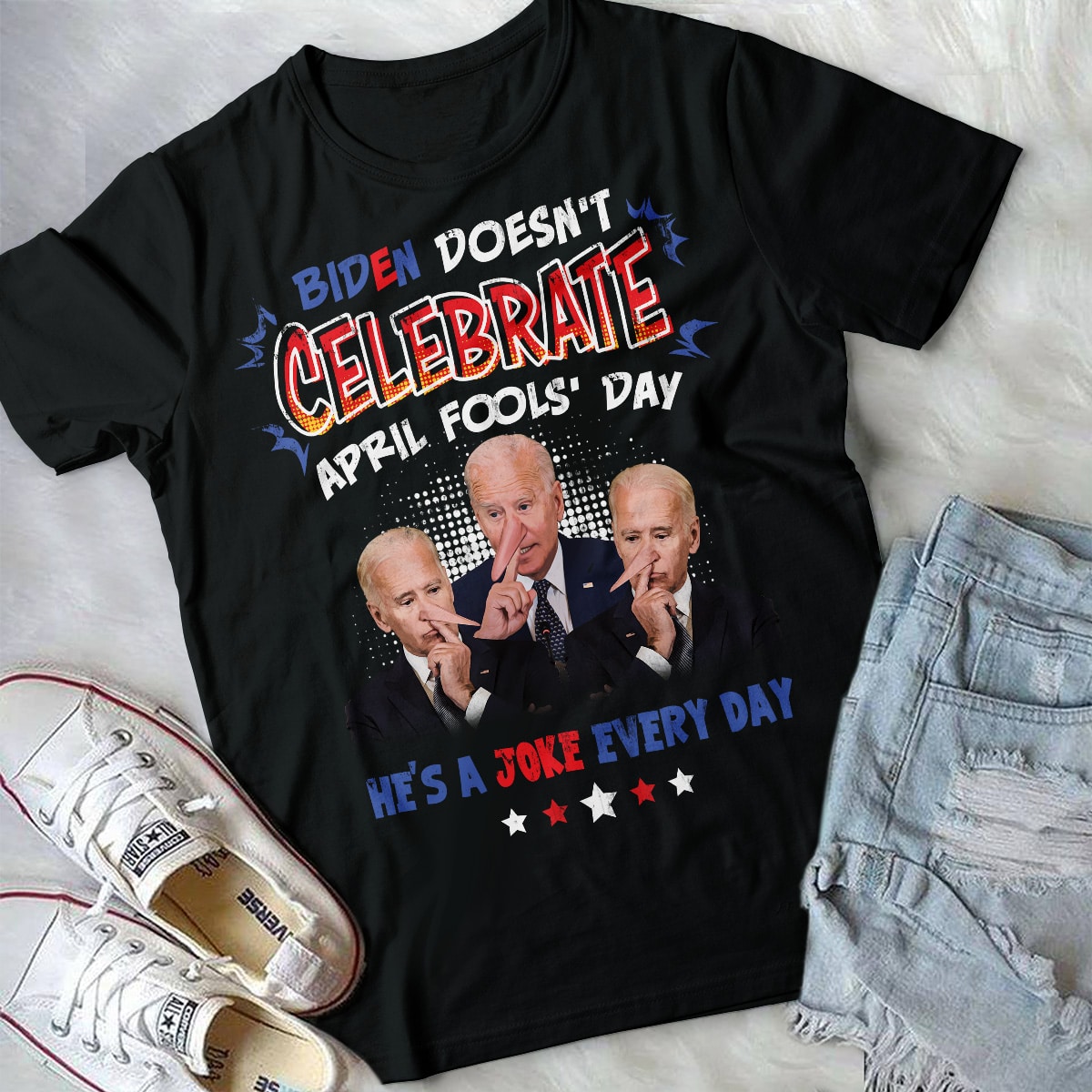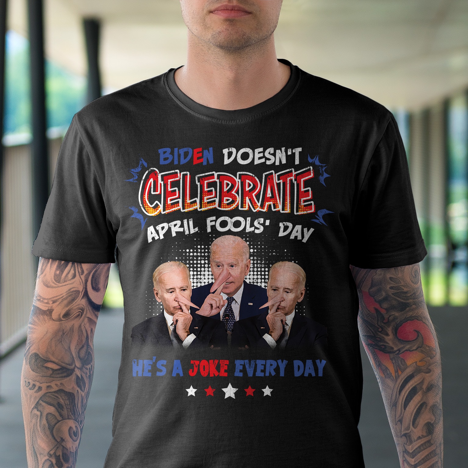 Let’s Shop Biden Doesn’t Celebrate April Fools’ Day He’s A Joke Every Day Funny Biden T-Shirt!