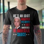 Let’s Shop He’s An Idiot Wrapped In A Moron And Smothered In Imbecile Sauce Funny Biden T-Shirt!