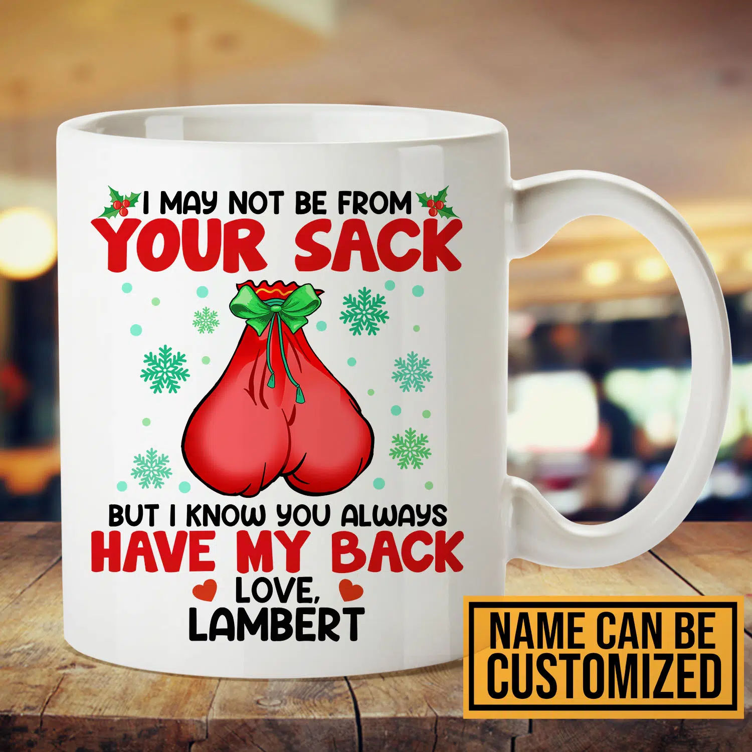 Let’s Shop Personalized I May Not Be From Your Sack But I Know You Always Have My Back Bonus Dad Christmas Coffee Mug!