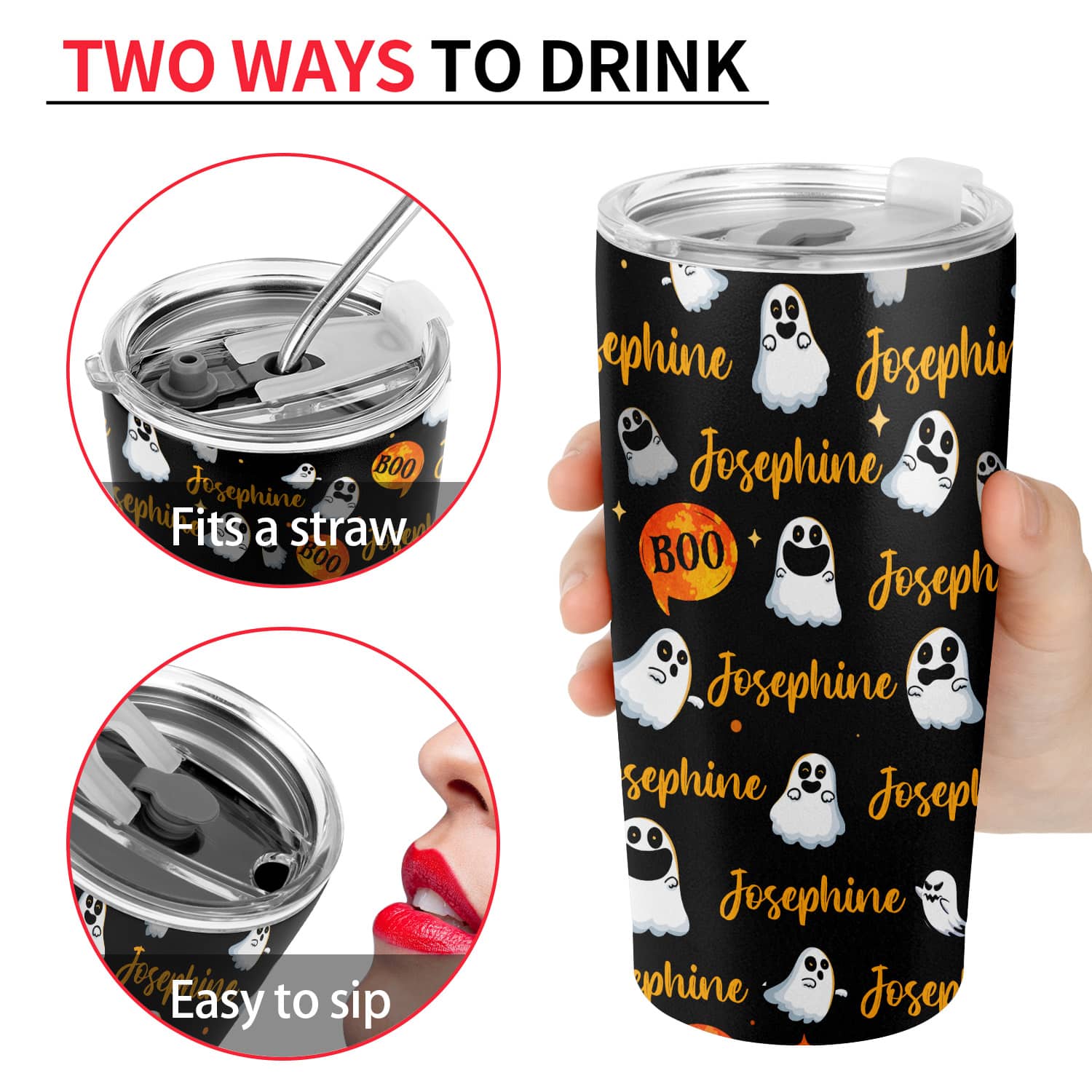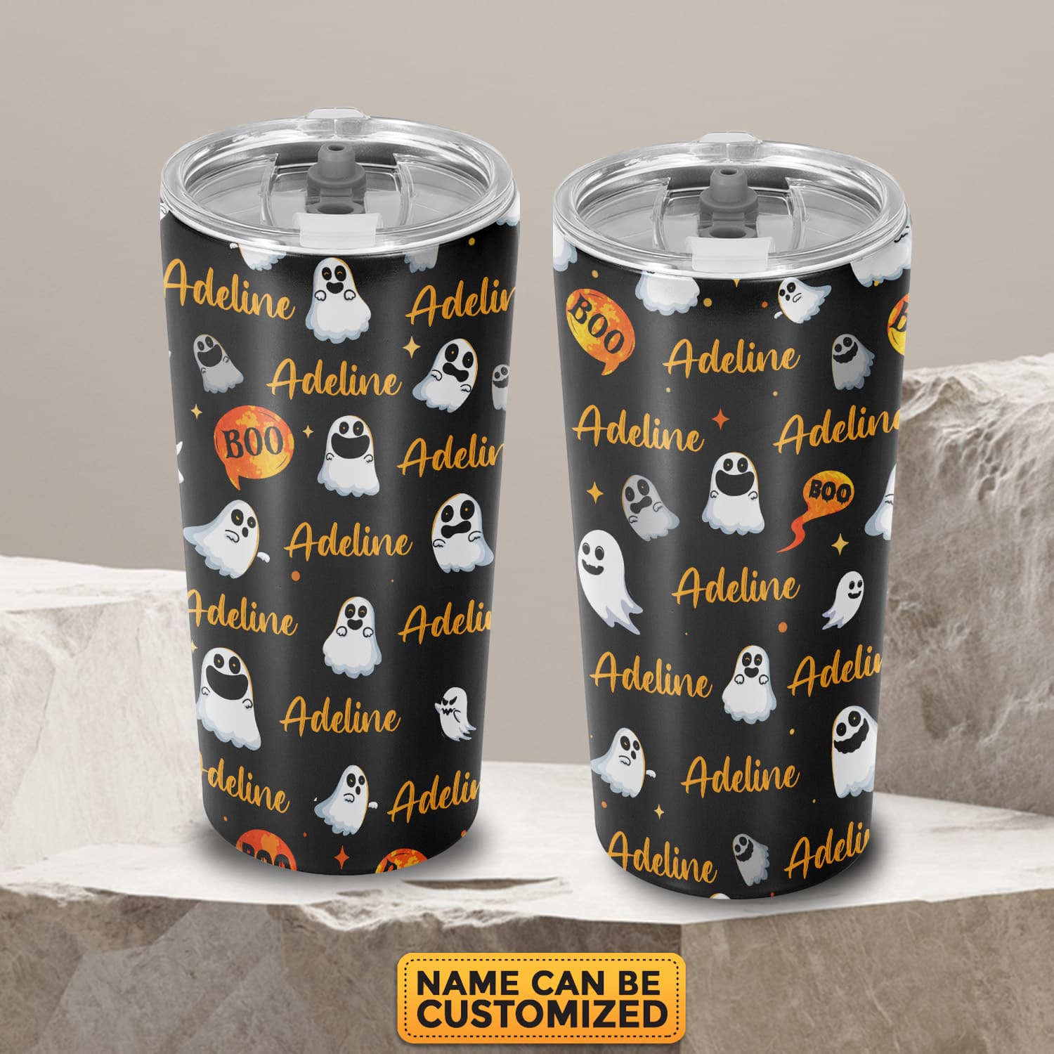 Let’s Shop Funny Boo Halloween Custom Name Insulated Tumbler Cup With Lid – Personalized Halloween Mug Cup!