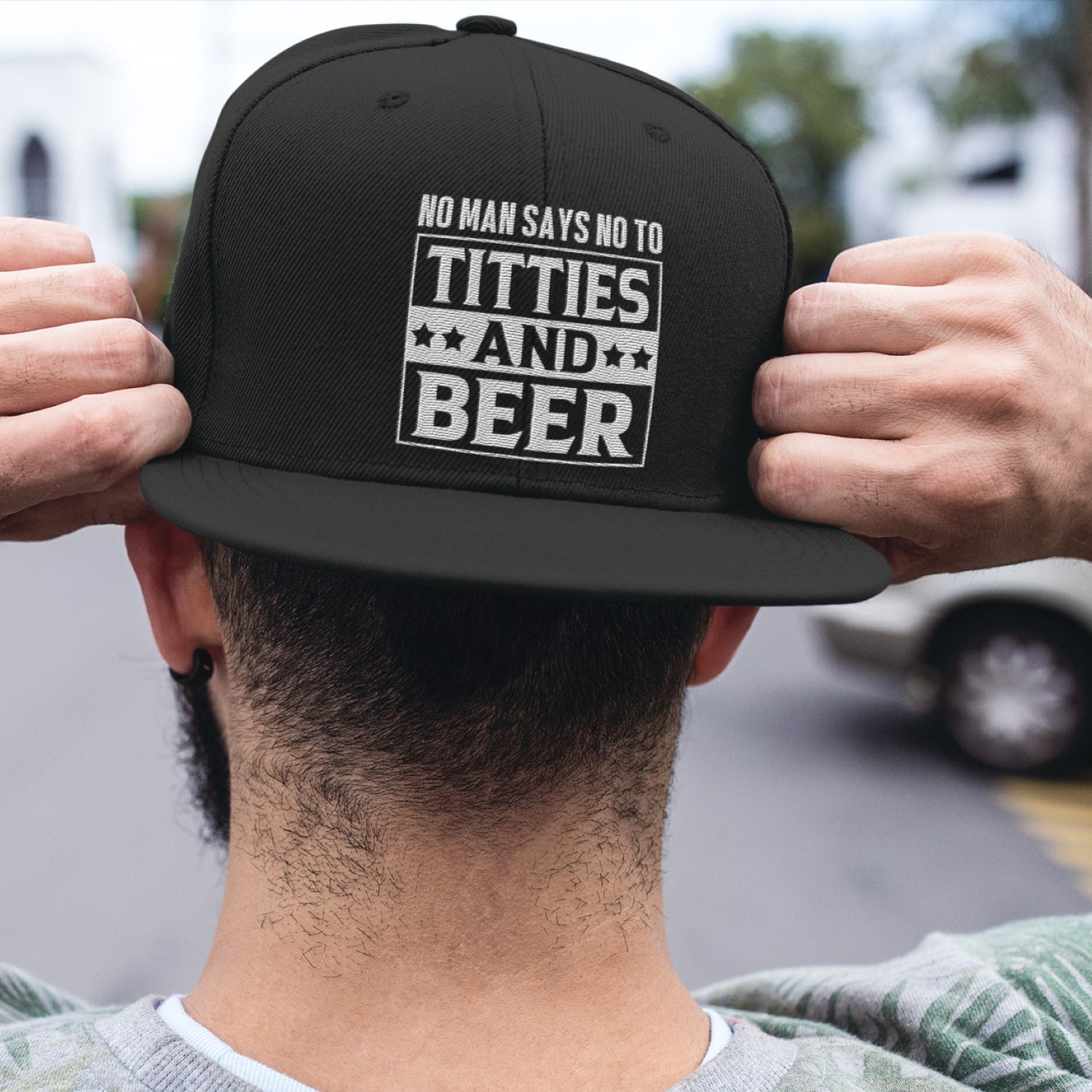 Let’s Shop No Man Says No To Titties And Beer Twill Cap – High-Profile Snapback Hat – Funny Beer Cap For Men!