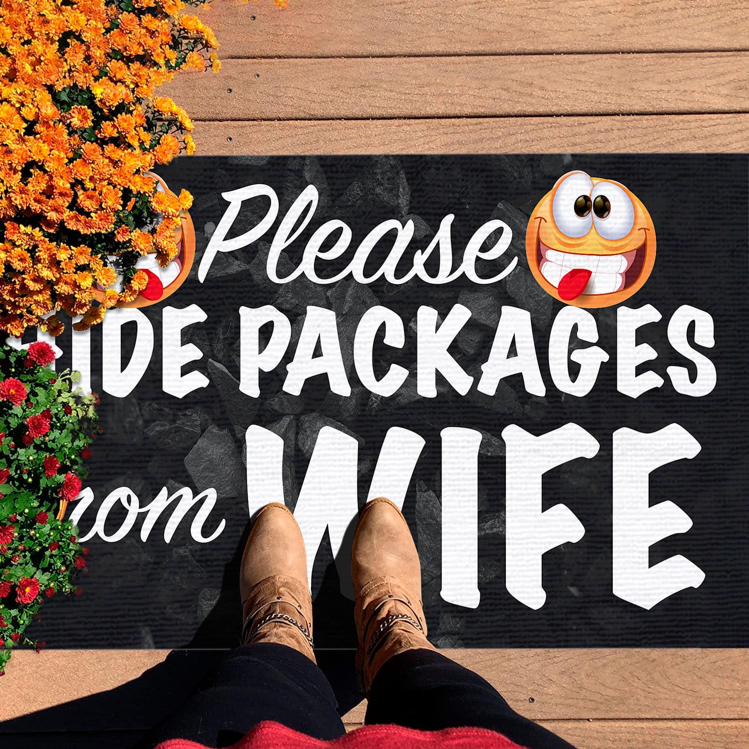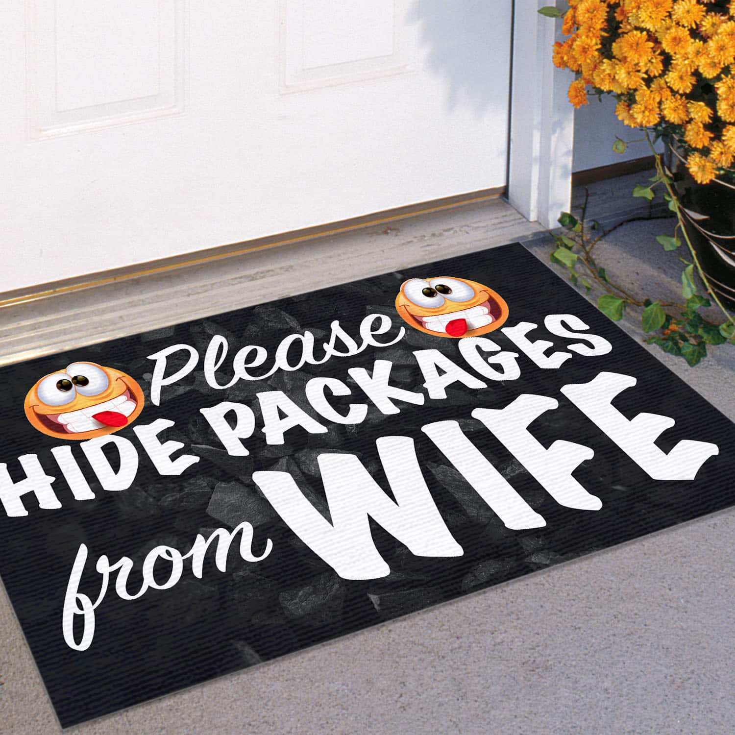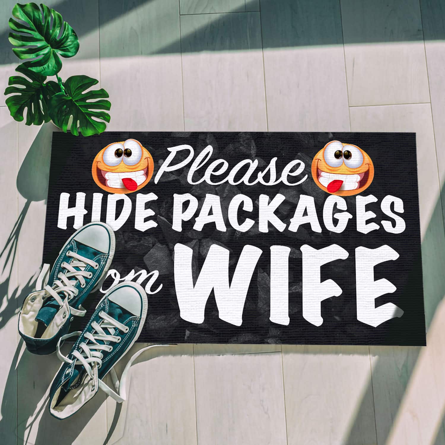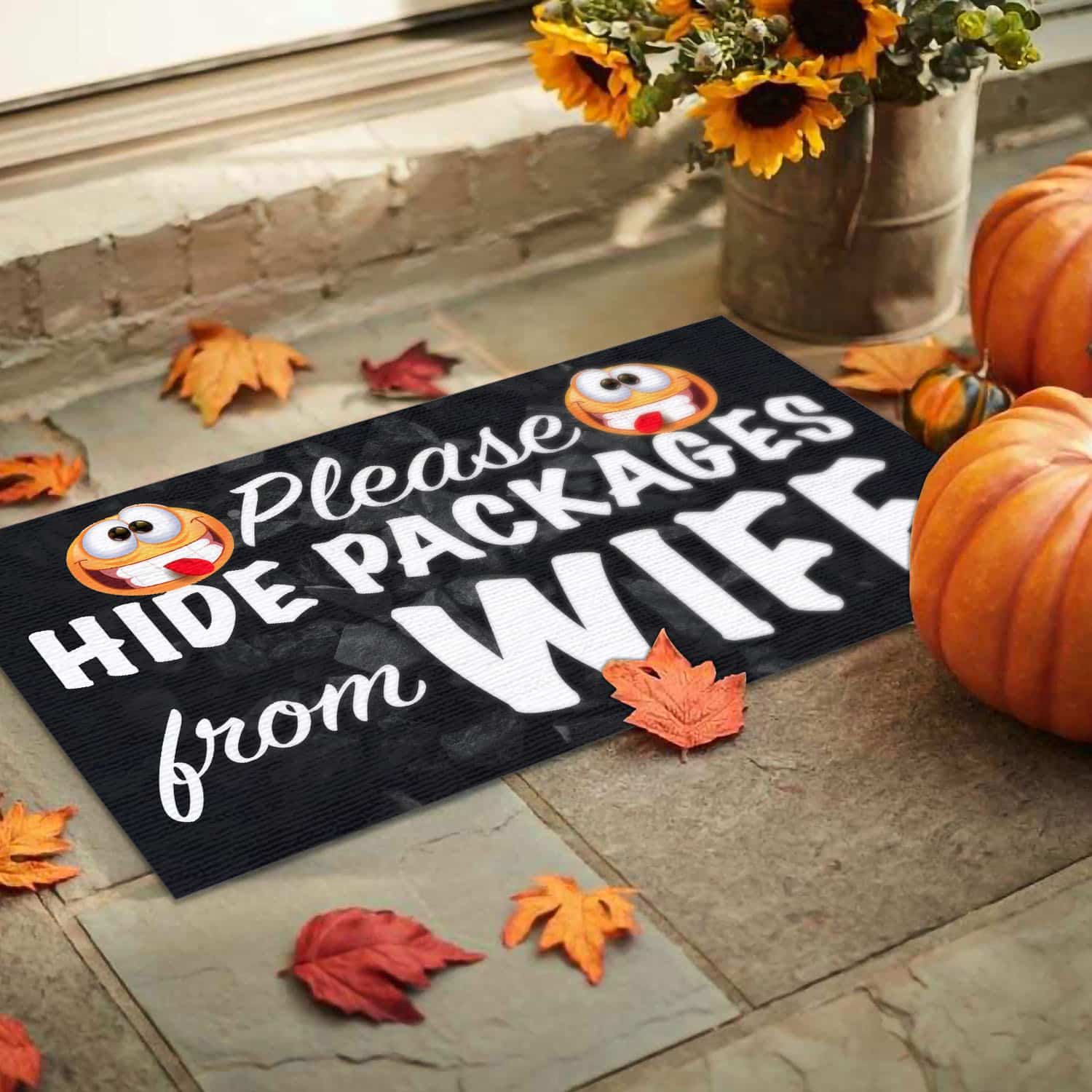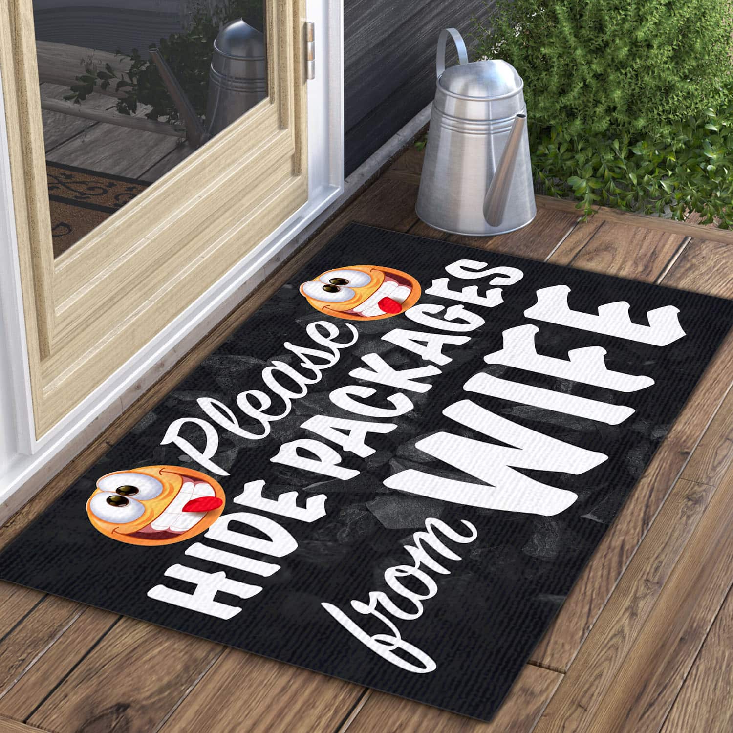 Let’s Shop Please Hide Packages from Wife Funny Welcome Rug Entrance Indoor Outdoor Decorative Doormat!