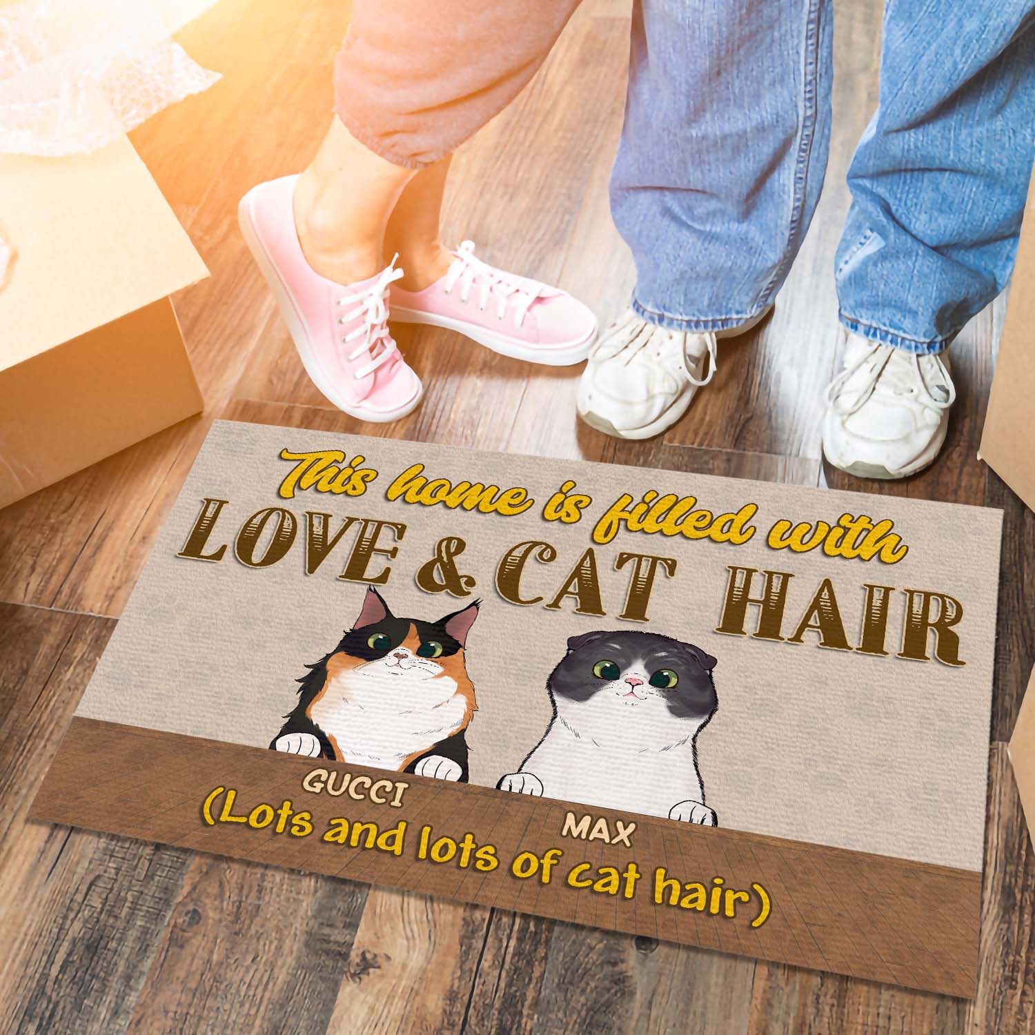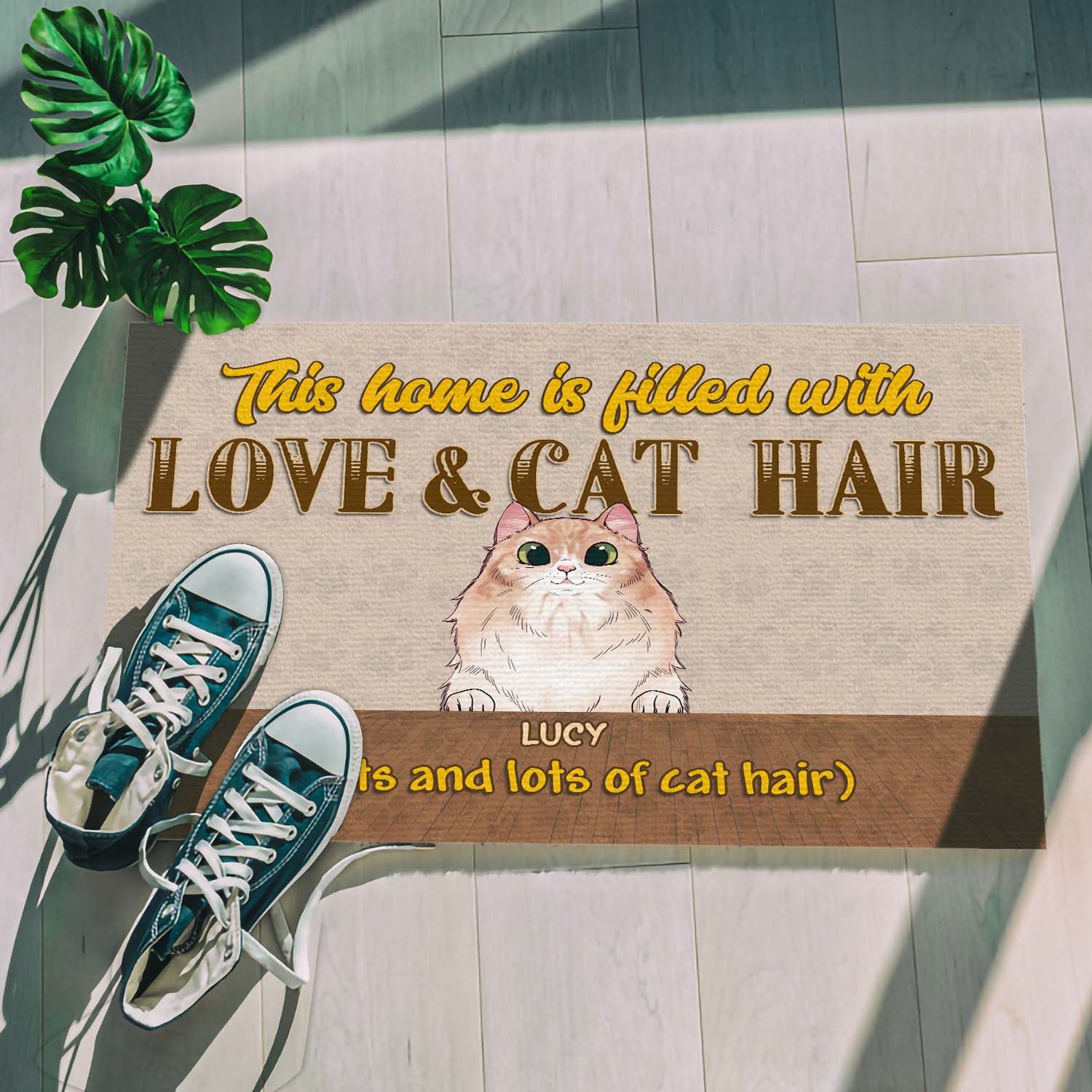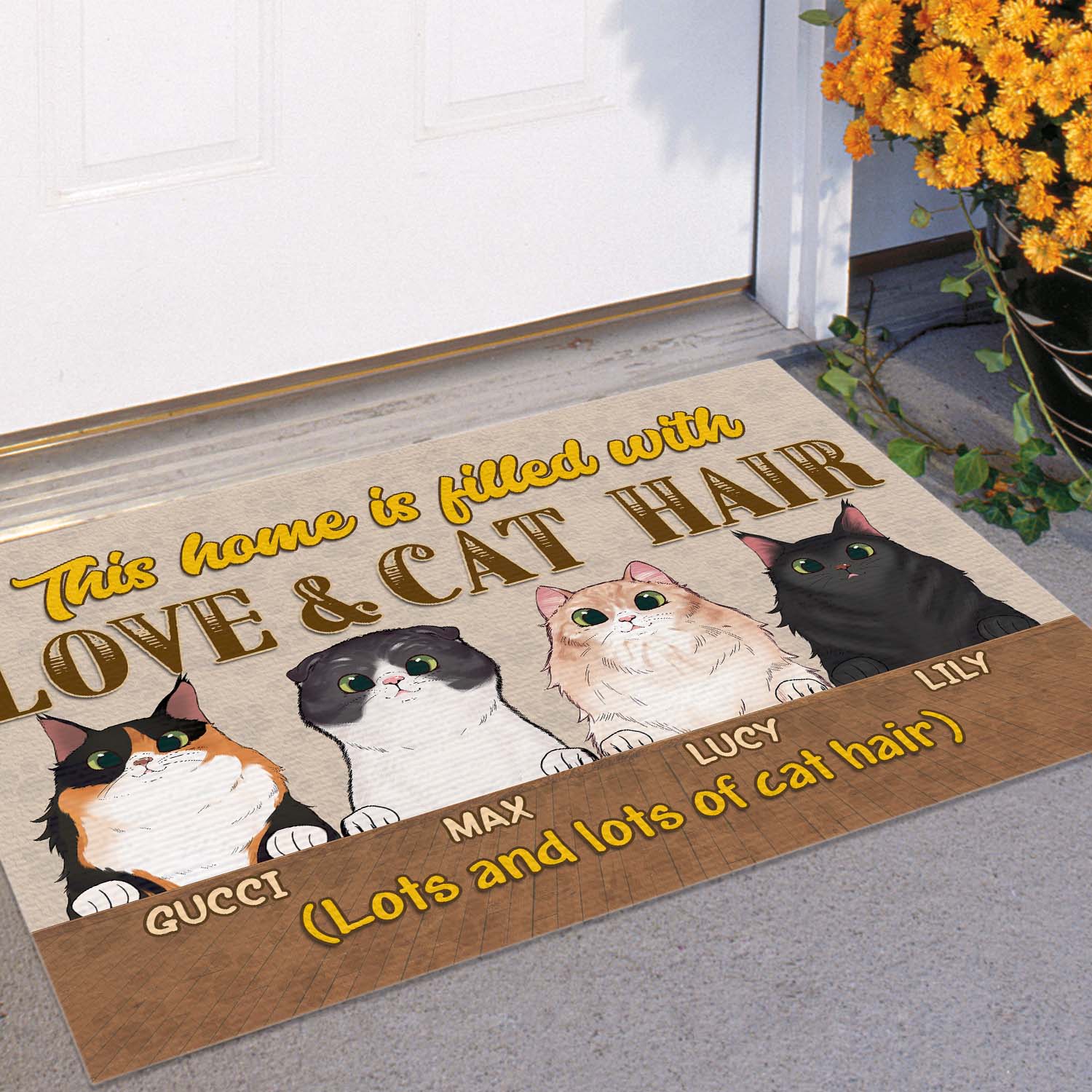 Let’s Shop Personalized This Home Is Fill With Love And Cat Hair Lots And Lots Of Cat Hair Funny Cat Indoor Outdoor Doormat!
