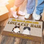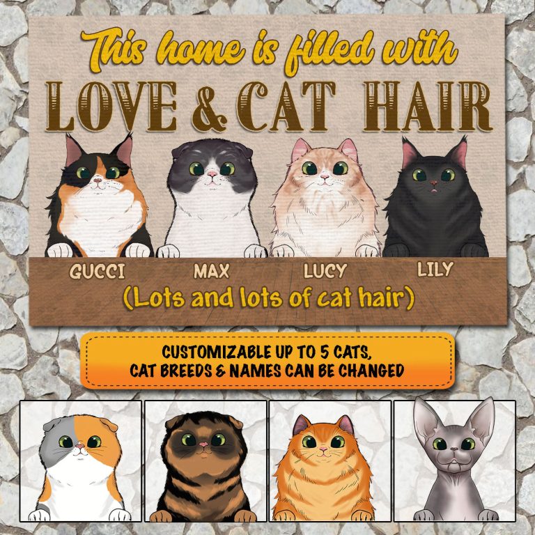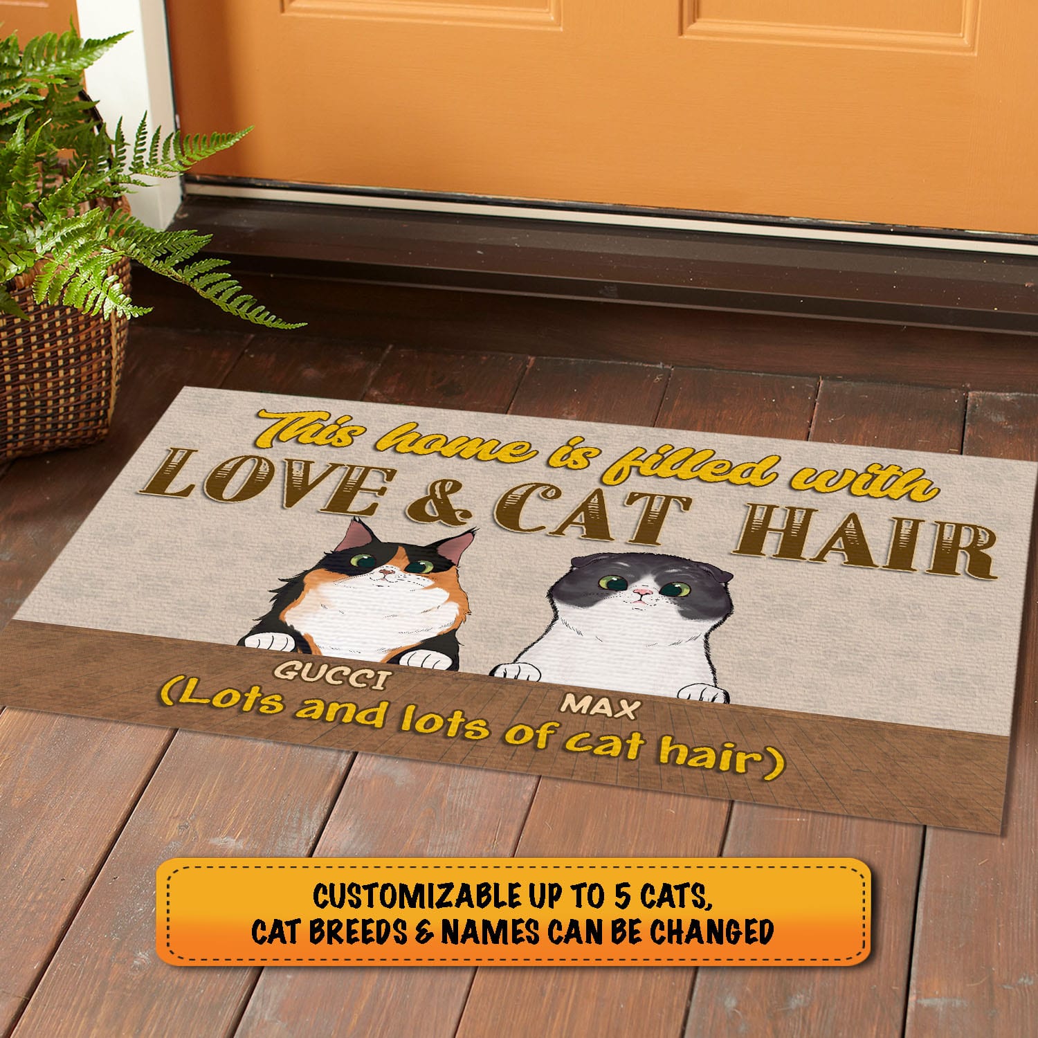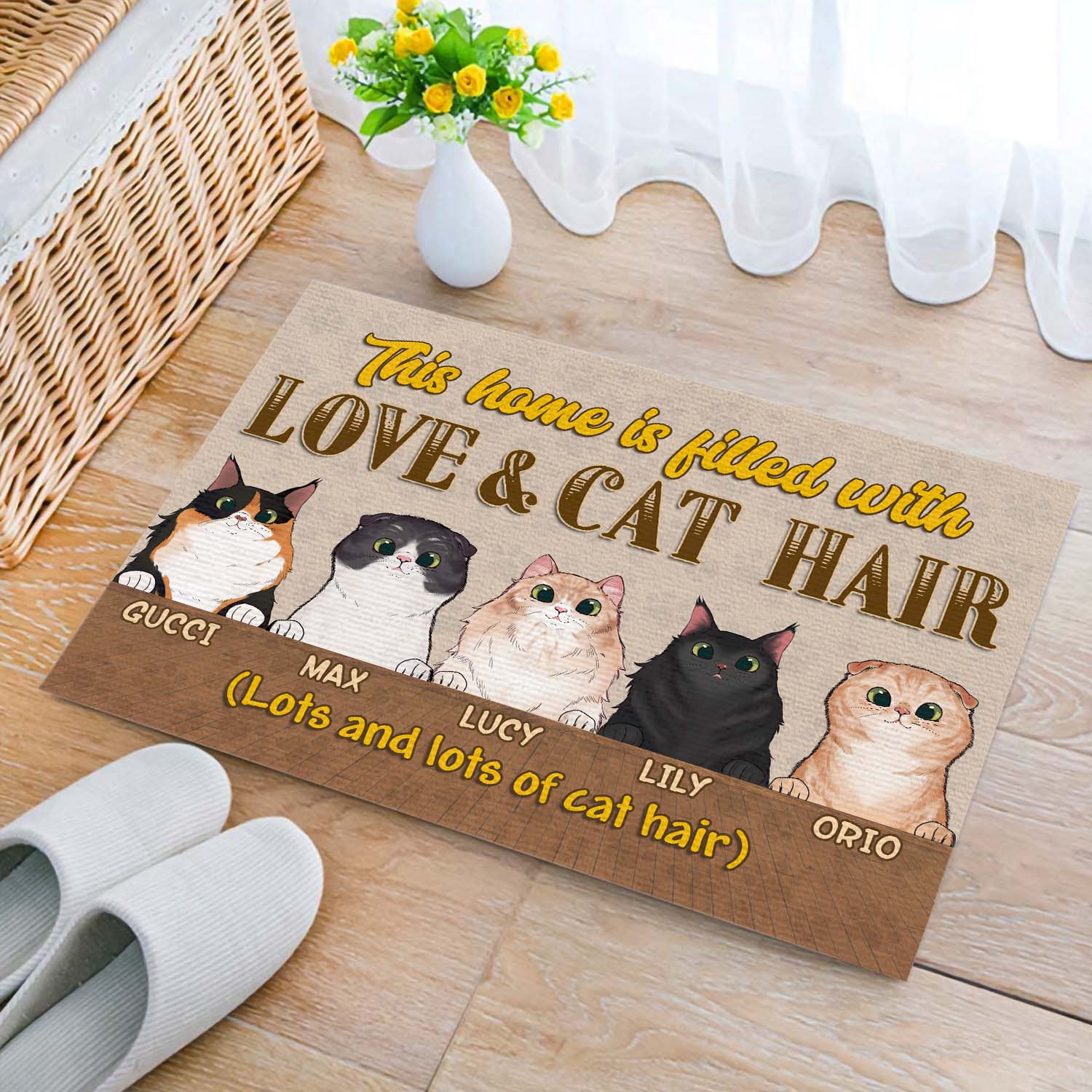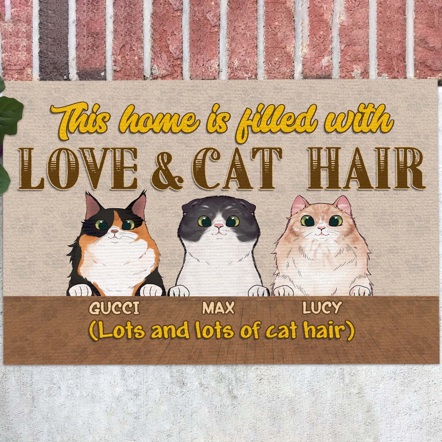Let’s Shop Personalized This Home Is Fill With Love And Cat Hair Lots And Lots Of Cat Hair Funny Cat Indoor Outdoor Doormat!