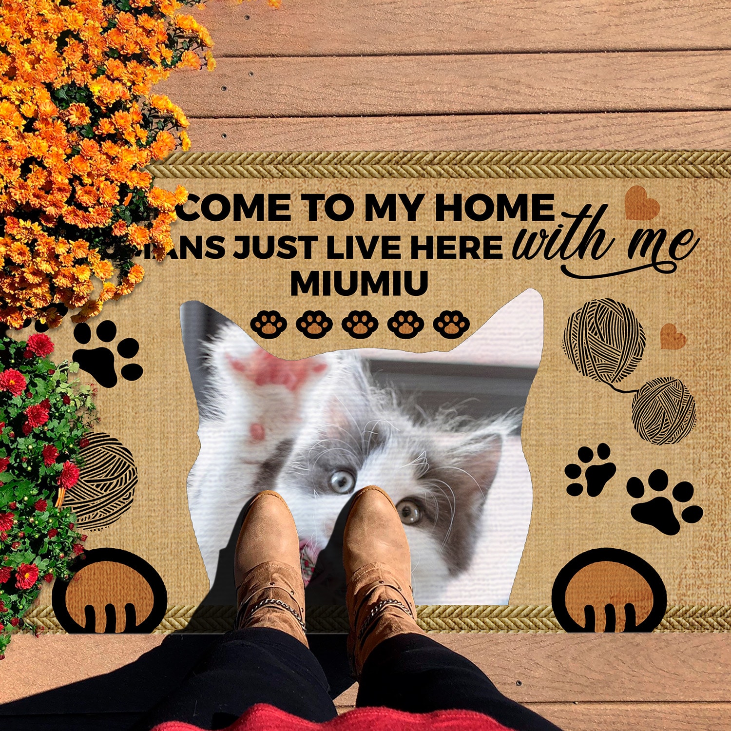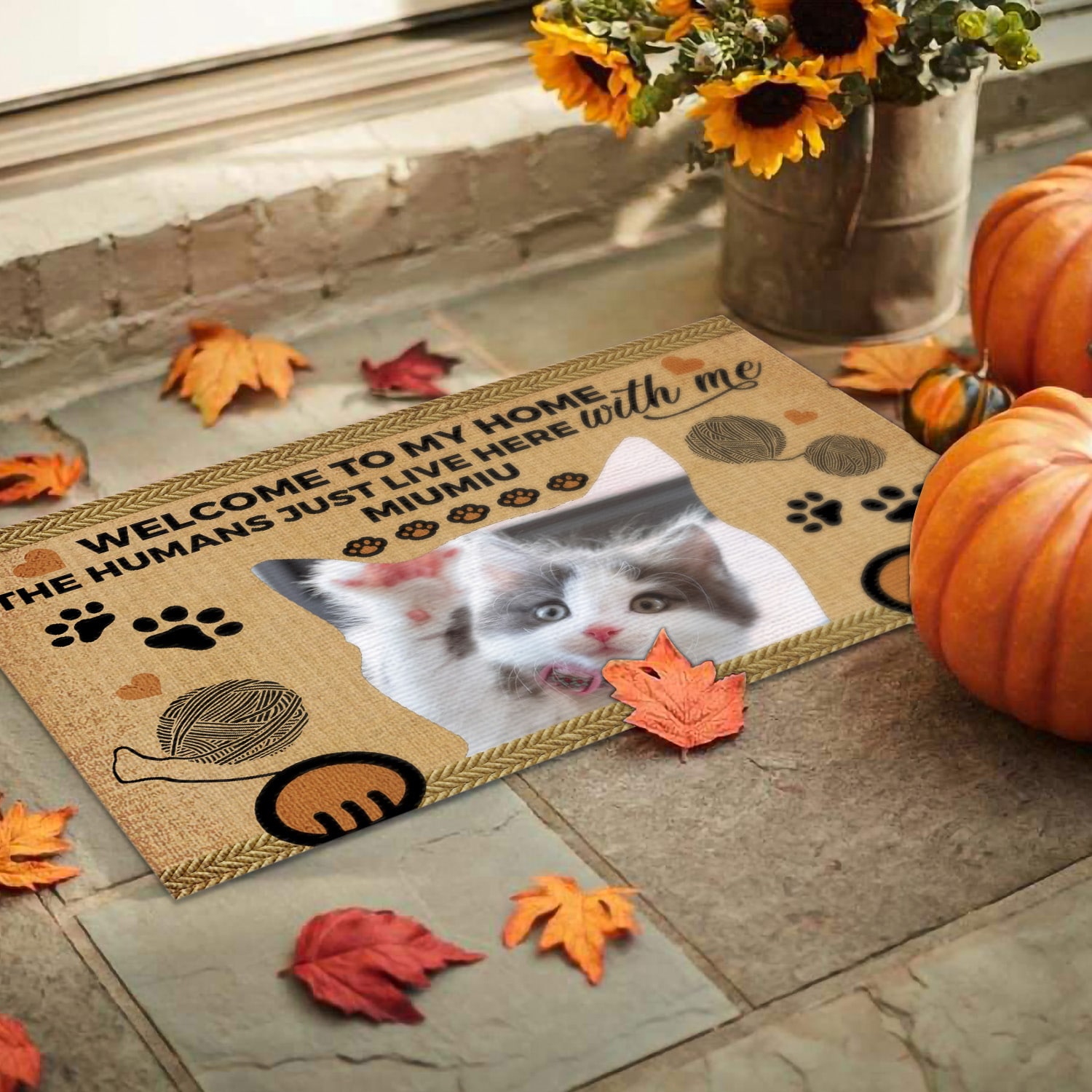 Let’s Shop Personalized Photo Welcome To Cat’s House Doormat – Funny Personalized Cat Decorative Mat Pet’s Name Doormat!