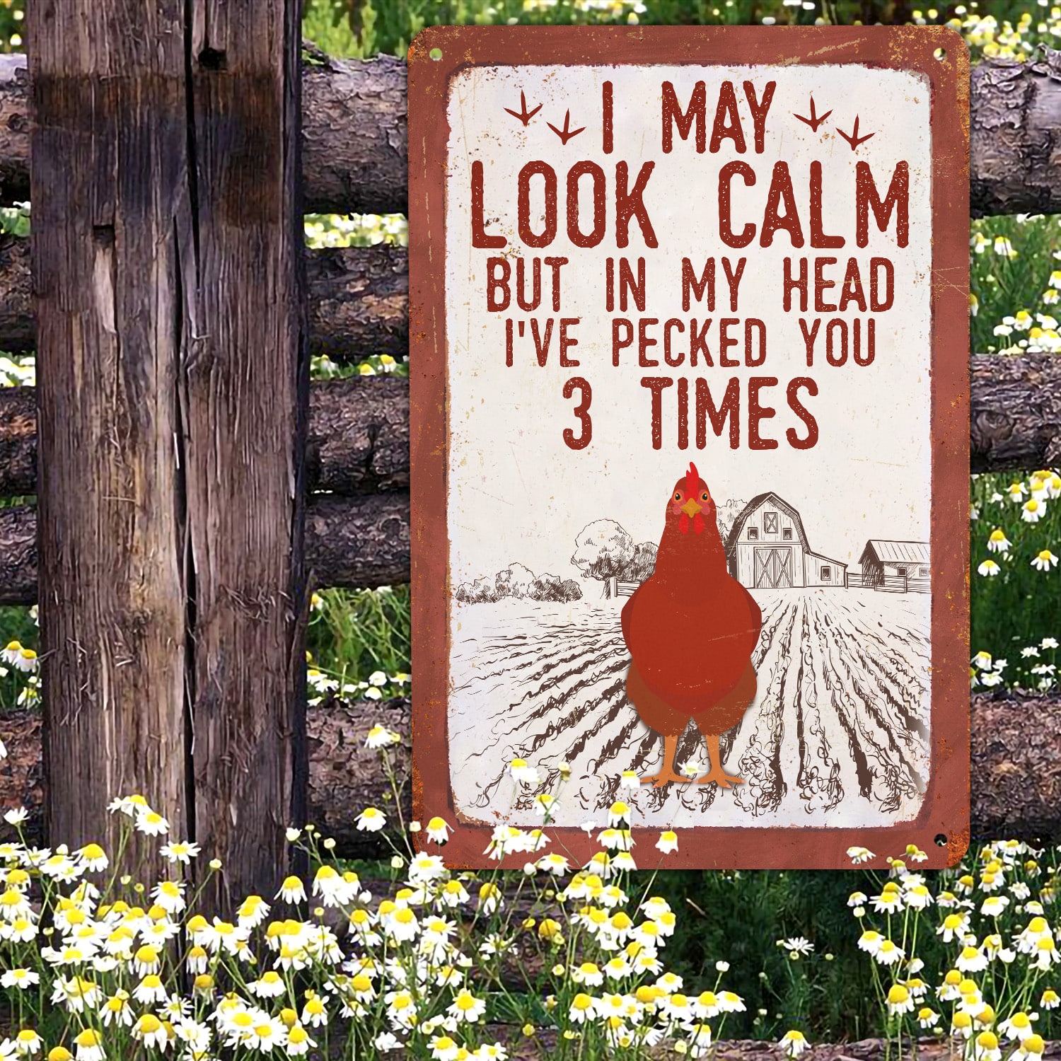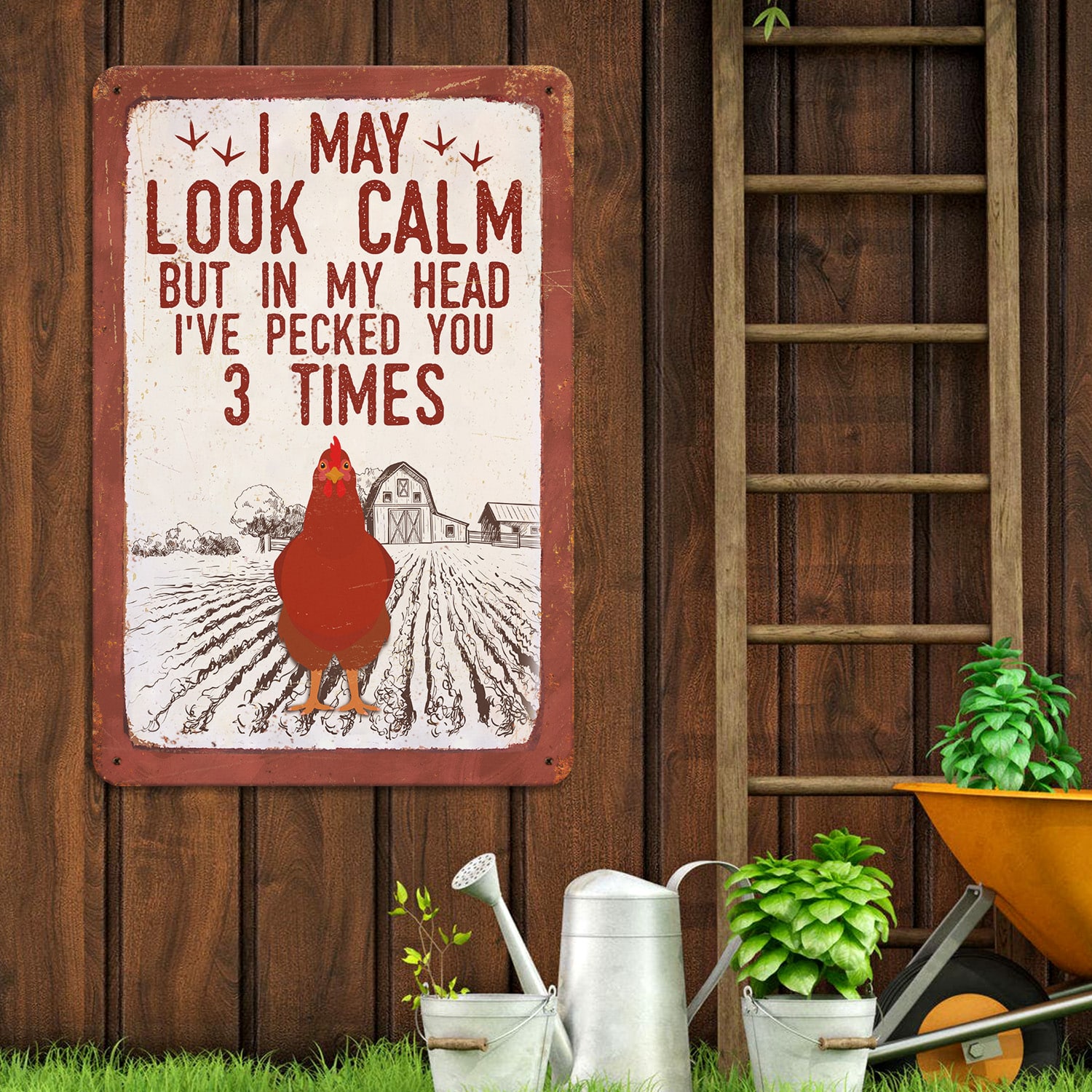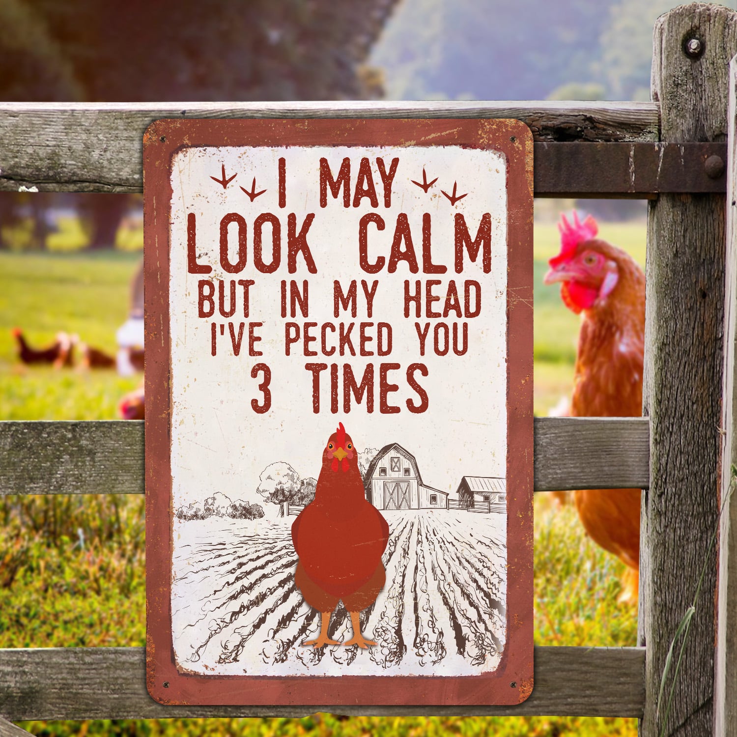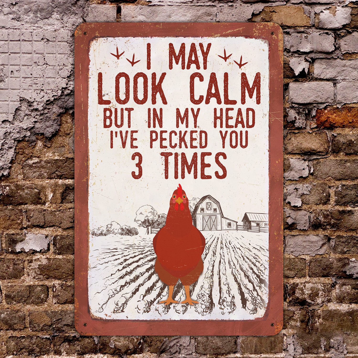Let’s Shop I May Look Calm but in My Head I’ve Pecked You 3 Times Decorative Metal Sign – Decor Farmhouse!