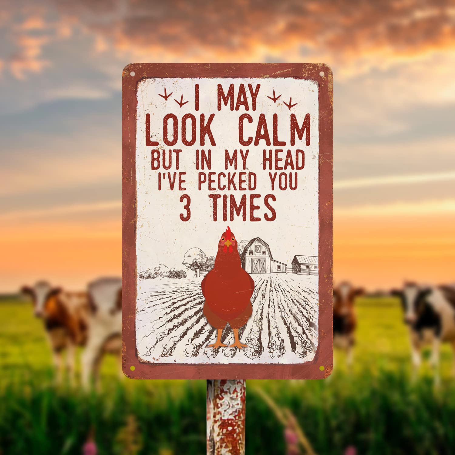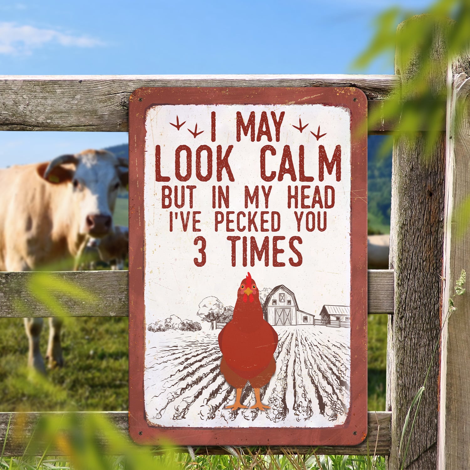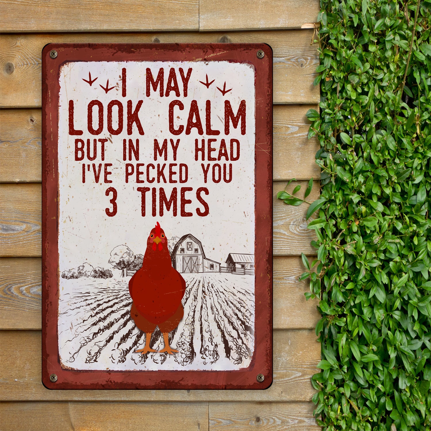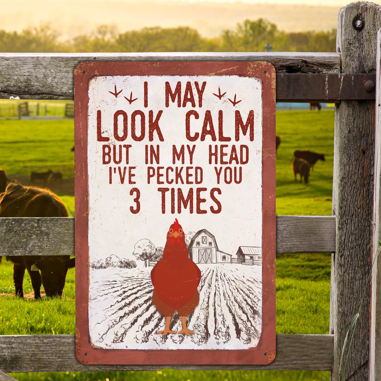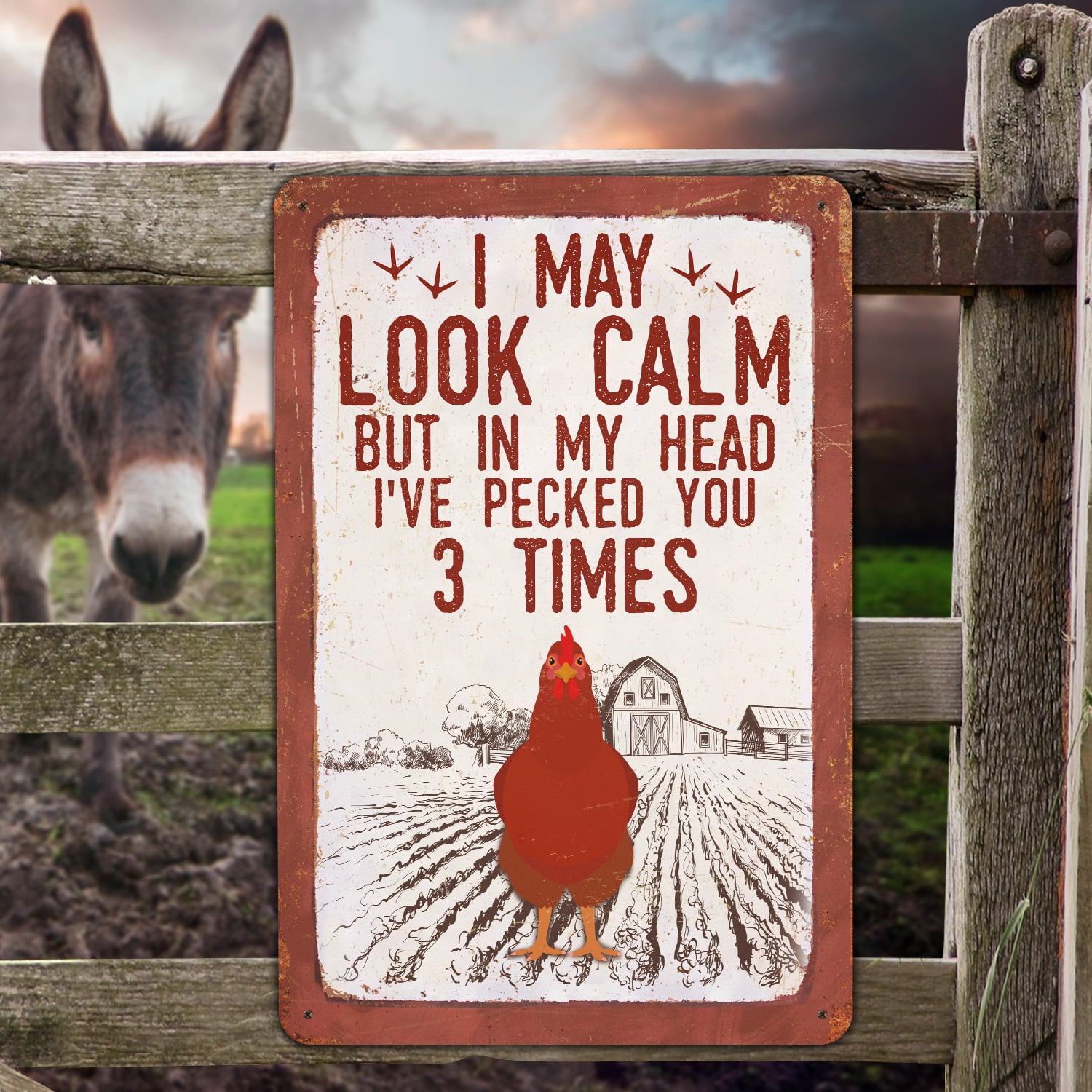 Let’s Shop I May Look Calm but in My Head I’ve Pecked You 3 Times Decorative Metal Sign – Decor Farmhouse!