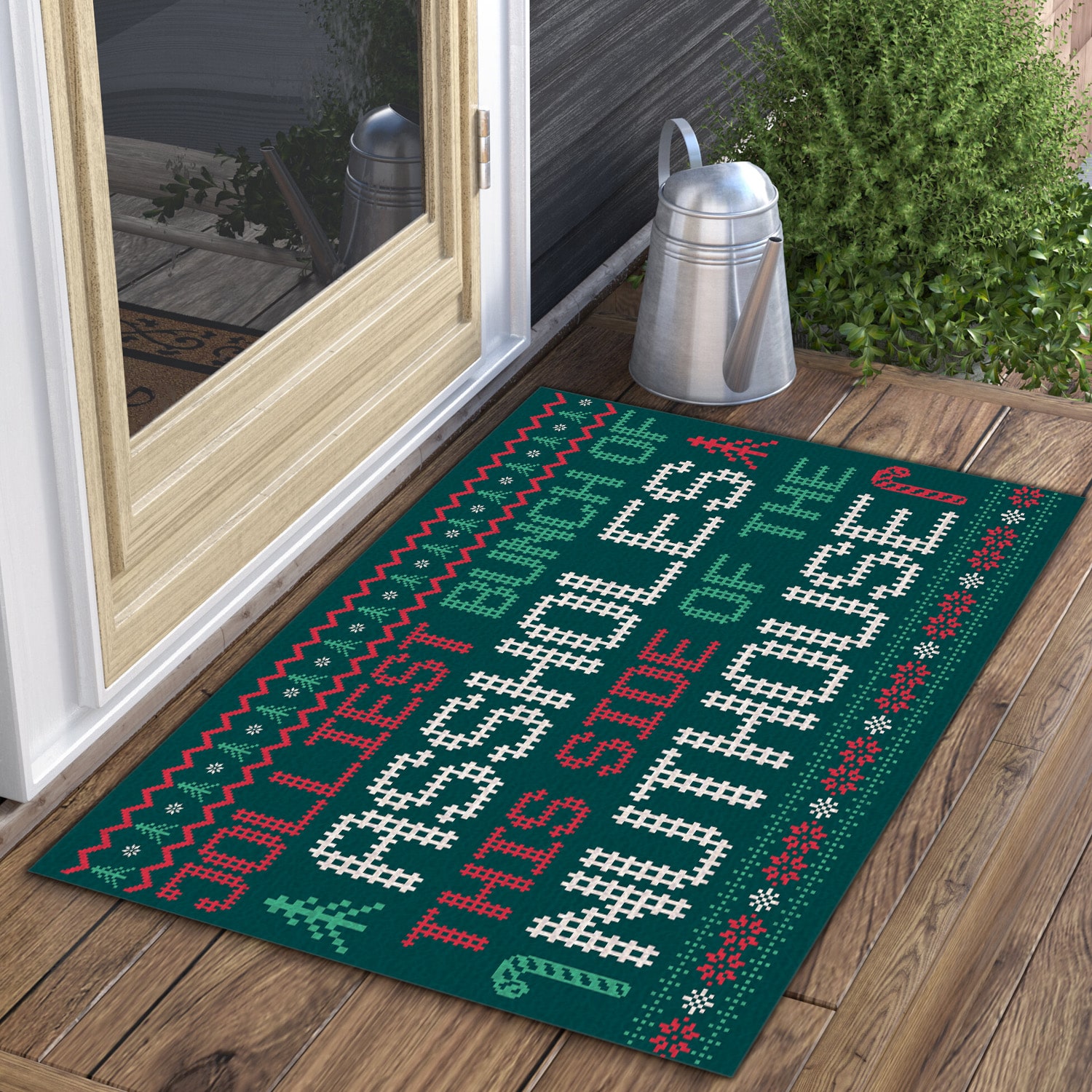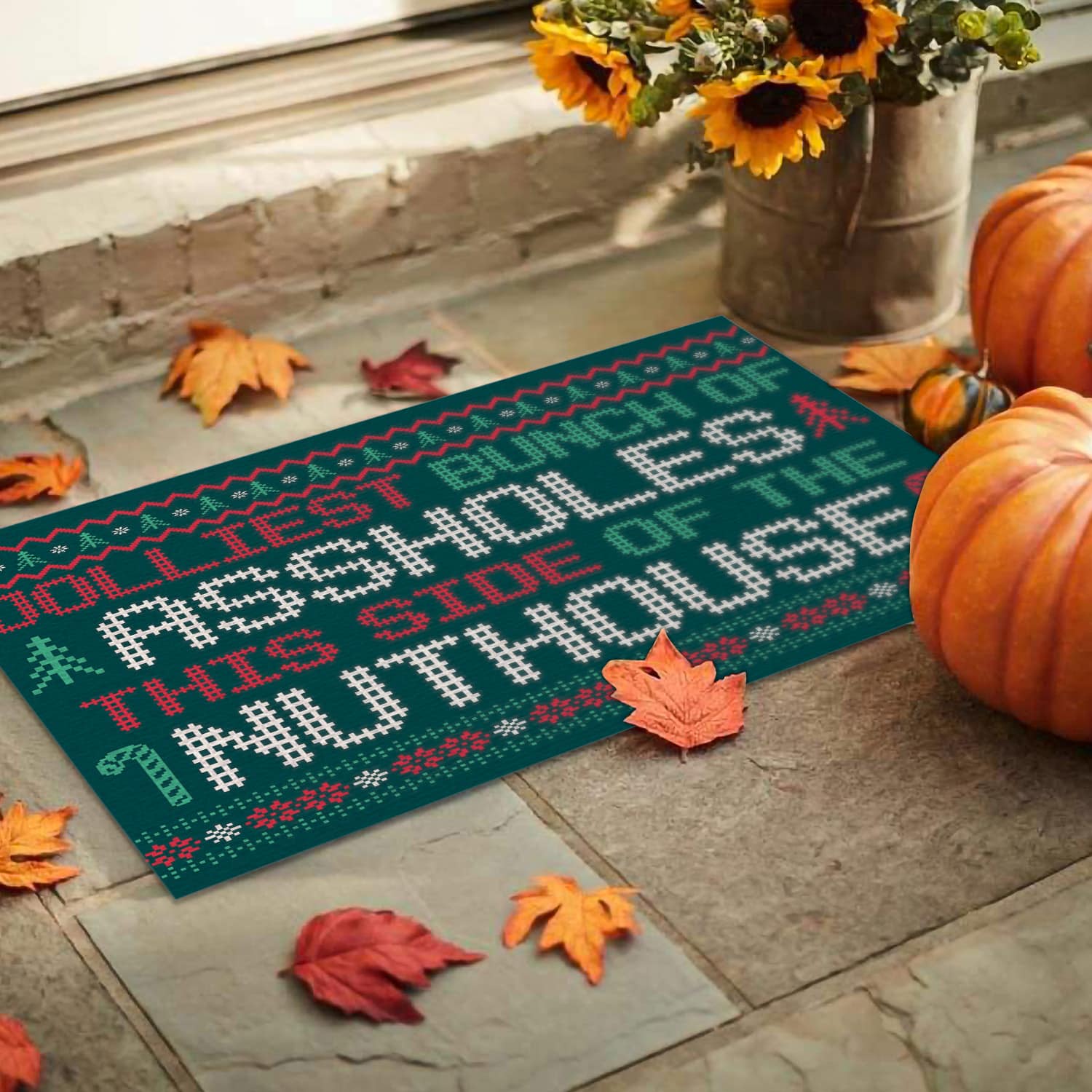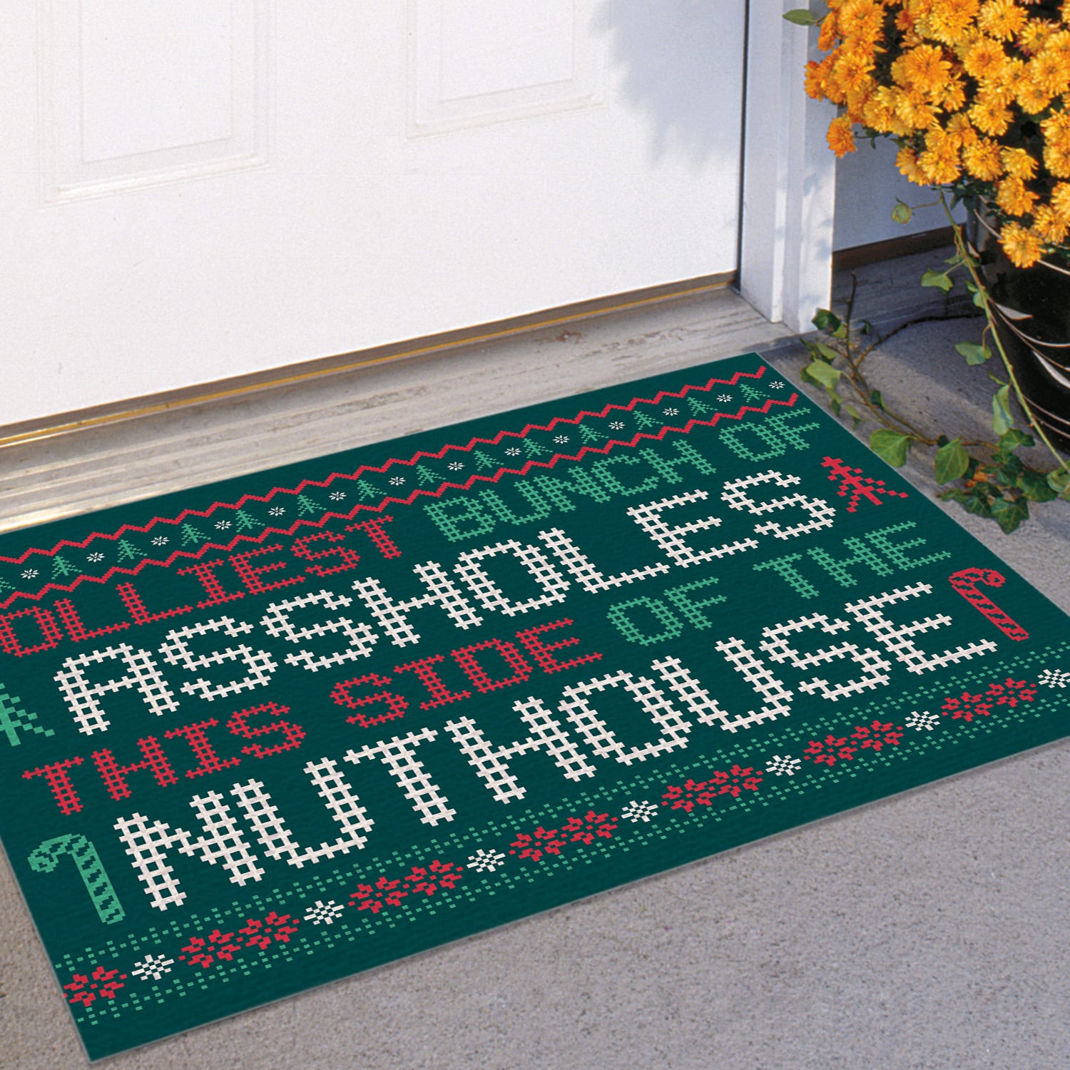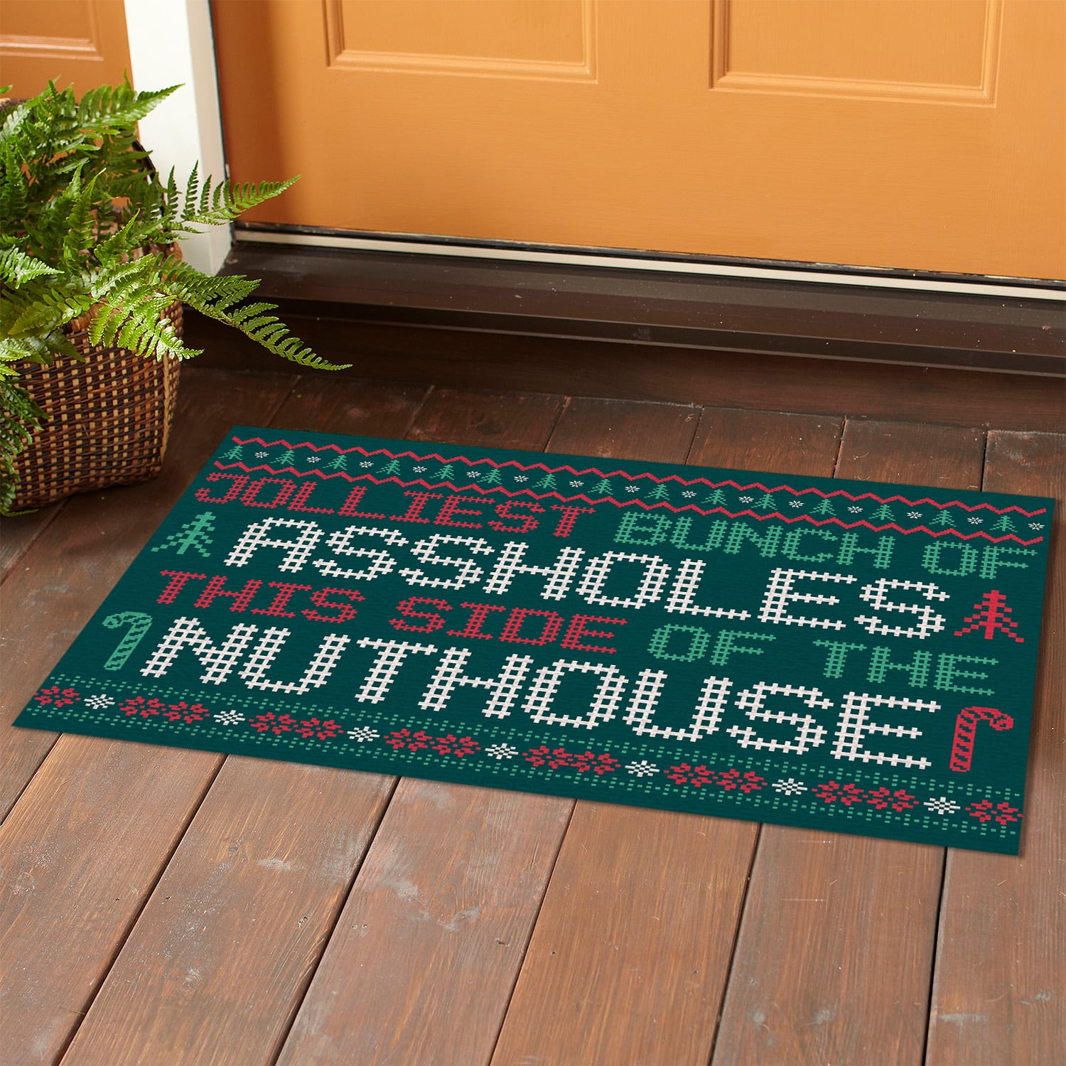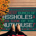 Let’s Shop Jolliest Bunch Of Assholes This Side Nuthouse Ugly Christmas Entrance Indoor Outdoor Decorative Doormat!