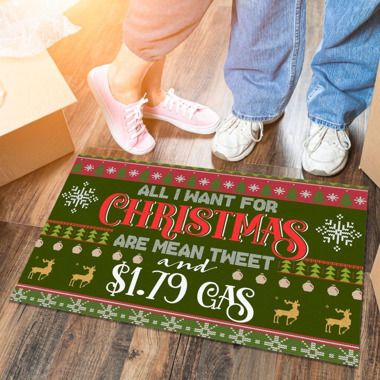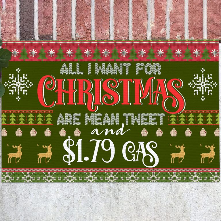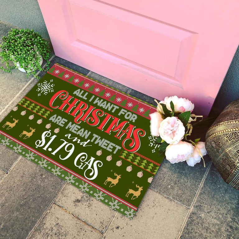 Let’s Shop All I Want For Christmas Are Mean Tweet And 1.79 Gas Funny House Doormat – Outdoor Indoor Doormat!