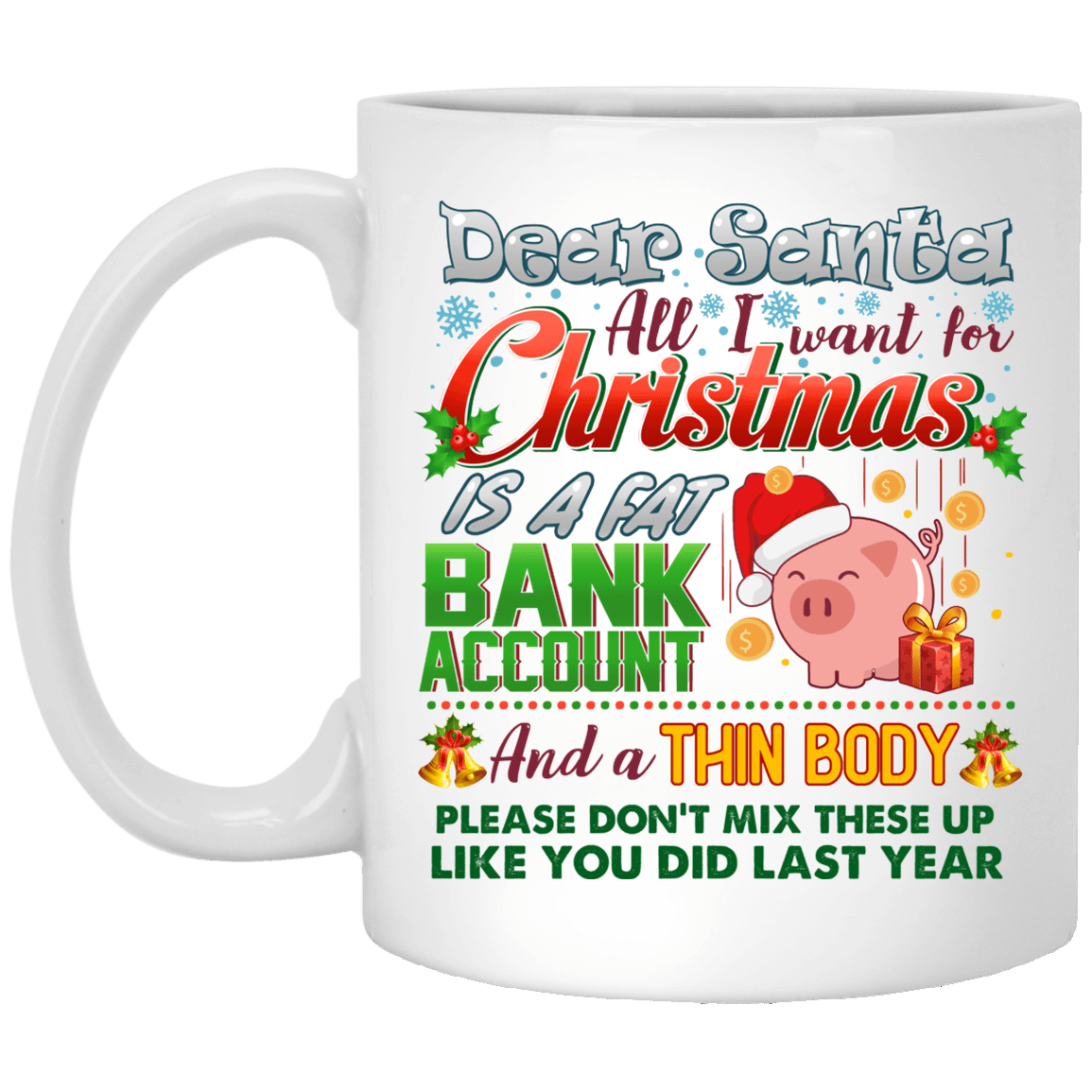 Shop Dear Santa All I Want for Christmas Is a Fat Bank Account Coffee Mug – Beer Stein – Water Bottle.