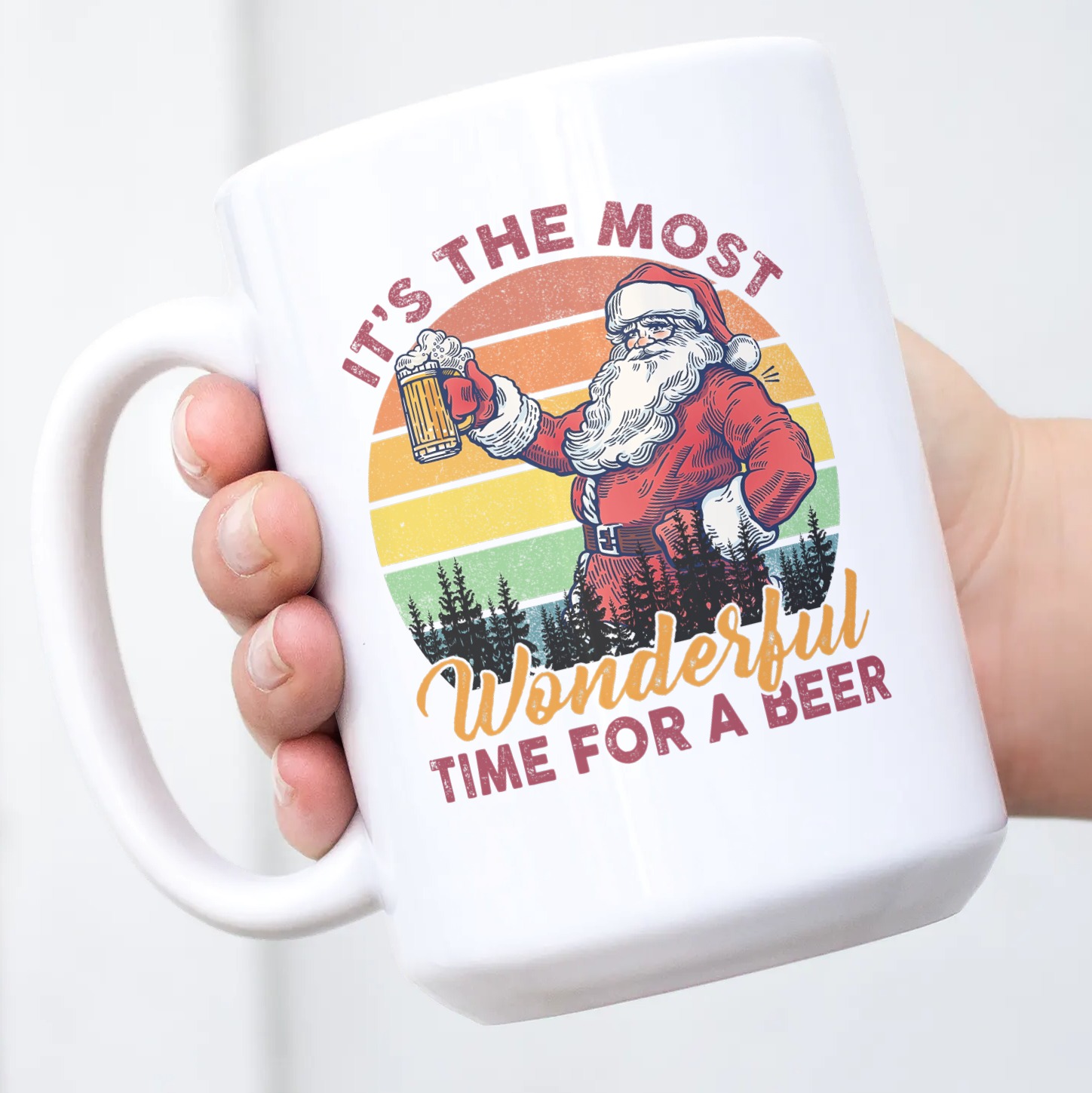 Let’s Shop Vintage Retro Santa Claus It’s The Most Wonderful Time For A Beer Funny Drinking Team Christmas Ceramic Mug!