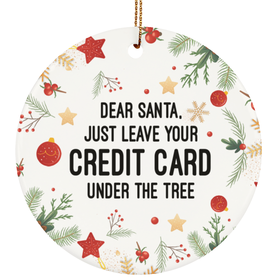 Shop Dear Santa Just Leave Your Credit Card Under The Tree Christmas Ornament Keepsake – Circle Ceramic Ornament.