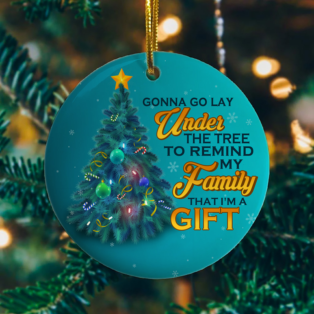 Let’s Shop Gonna Go Lay Under The Tree To Remind My Family That I’m A Gift Funny Circle Christmas Ornament Keepsake!