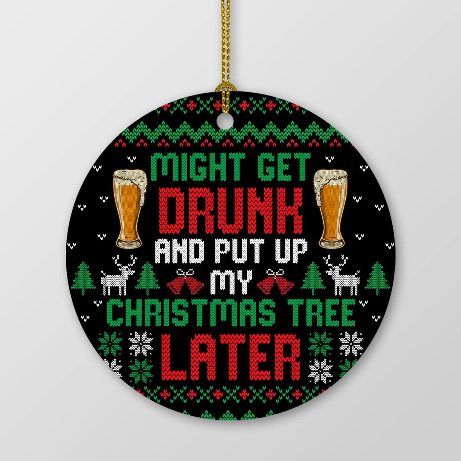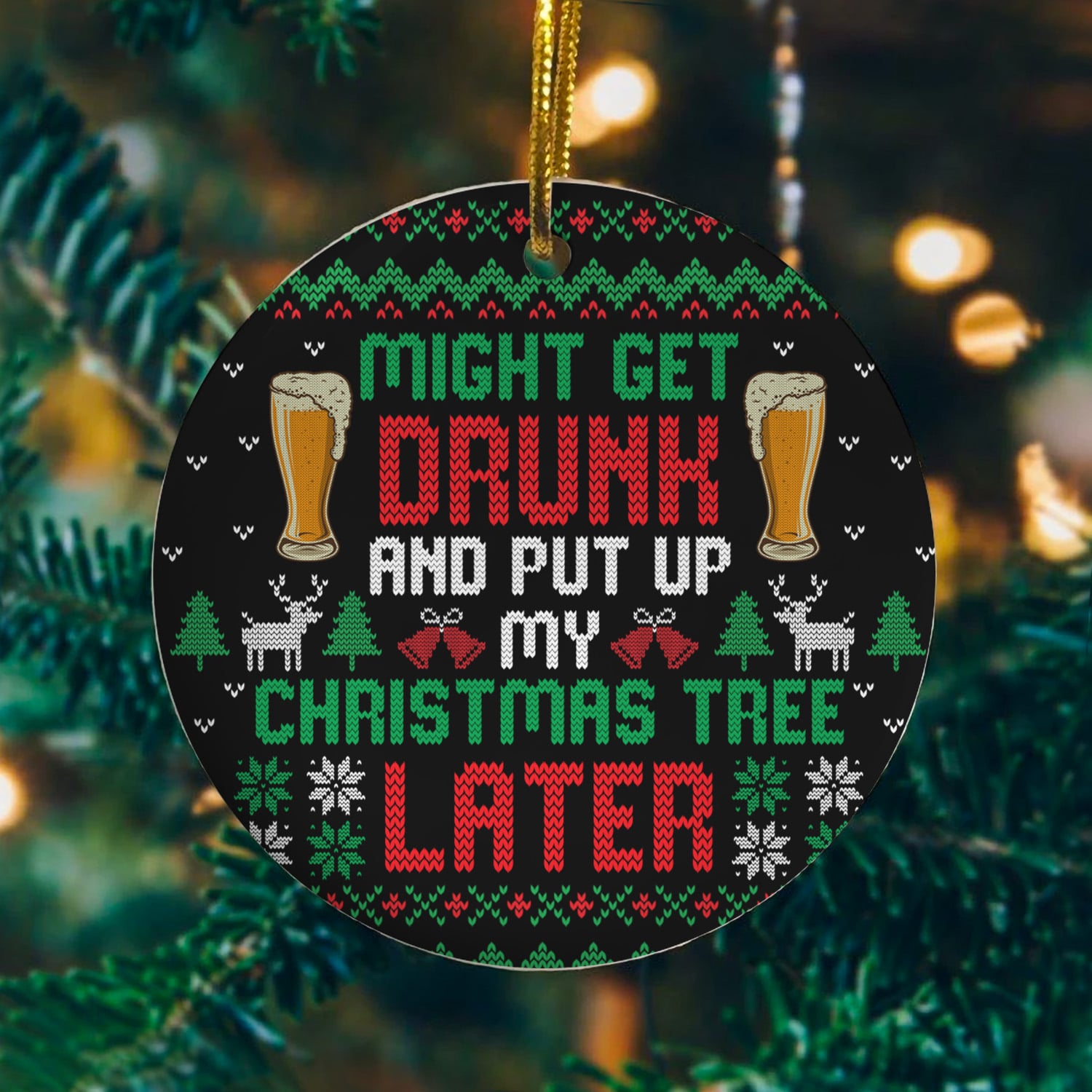 Let’s Shop Might Get Drunk and Put up My Christmas Tree Later Funny Decorative Christmas Ornament – Holiday Circle Ornament!
